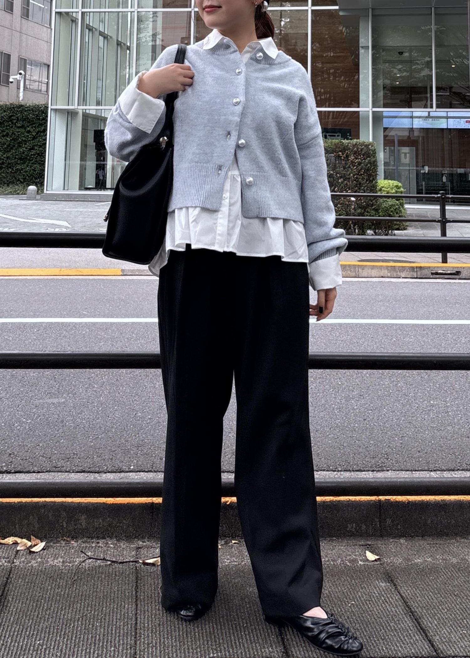 お仕事用として使いやすいきちっと見えする丈感で着用して頂けます。