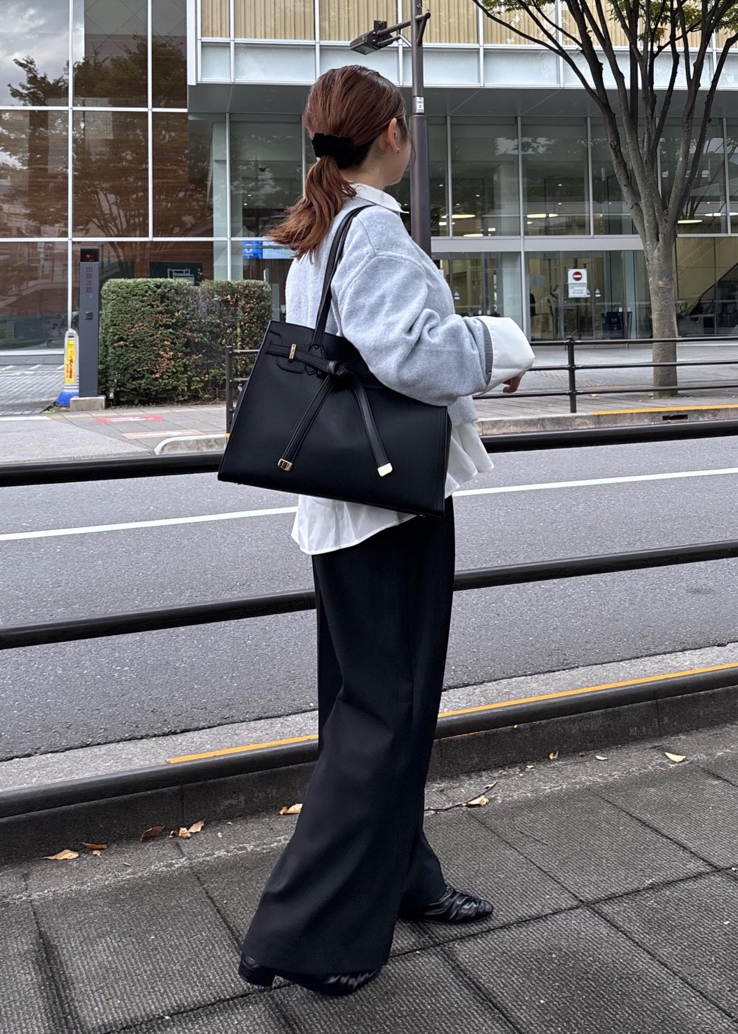 VISHot Beautyツータックワイドパンツ/イージーケアブラック / S¥6,589レビュー身長150センチSサイズだと足の甲に裾がかかる丈感。ギリギリフラットシューズ合わせでも床つきません。