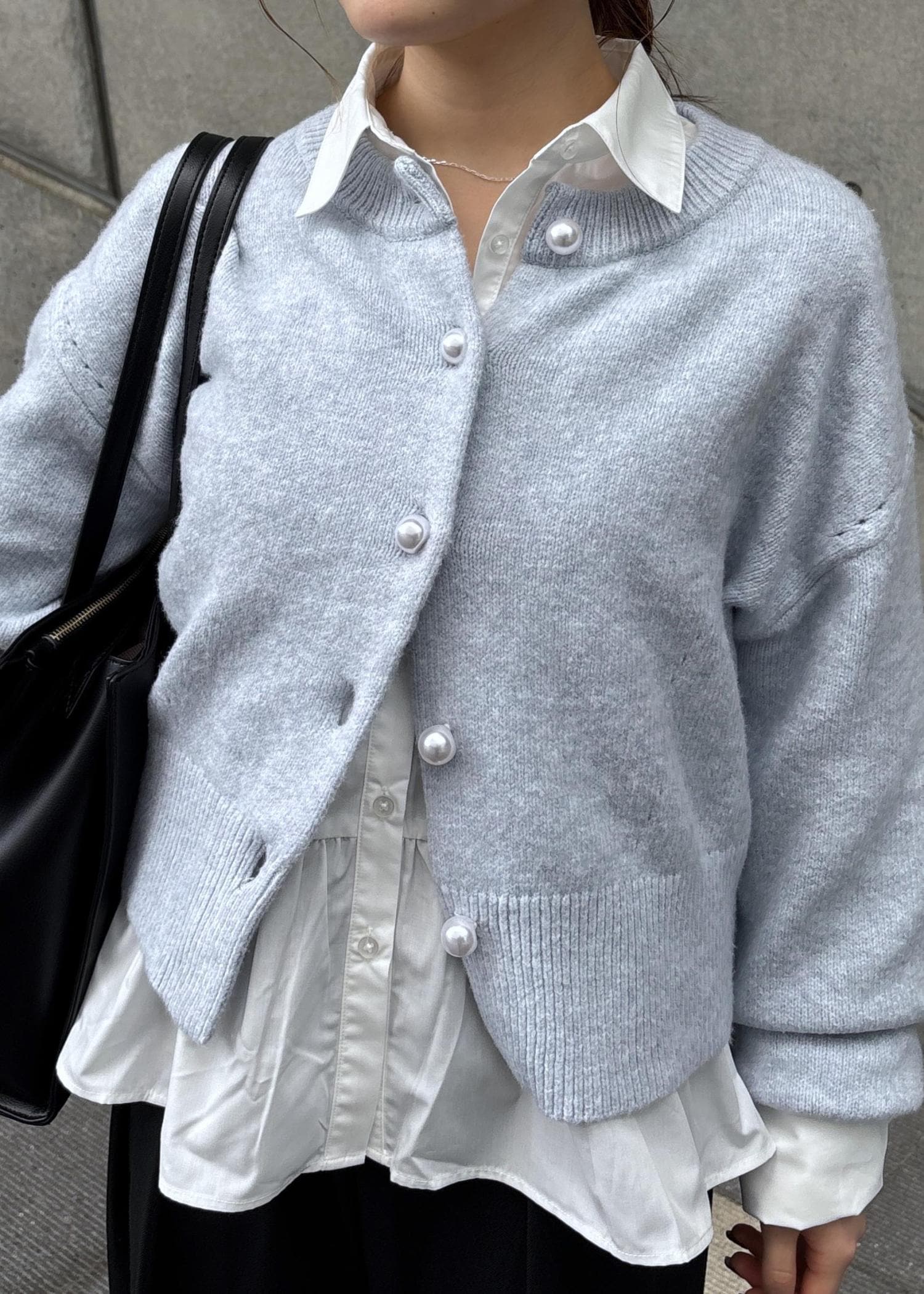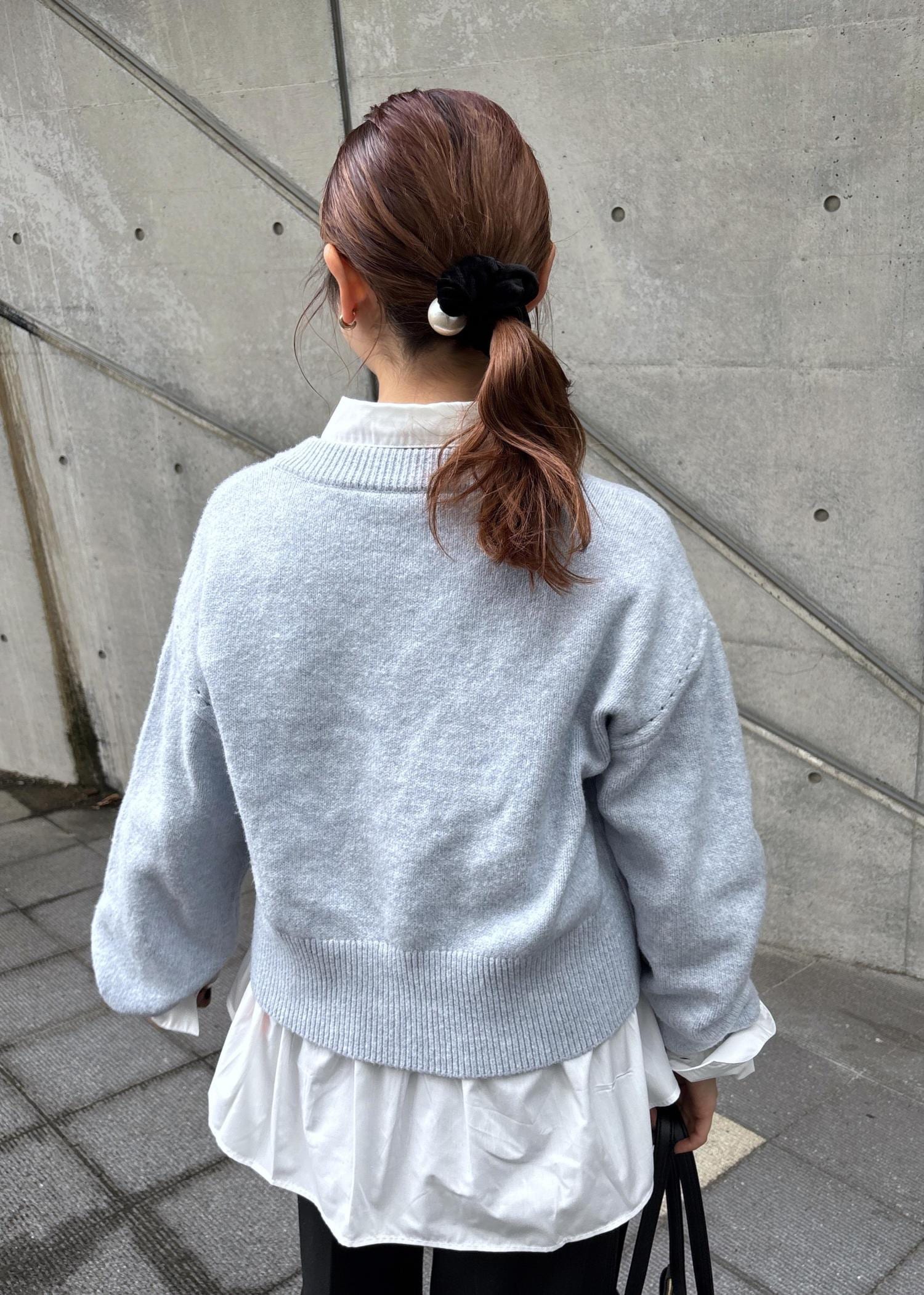 VISハートアソートパール釦ラメミックスカーディガン/イージーケア・一部WEB限定カラーブルー / F¥5,489レビュー艶感のあるパール釦、ハート釦が大人かわいい!