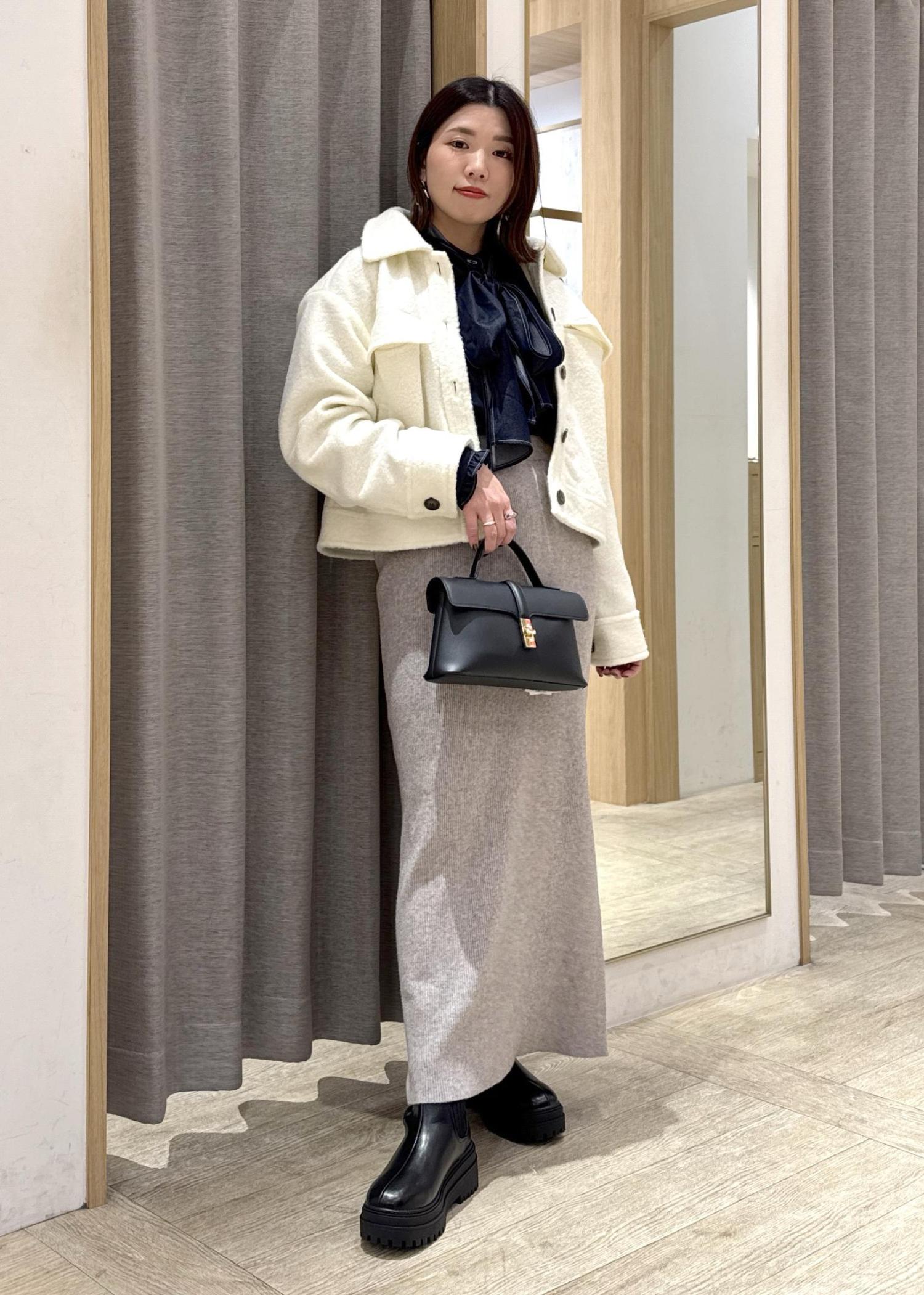 柔らかくて暖かみのあるニットスカートを合わせました◎