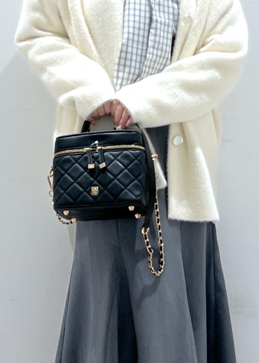 ファーハンドルキルティング&ツイードバニティバッグ/2WAY