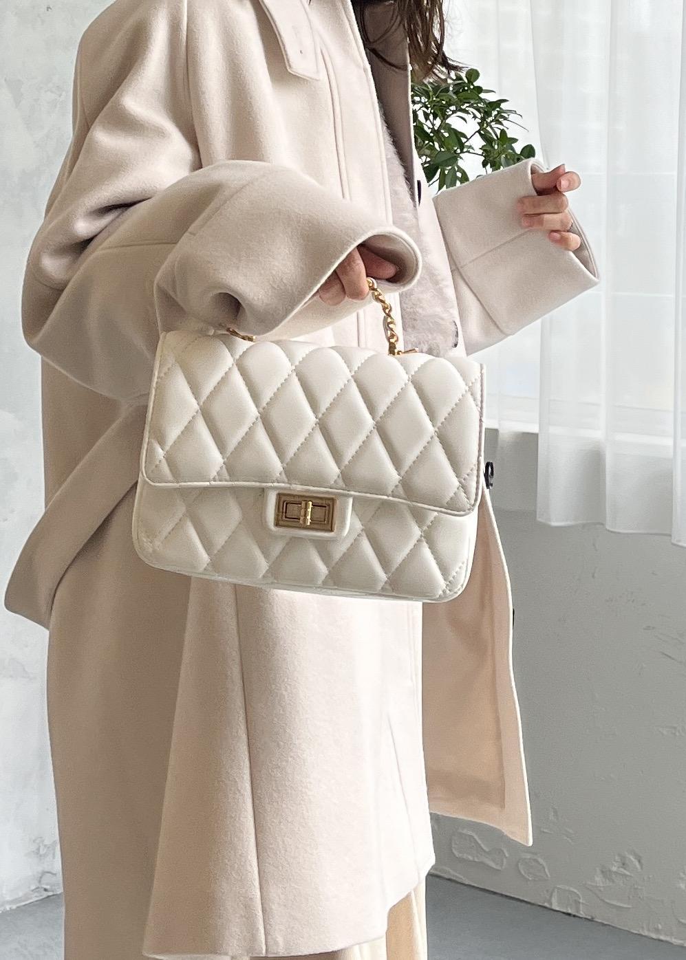 VISチェーンハンドルキルティングショルダーバッグ/2WAY・一部WEB限定カラーオフホワイト / F¥6,919レビューぷっくりキルティングの素材感が可愛いミニバッグ。肩掛けもできるチェーン付き。500mlのペットボトル、携帯、ミニ財布などしっかり入れられます。冬らしくてコーディネートのポイントにもなります!
