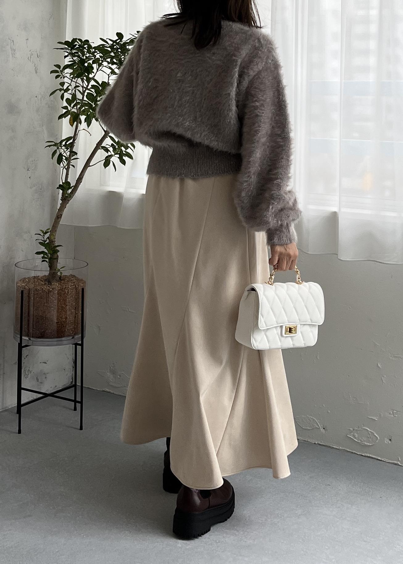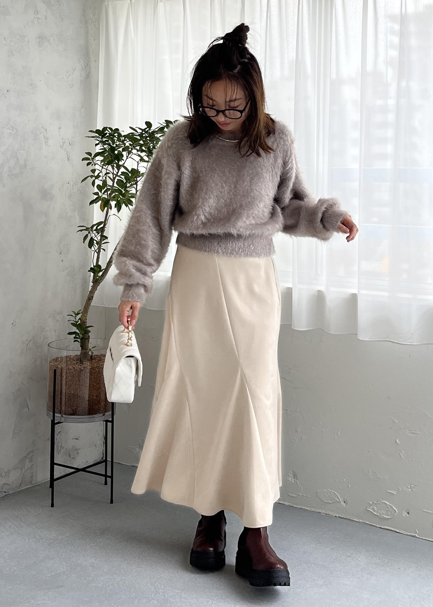 VISエスカルゴ切替スエードライクスカートオフホワイト / M¥7,689レビュー152cmでサンプルのため、Mサイズ着用して着丈は足首が見えるくらいの丈。柔らかいフェイクスウェード素材で冬らしいスカートです。とてもキレイにひだが入ったデザインなので、ボリューム感のある揺れるシルエットがとても魅力的。ウエストも大きすぎることはなかったので、着丈の好みで選ばれると◎