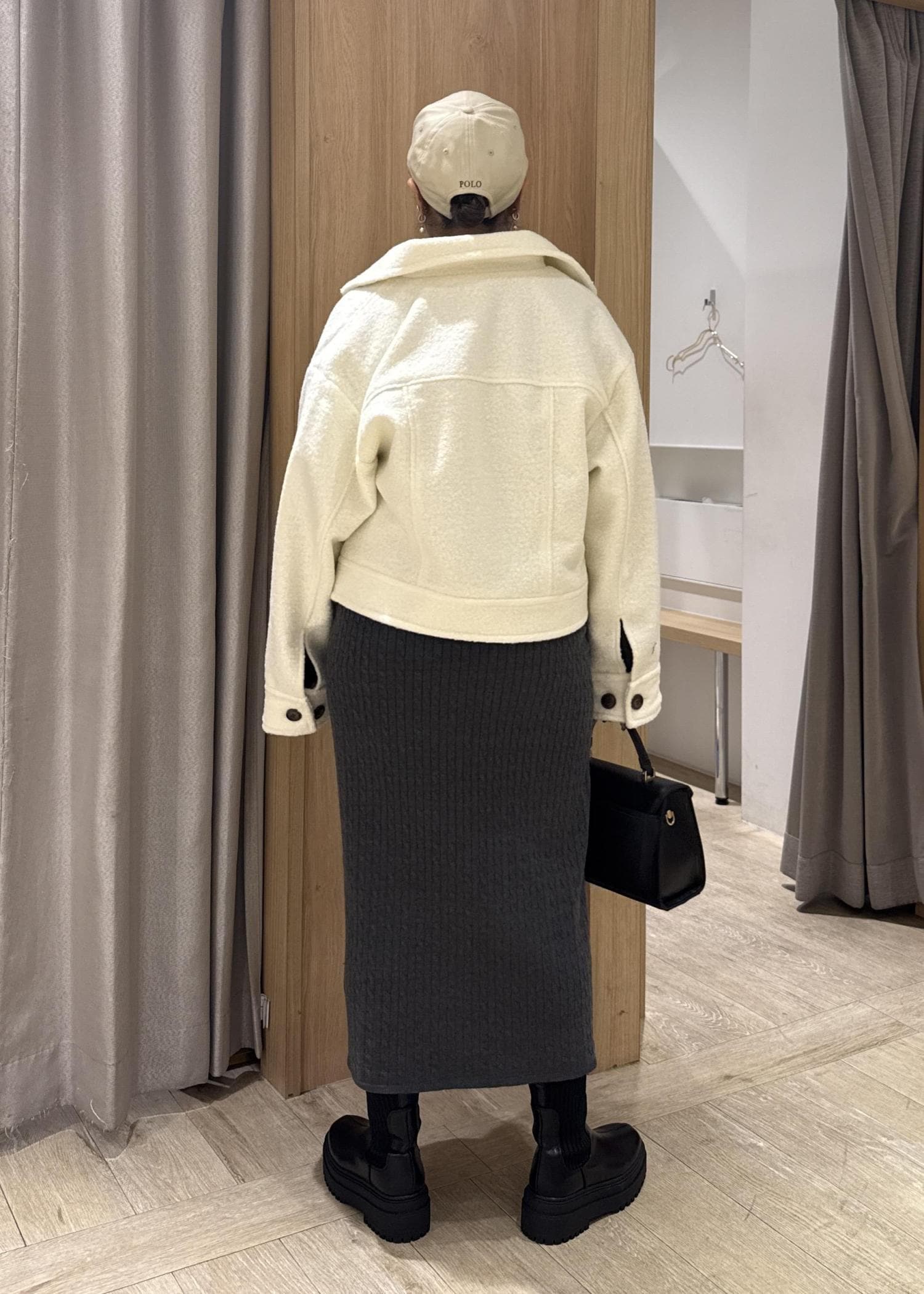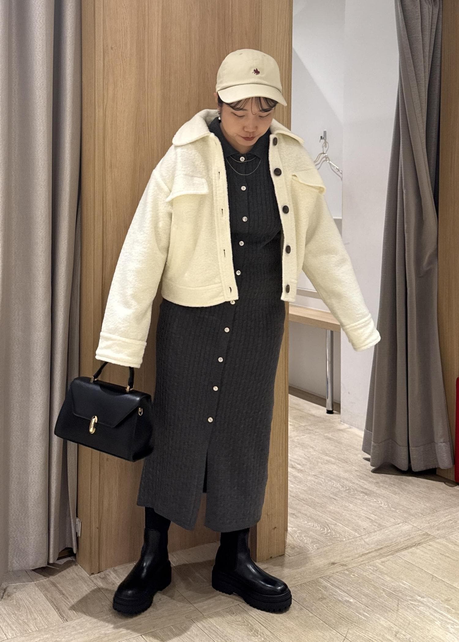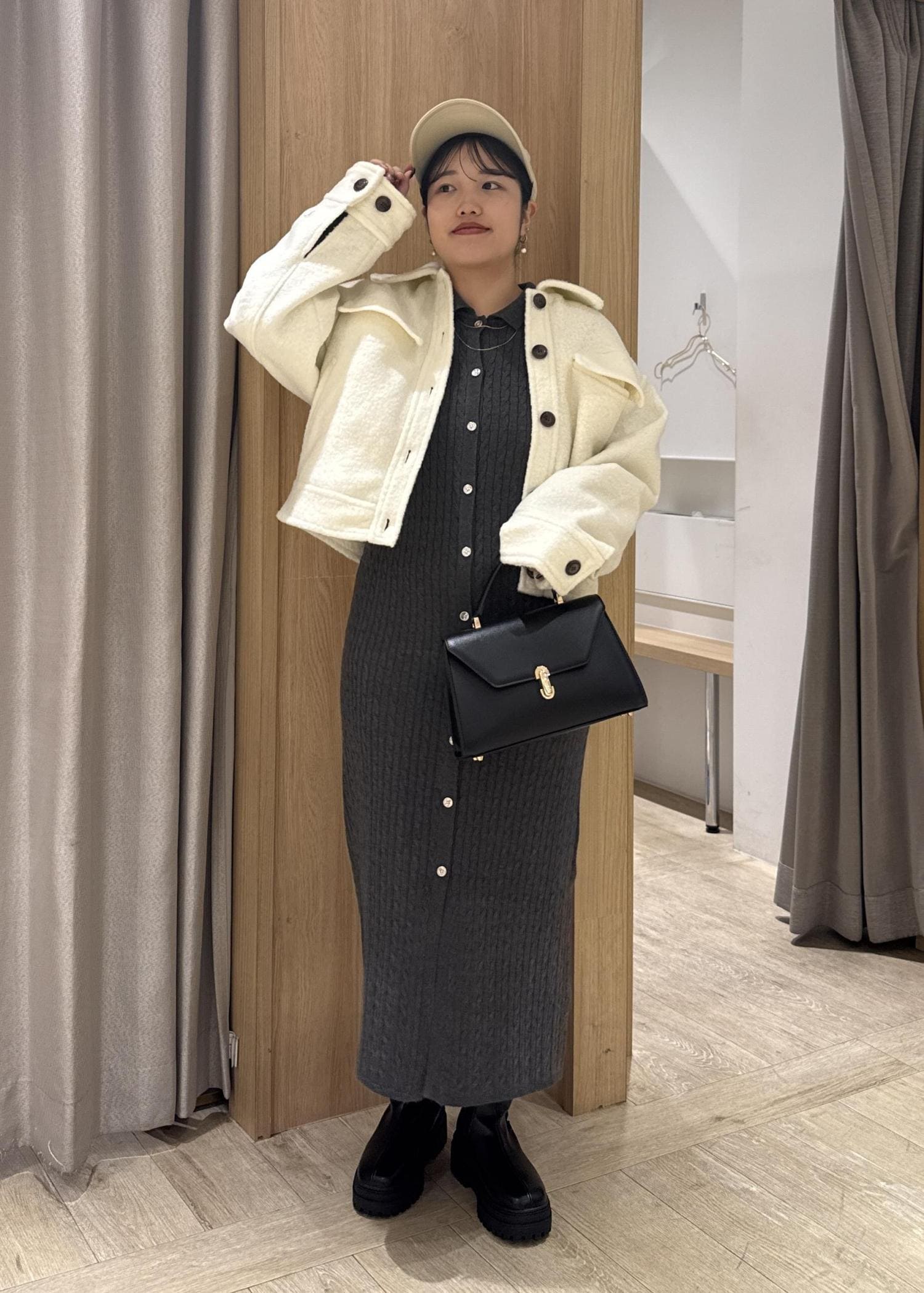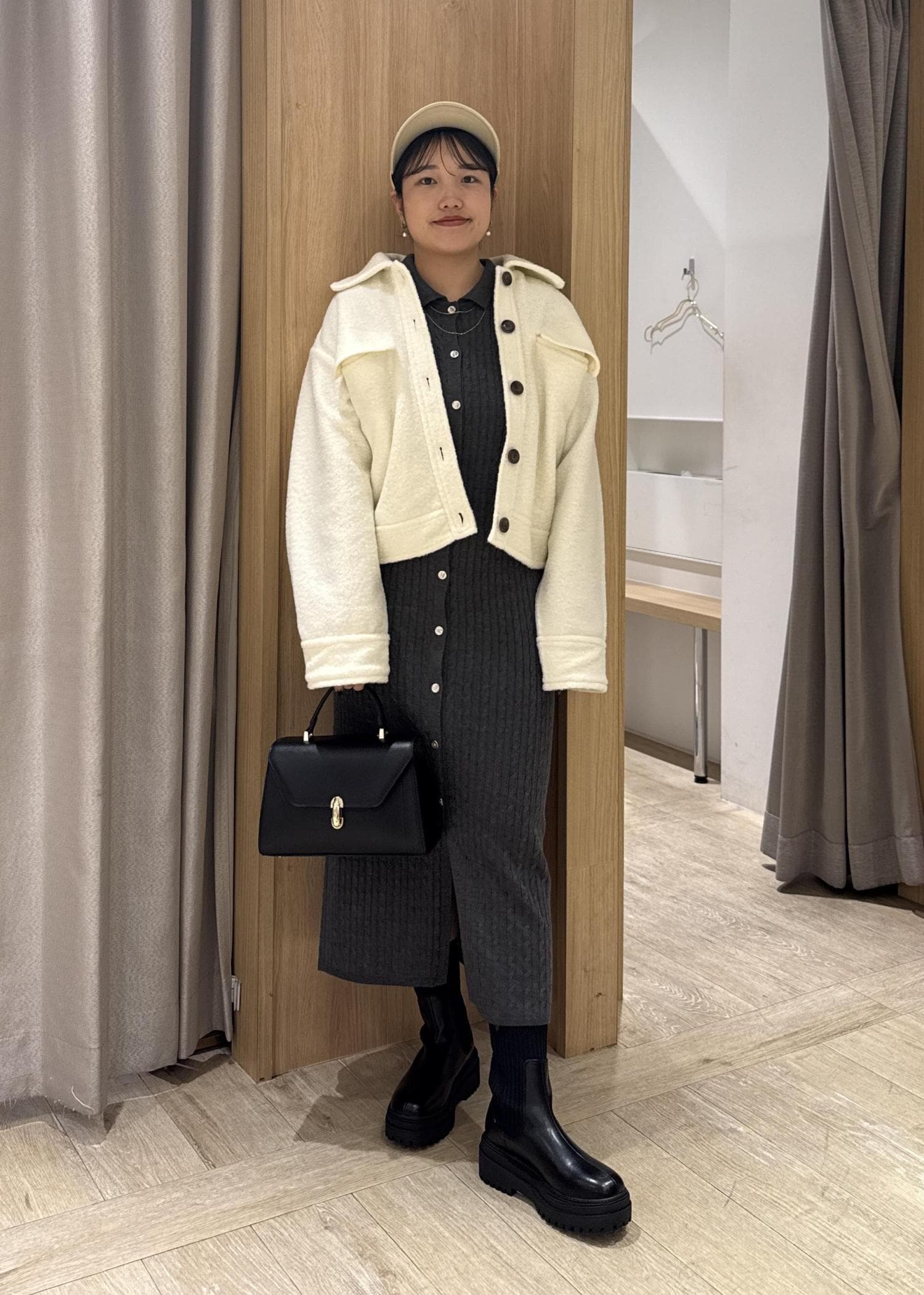 前が少し短い作りなのでボリュームのある素材感ですがスッキリ着ていただけます! -