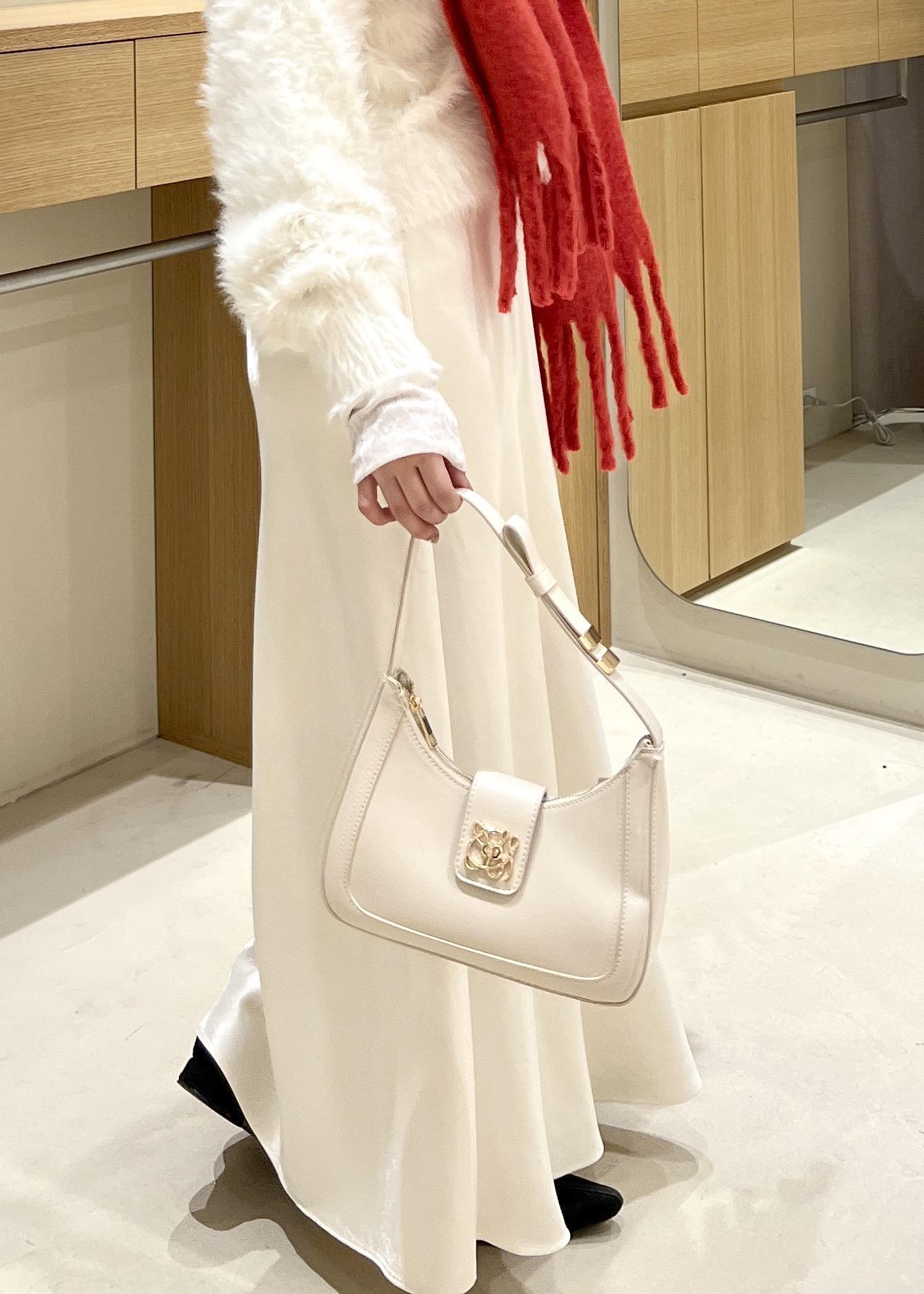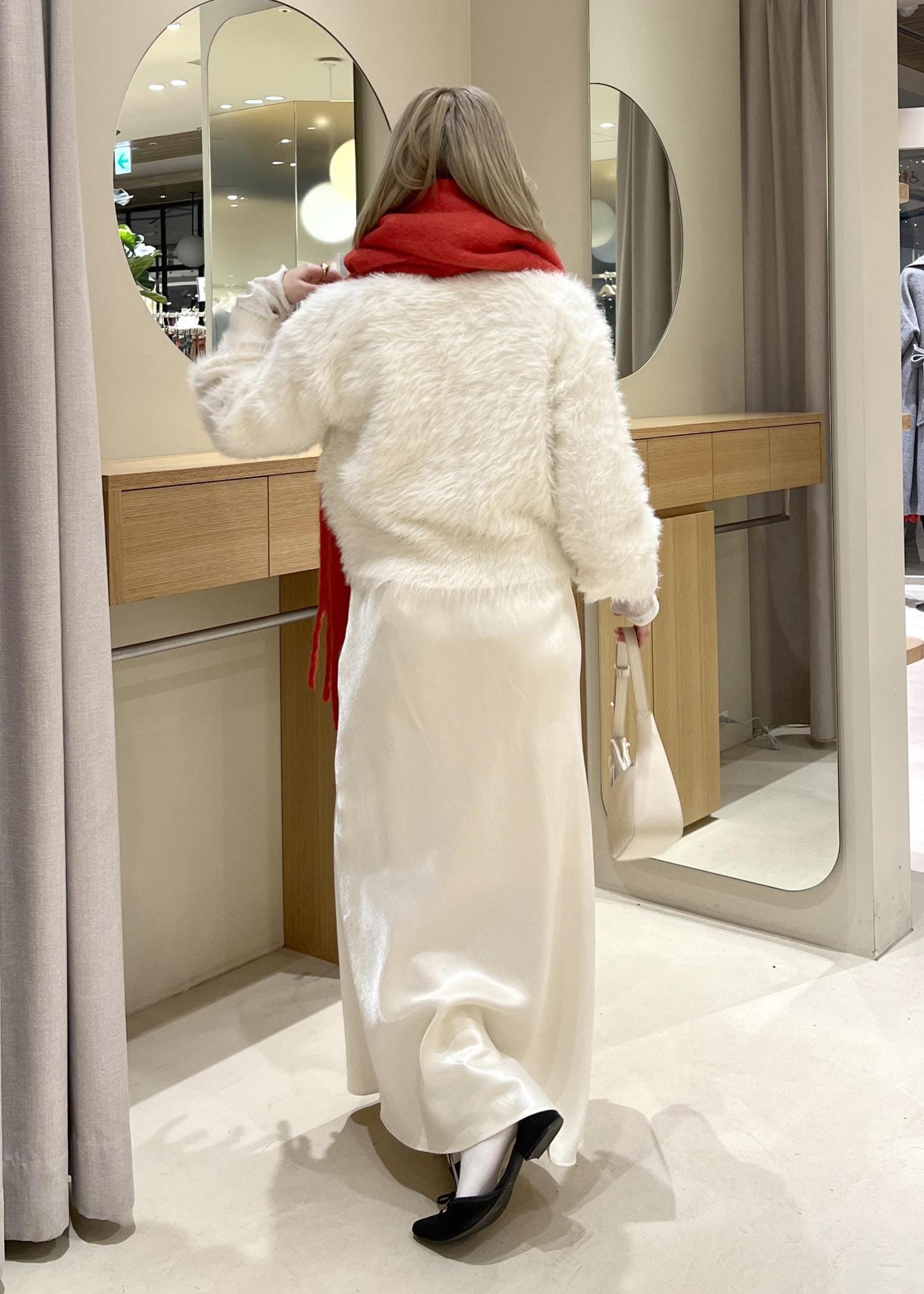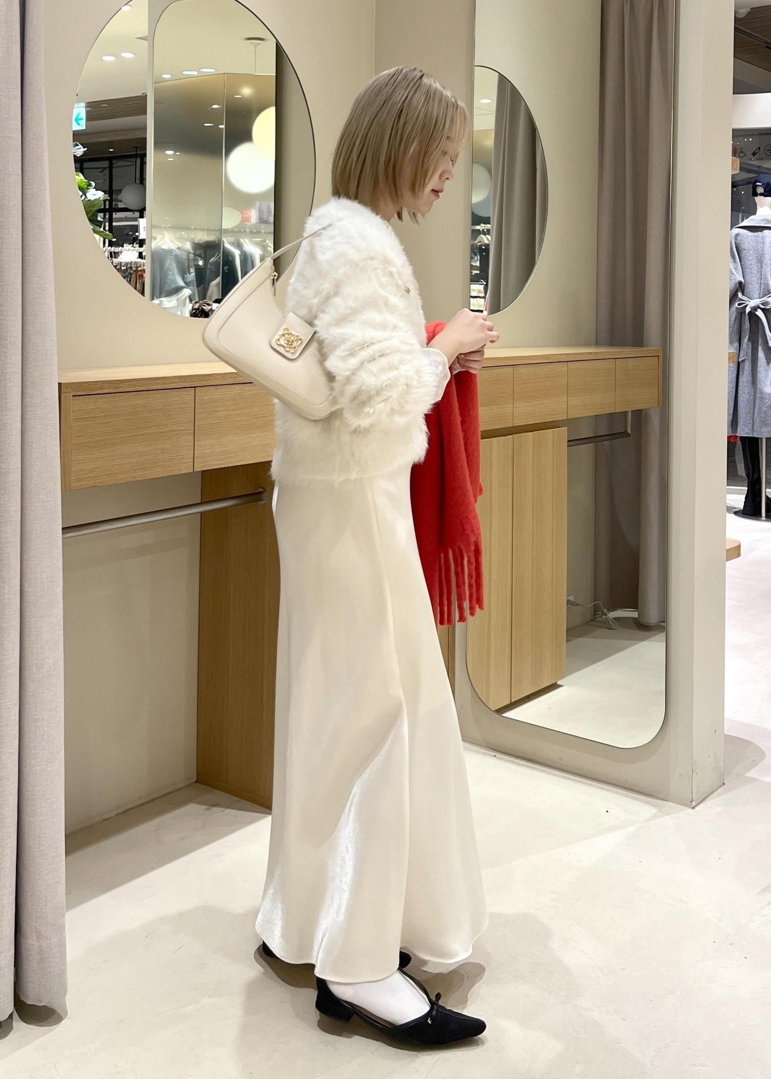 スカートの光沢感がキレイめ要素をキュッと上げてくれます!