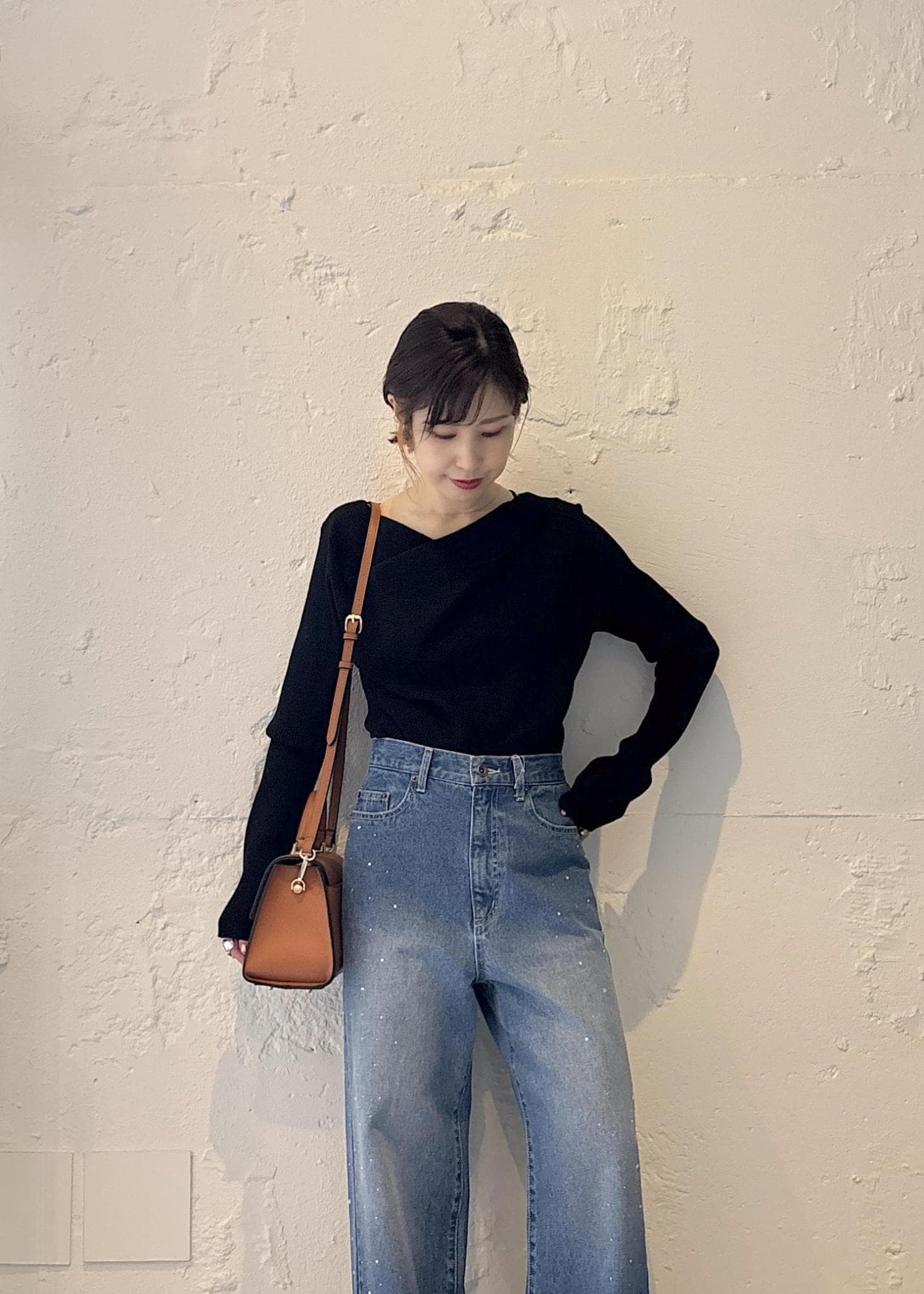 大人気のドレープシリーズ、秋冬バージョンのニットが登場です♪女性らしい印象見えするドレープシルエットがシンプルつつ一枚で上品な印象に◎デニムとヒールブーツ、キャメルのバックをアクセントにカジュアルだけど女性らしさを意識しました。秋冬オススメの大人カジュアルコーデ。