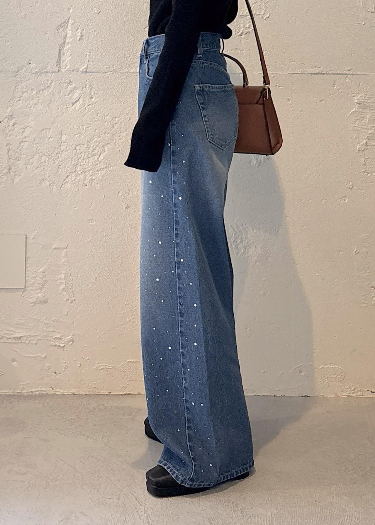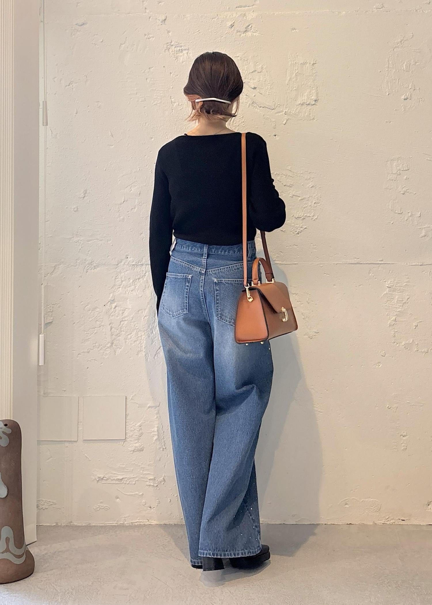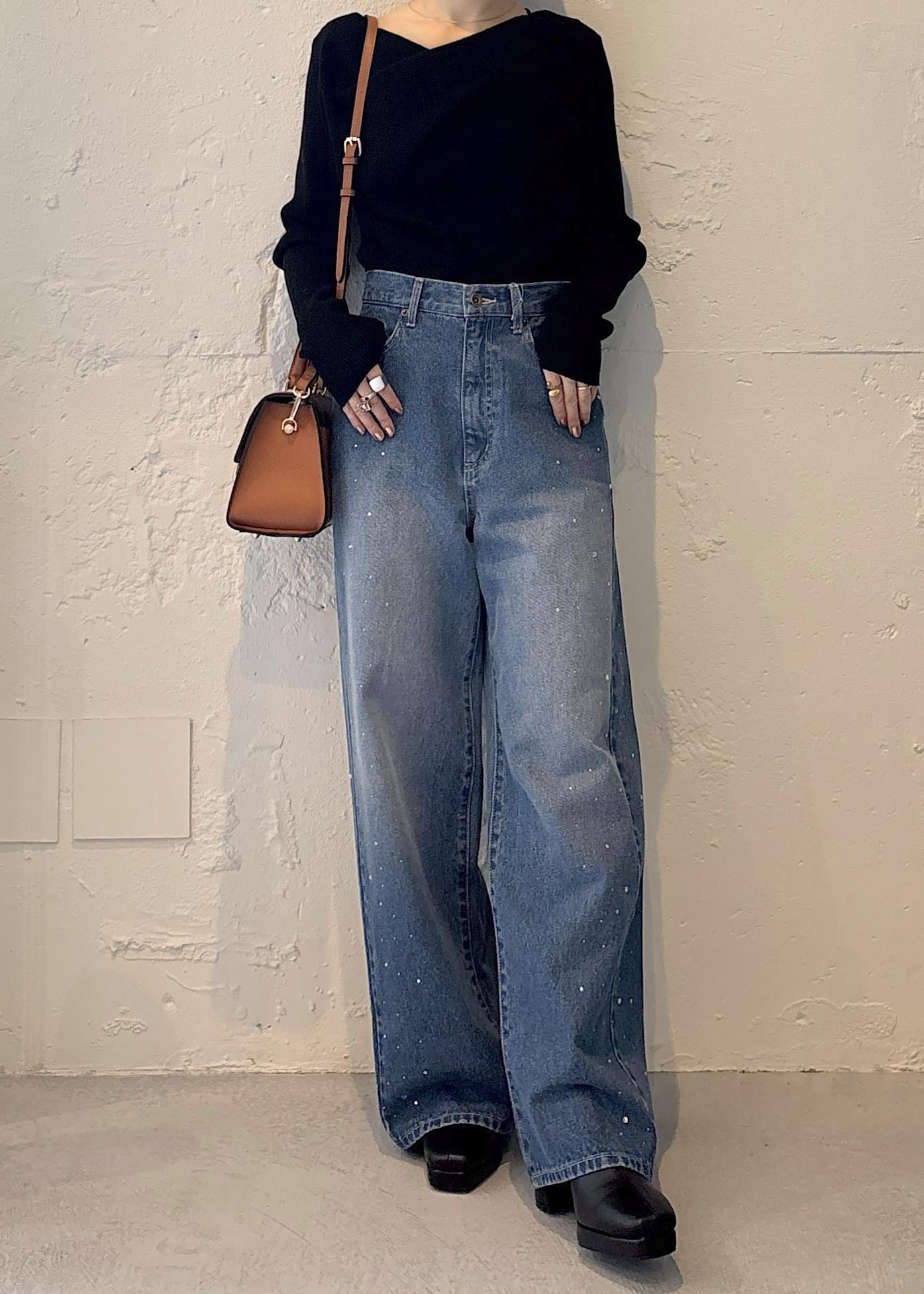 VISビジューデニムパンツブルー / M¥7,909レビューキラキラビジューが目を惹く大人可愛いデニム♪大きさの異なったビジューが正面サイドにあしらっている、カジュアルだけど女性らしい印象見えするデザイン。シルエットは広がり過ぎないストレートラインなので、コーディネートもバランスまとまります。厚過ぎず、薄過ぎずと通年使いやすい素材です◎サンプルの為Mサイズ着用、全体的にゆったりめ、着丈は足首くらいの長さでした。