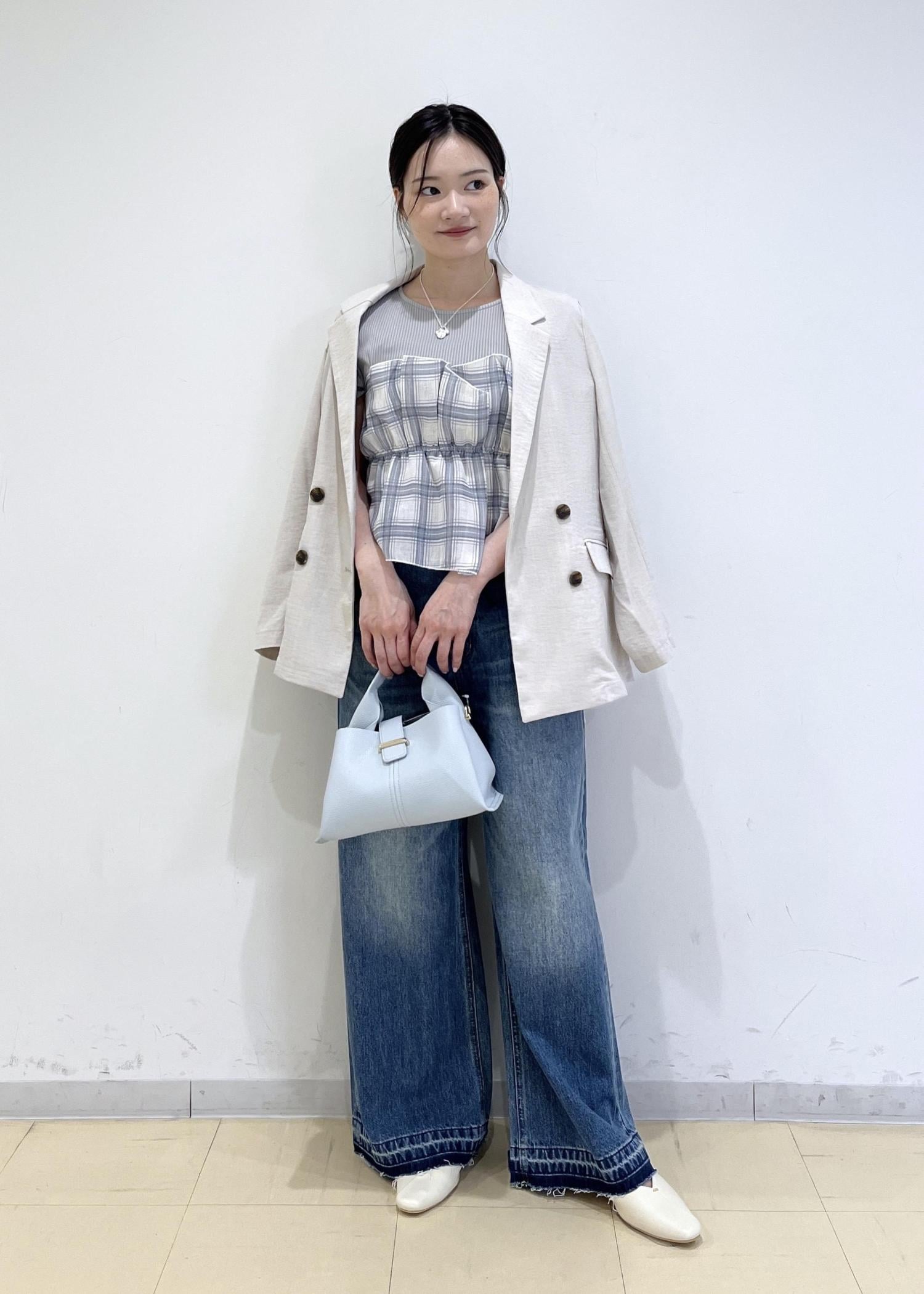 チェック柄アウターが主役。