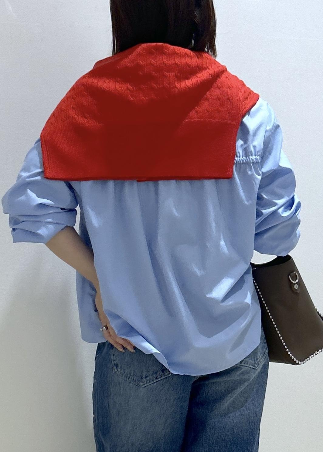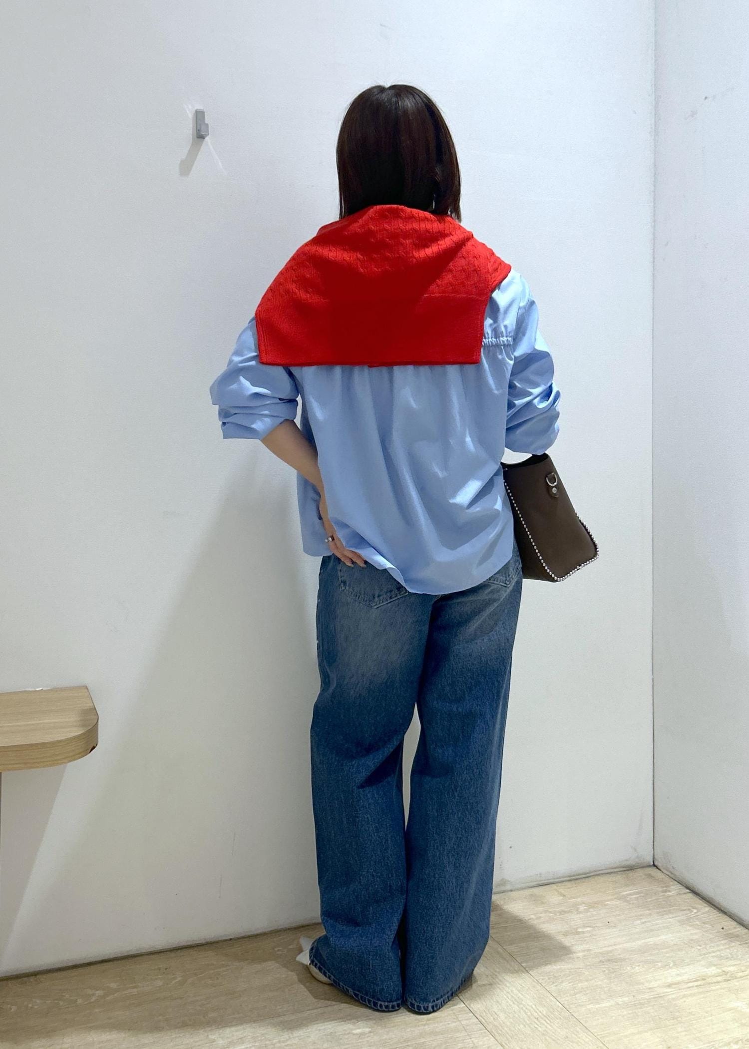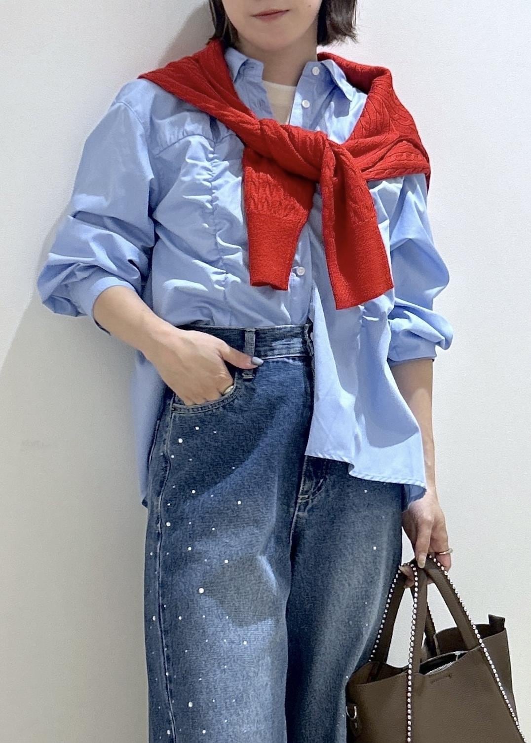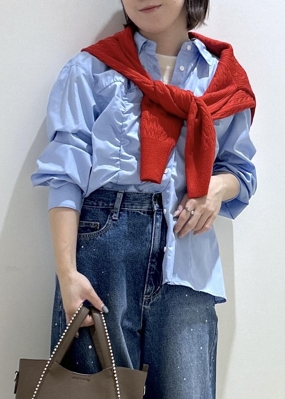 薄手の素材なので、ニットやカーディガンを重ねてもゴワつきません。 -