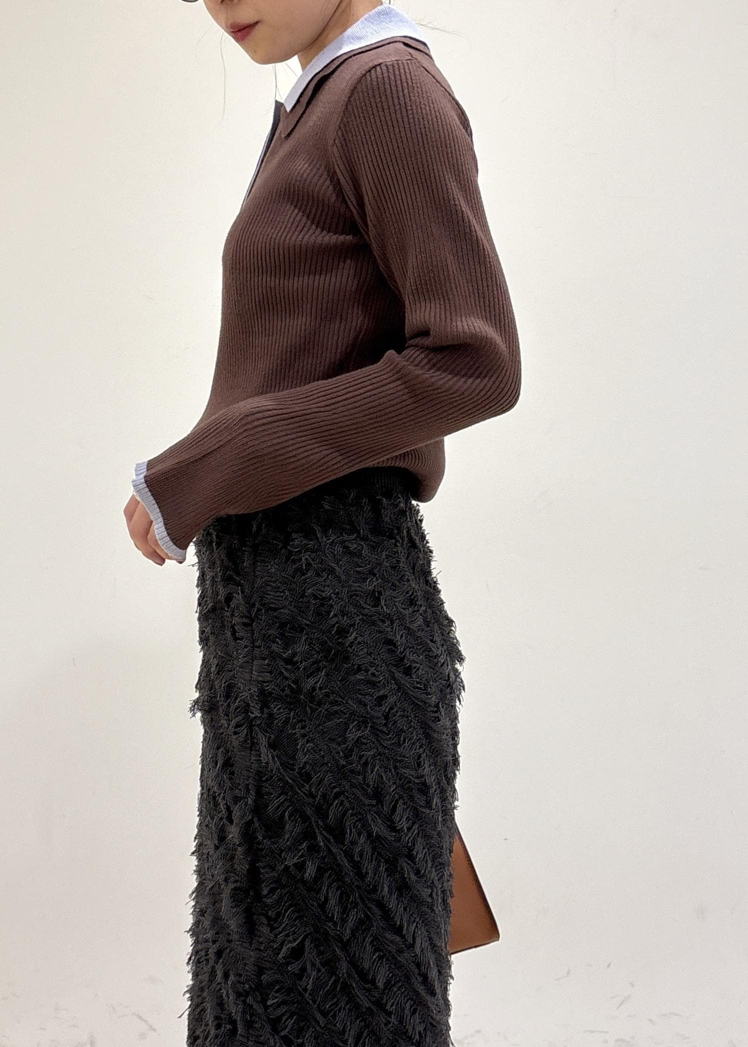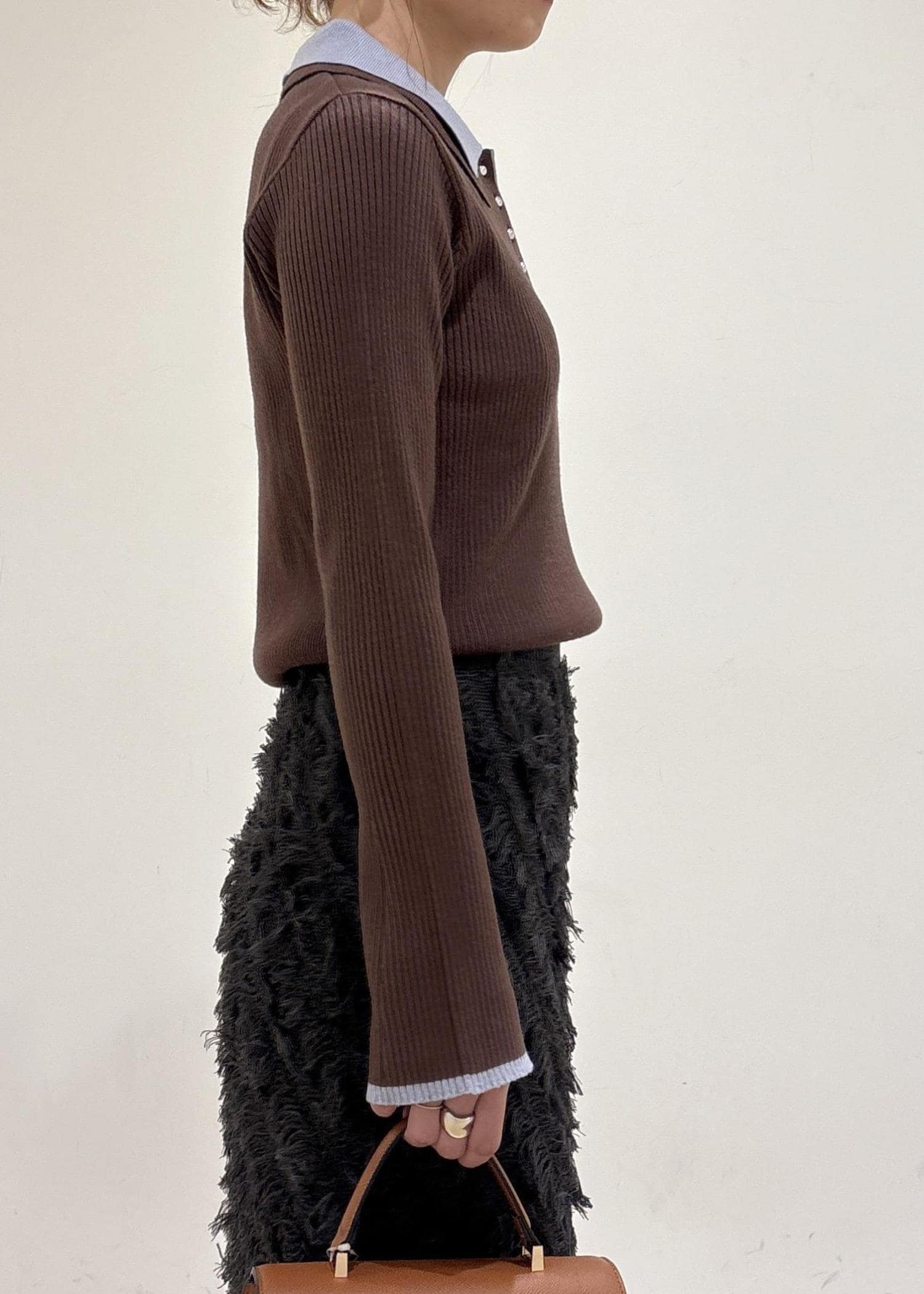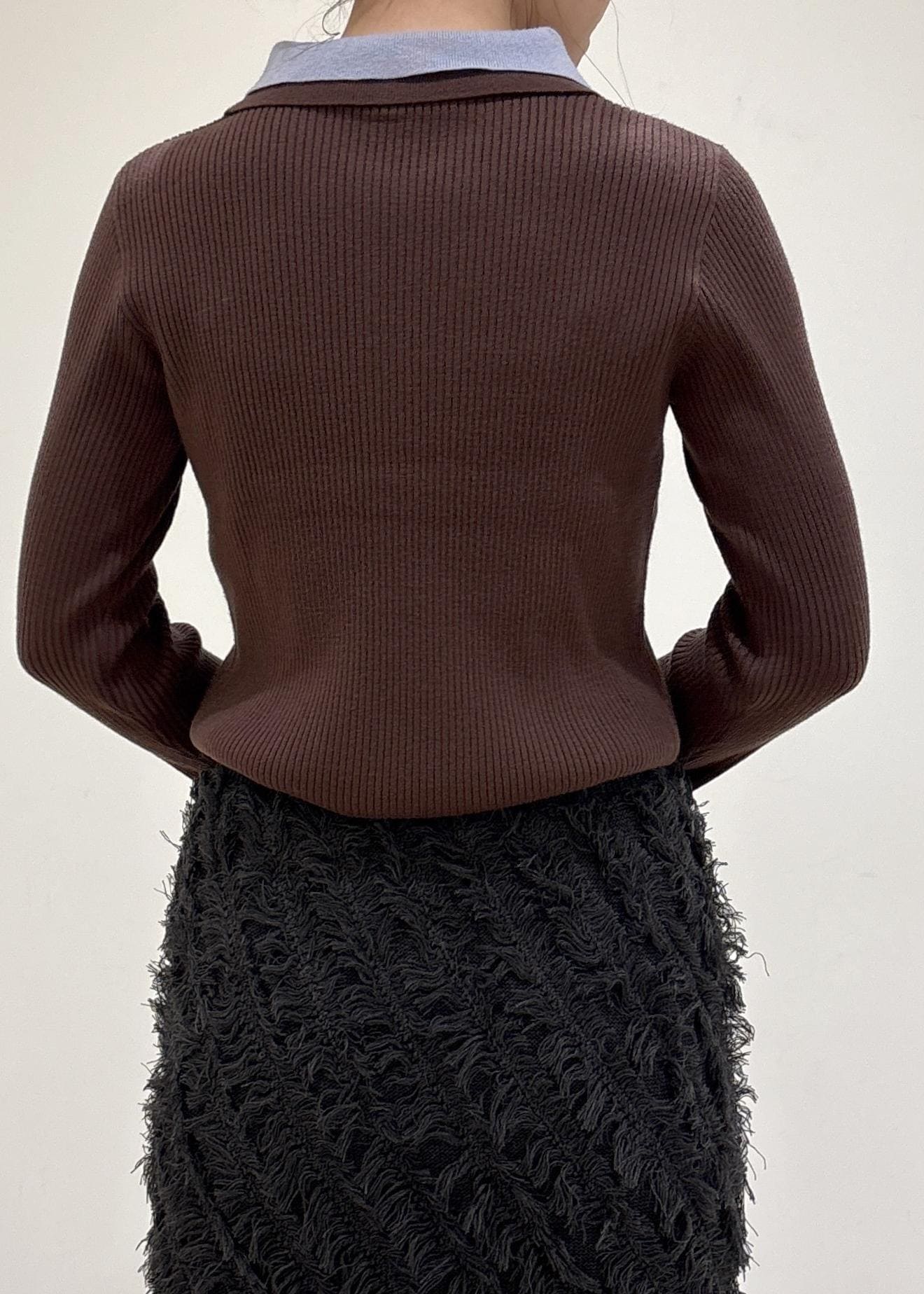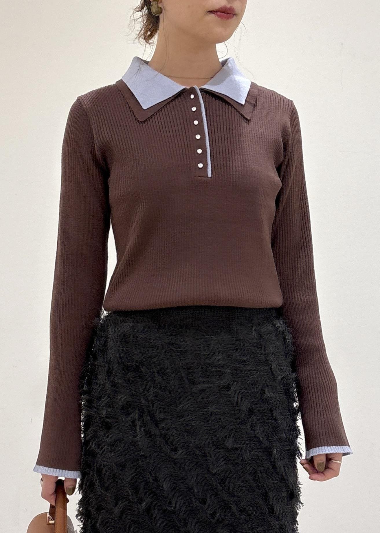 予約VISダブルカラーポロニットトップスブラウン / F¥5,929レビューダブルカラー襟でオシャレ感アップ!
