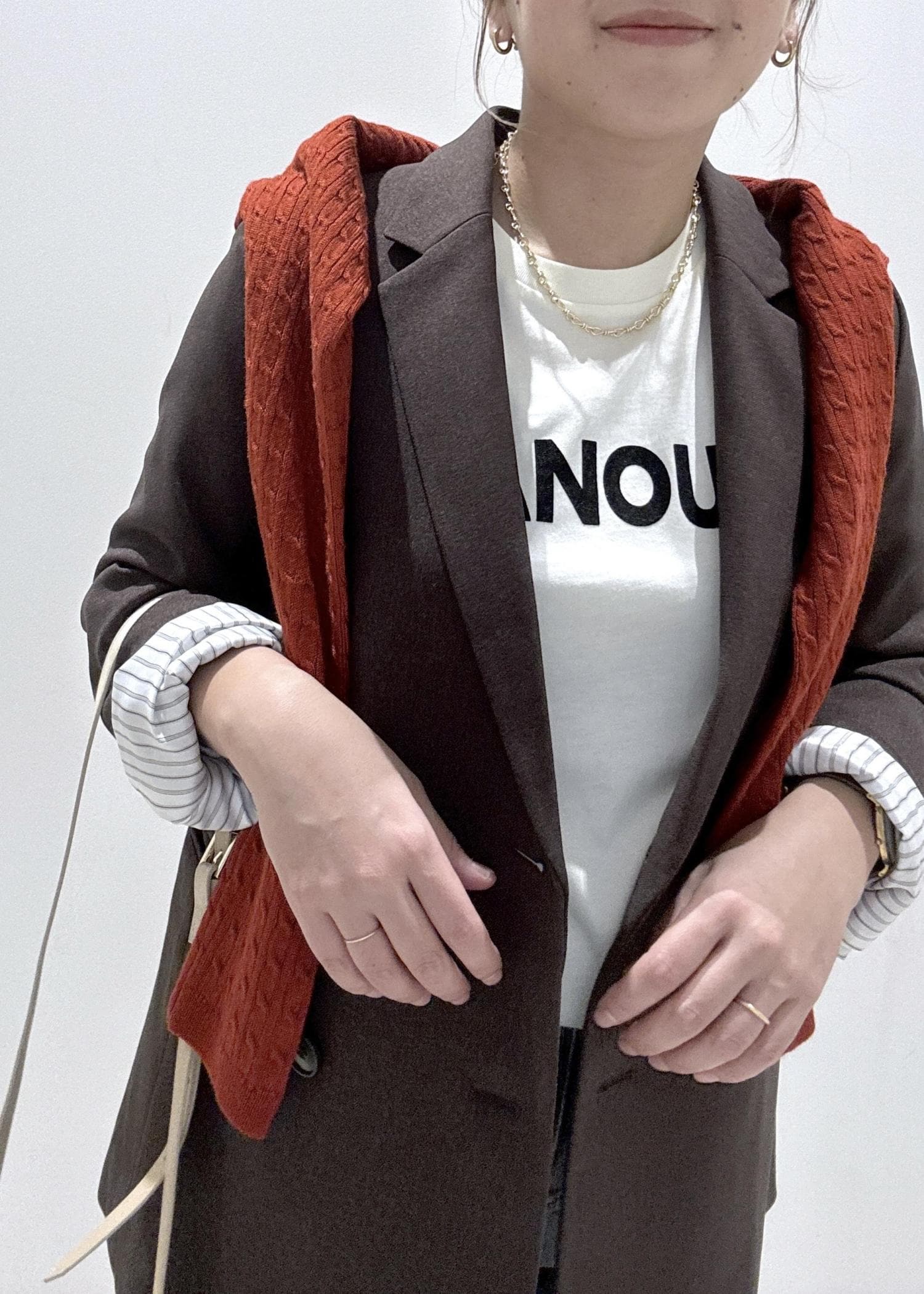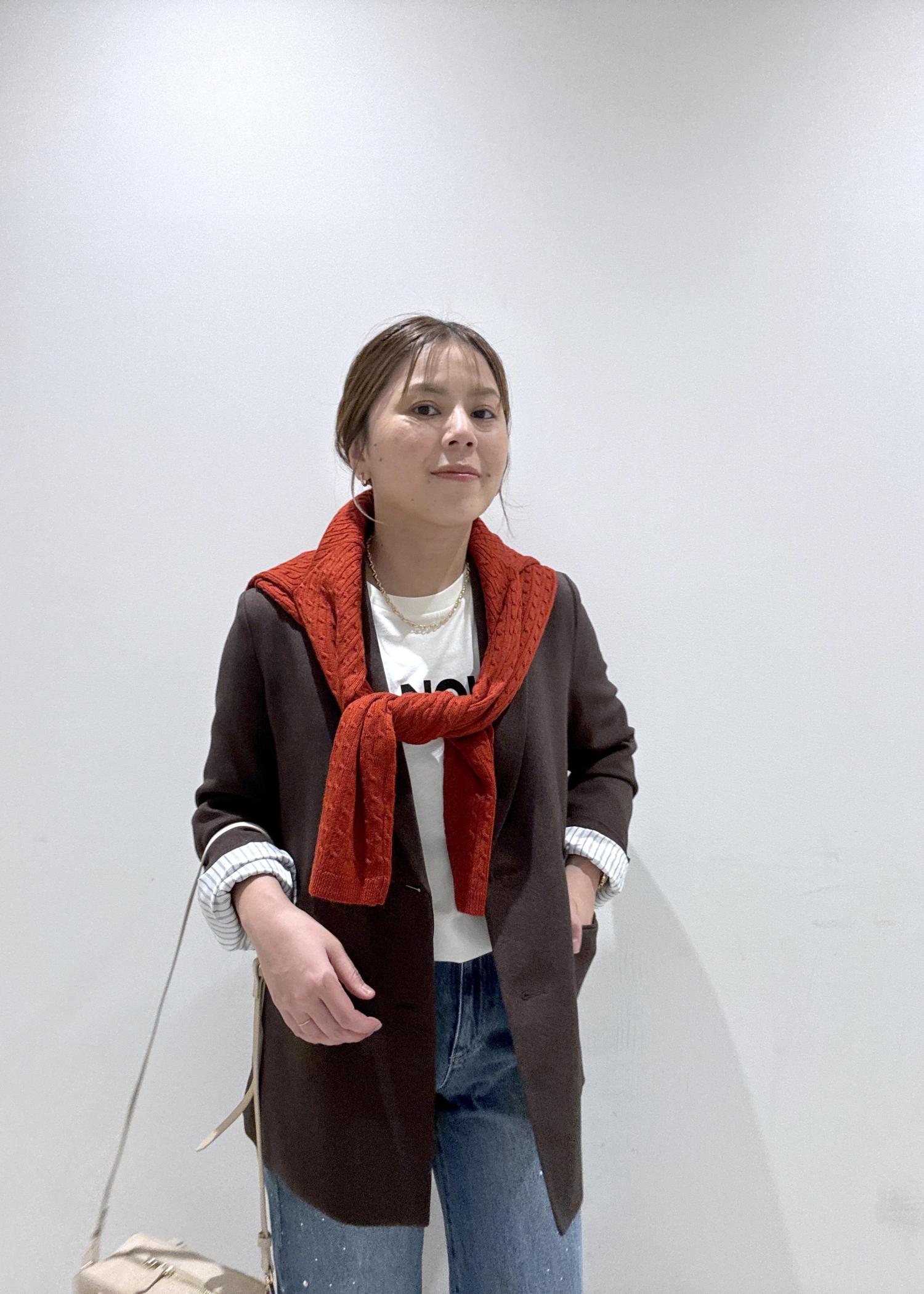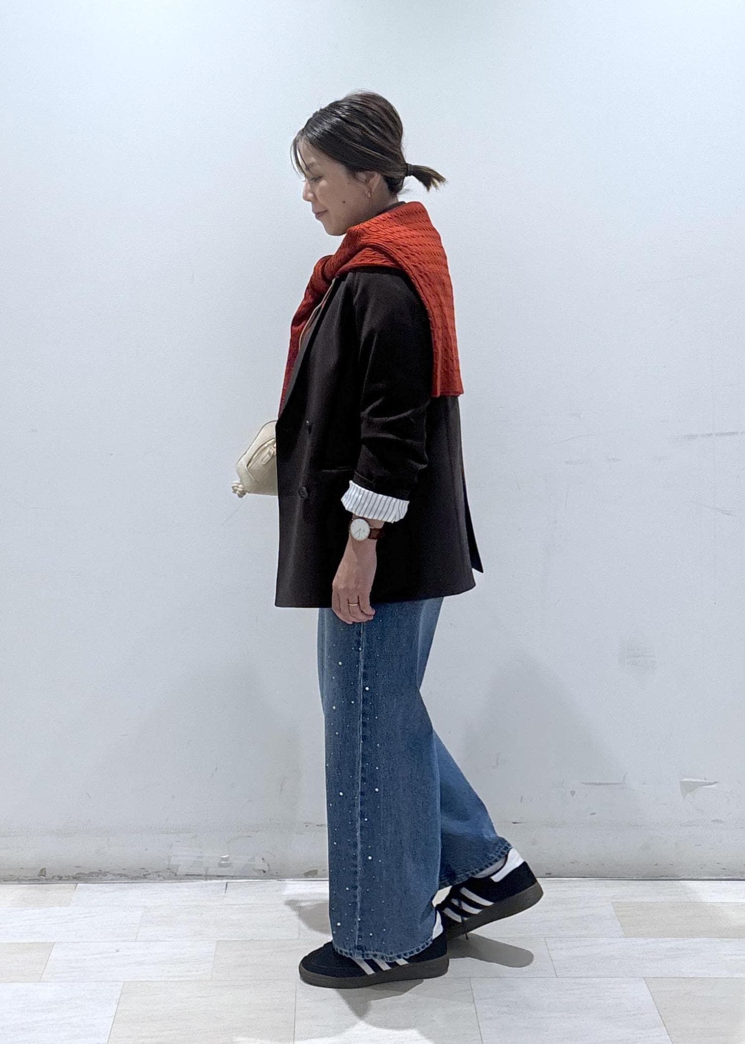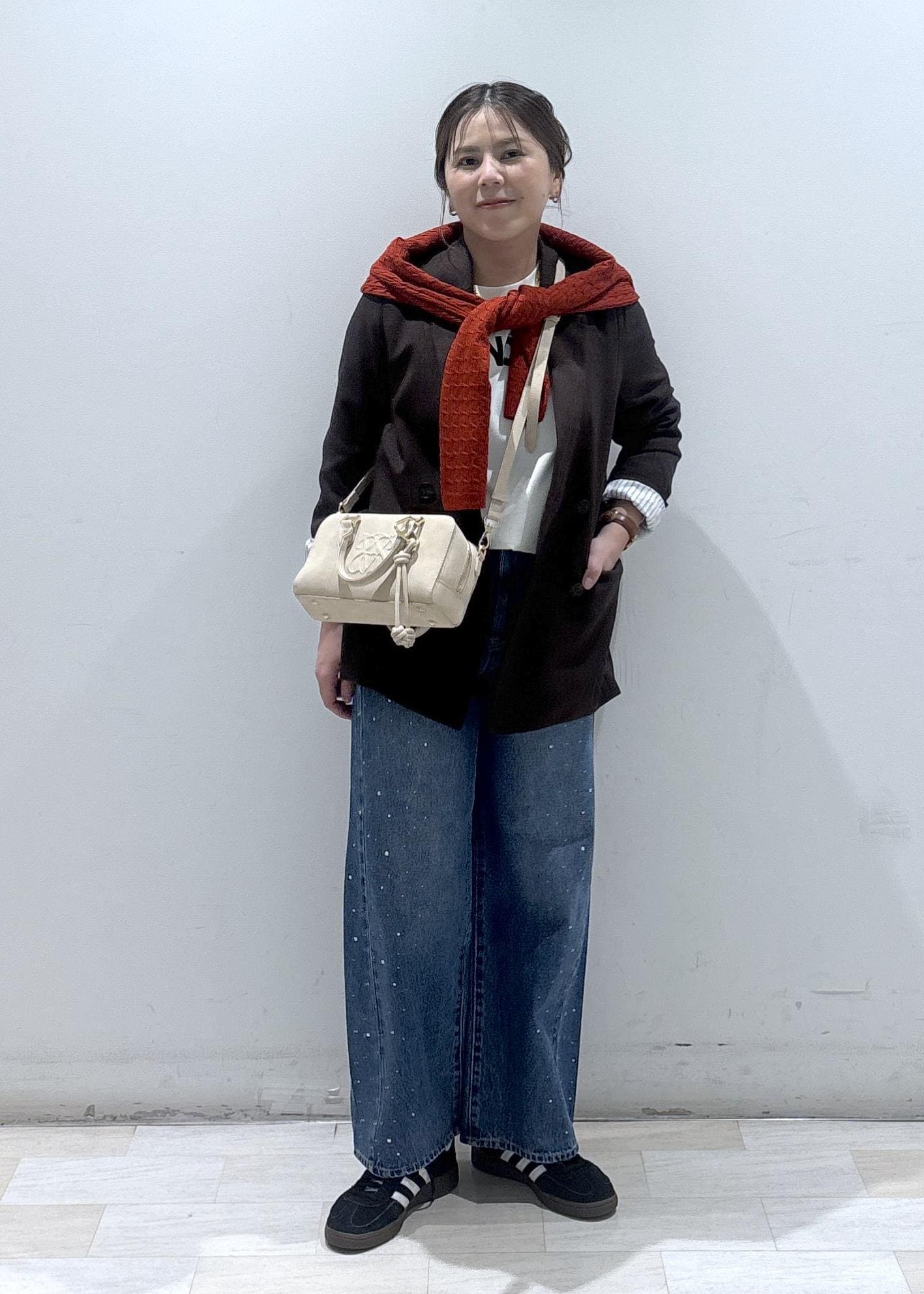 スエード調の生地なので、合わせるだけでグッと秋の雰囲気に。
