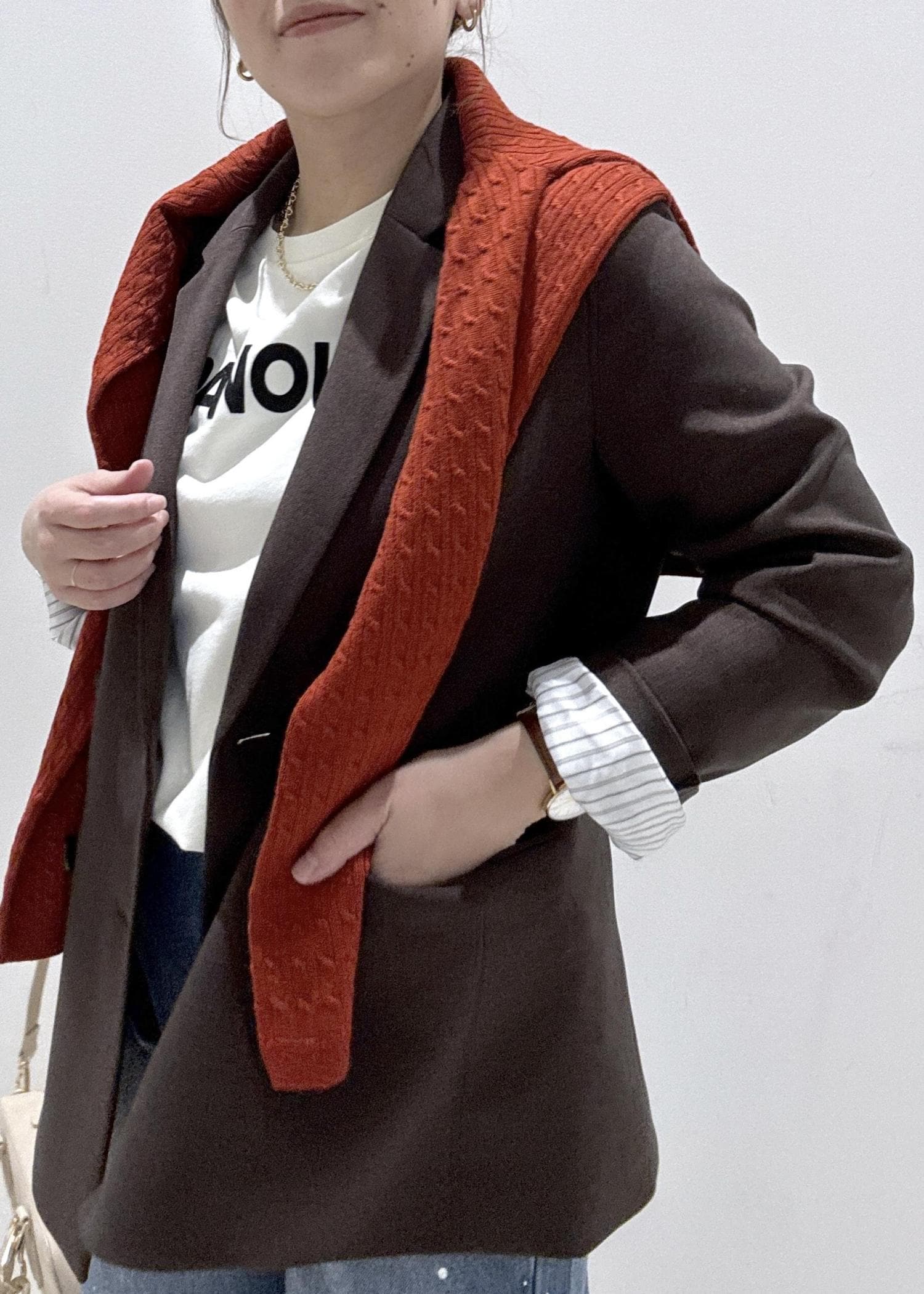 VIS【美easy】ウーリッシュダブルブレストテーラードジャケット【セットアップ対応/洗える】ダークブラウン / S¥8,899レビュー身長155cmの私はSサイズでお尻が隠れる着丈でした。