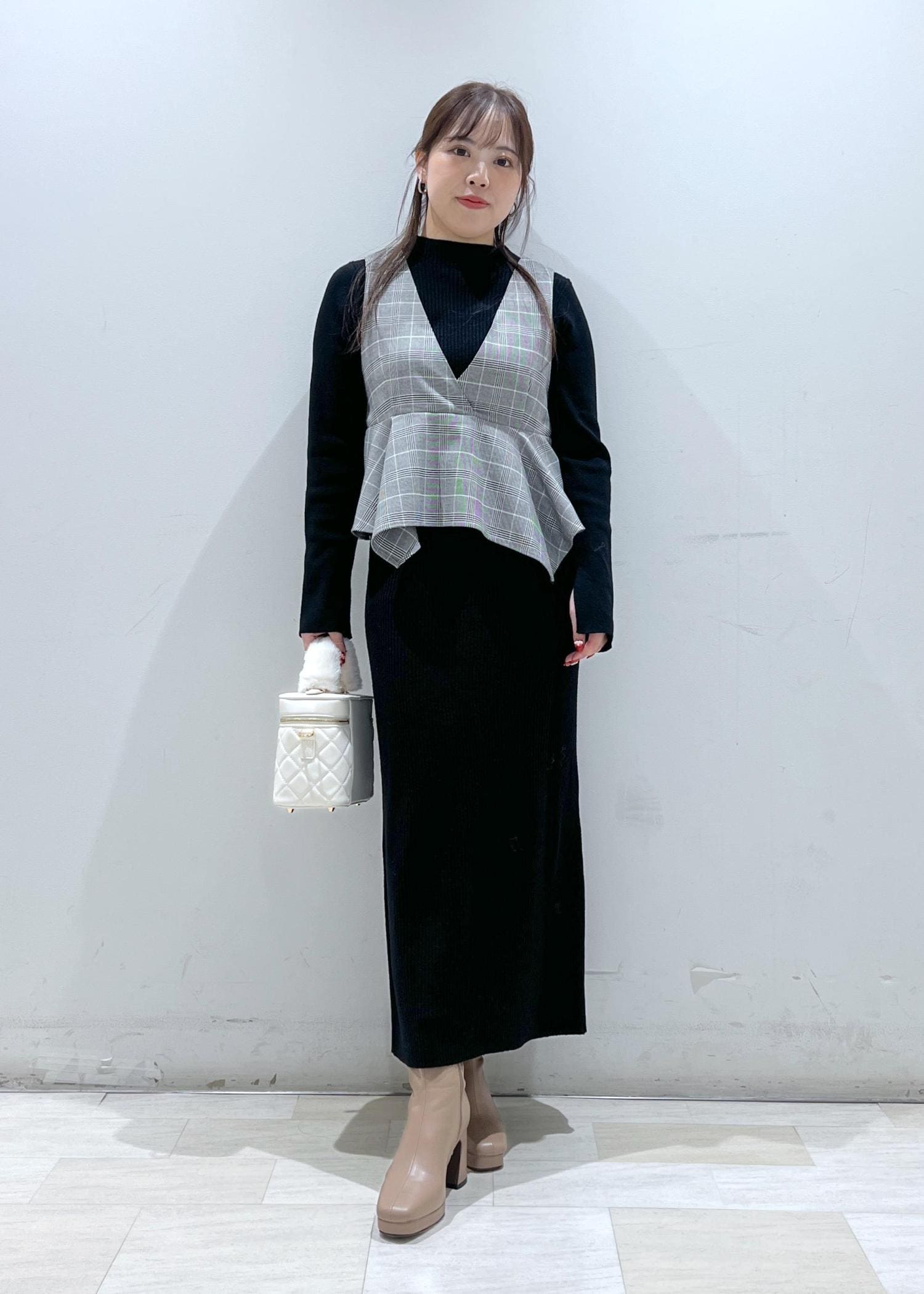 VISビスチェセットニットワンピースブラック系 / S¥9,999レビューフレアヘムのビスチェがセットになっていて、そのまま着るだけで様になるワンピースです!