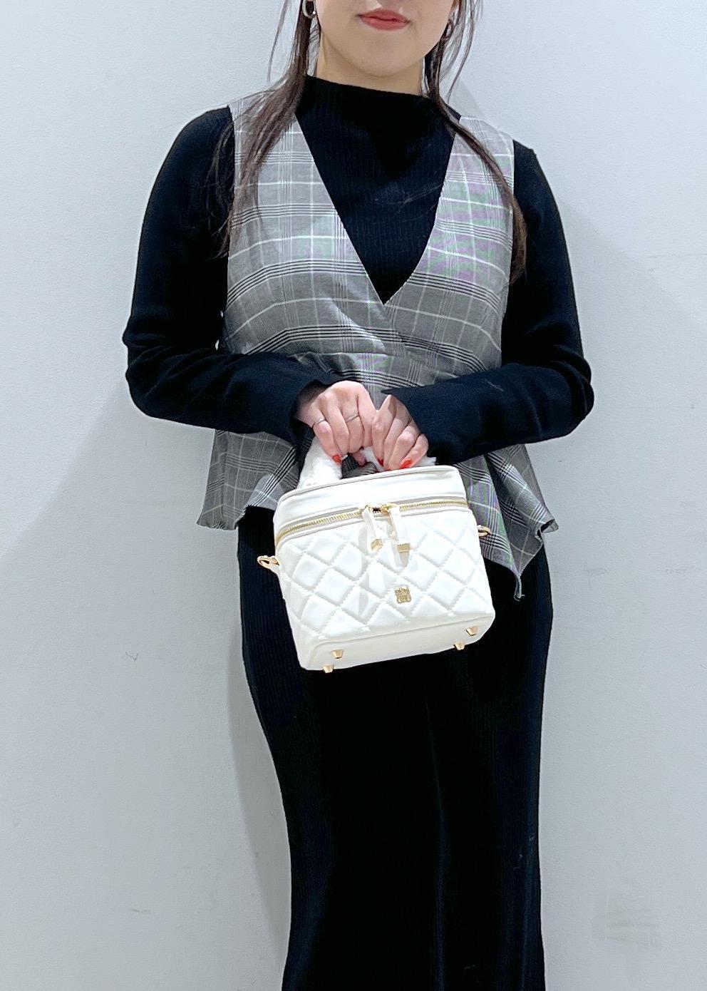 VISファーハンドルキルティング&ツイードバニティバッグ/2WAYオフホワイト / F¥7,909レビュー近年トレンドのバニティバッグ!