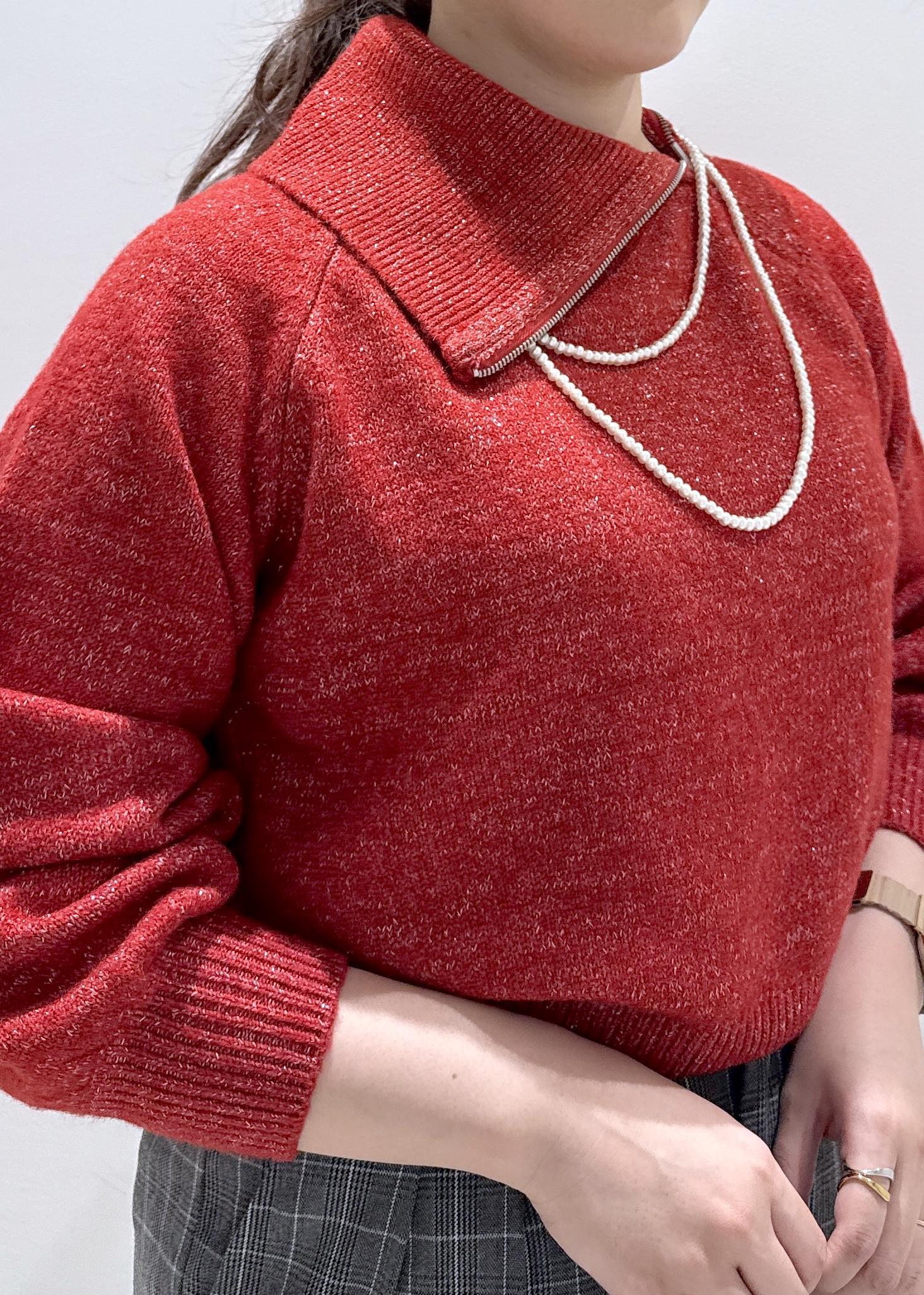赤が映えるキラキララメニット⭐︎