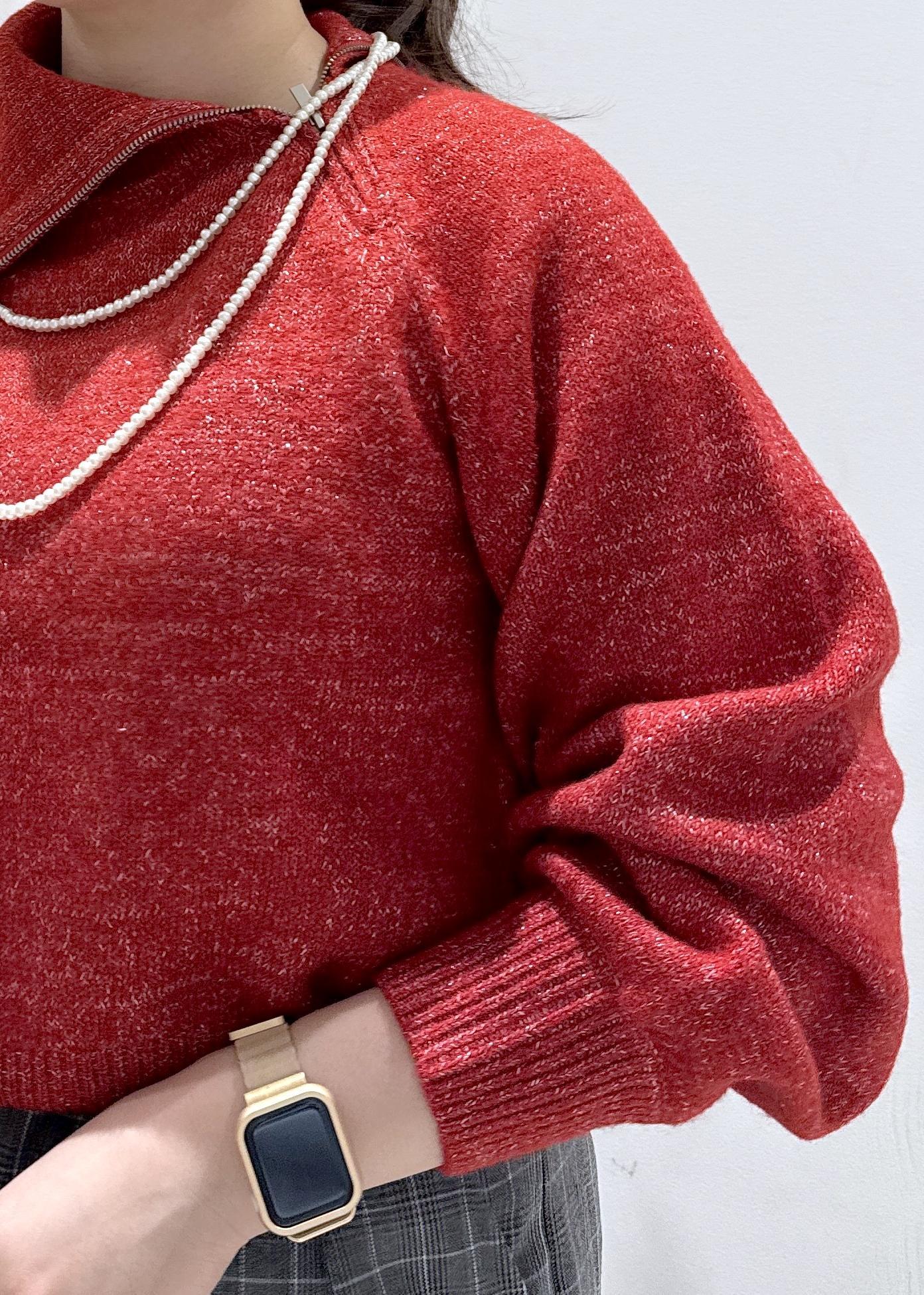 VISフロントジップニットプルオーバー/イージーケアレッド系 / F¥6,589レビュー首周りがフロントジップになっているデザインのラメニット♪好きなところでジップの飽き具合が調節でき、お袖が少しボリューム感があって可愛いです。