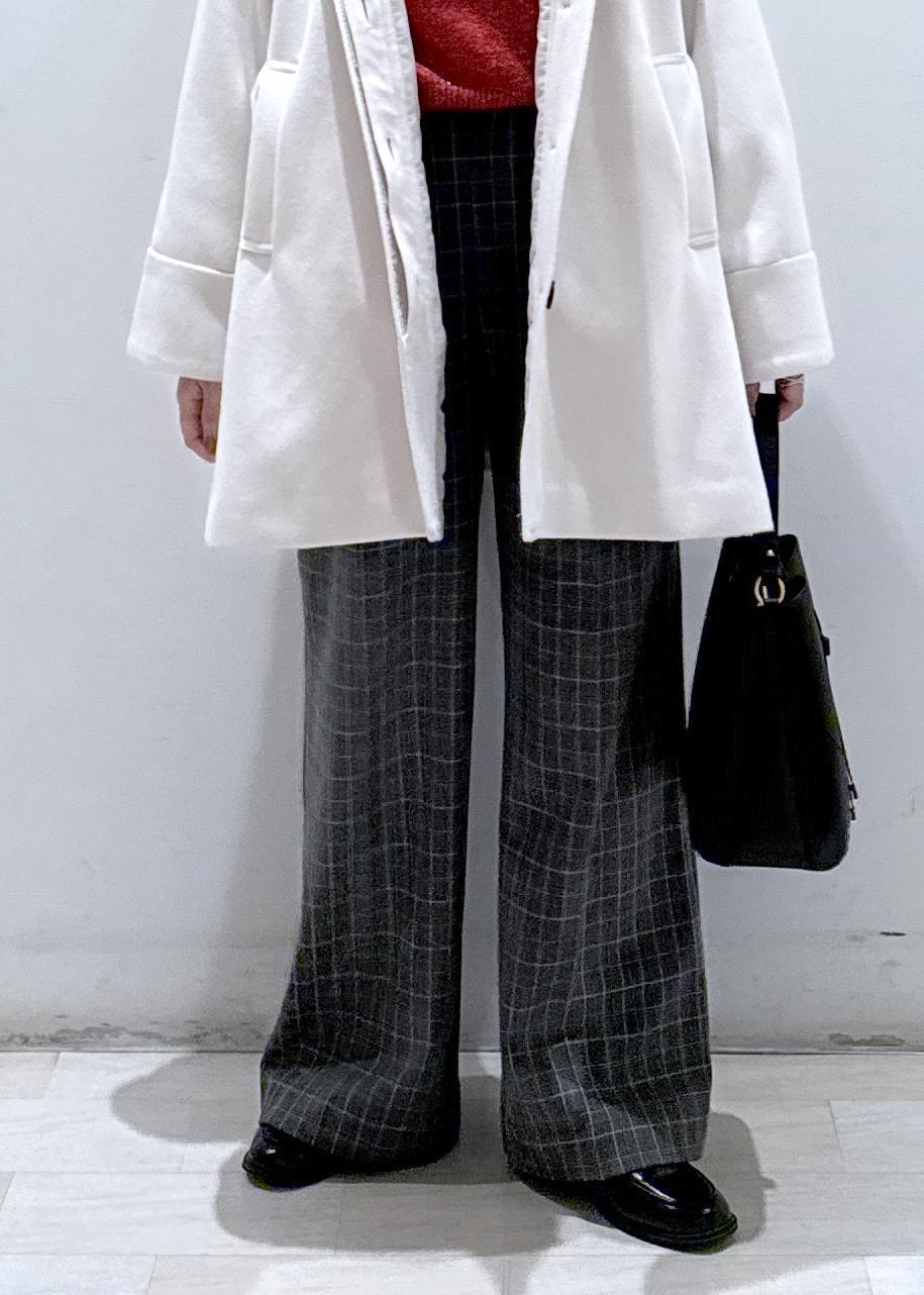 これからの冬をイメージさせるクリスマスシーズンなどにもピッタリ♪キラキラとした赤は、顔周りも明るく見せるのでオススメです。またワイドパンツは裏地が起毛になっているのでとても暖かいです!
