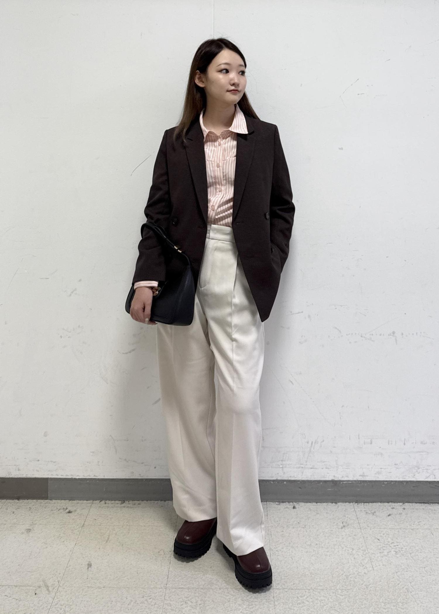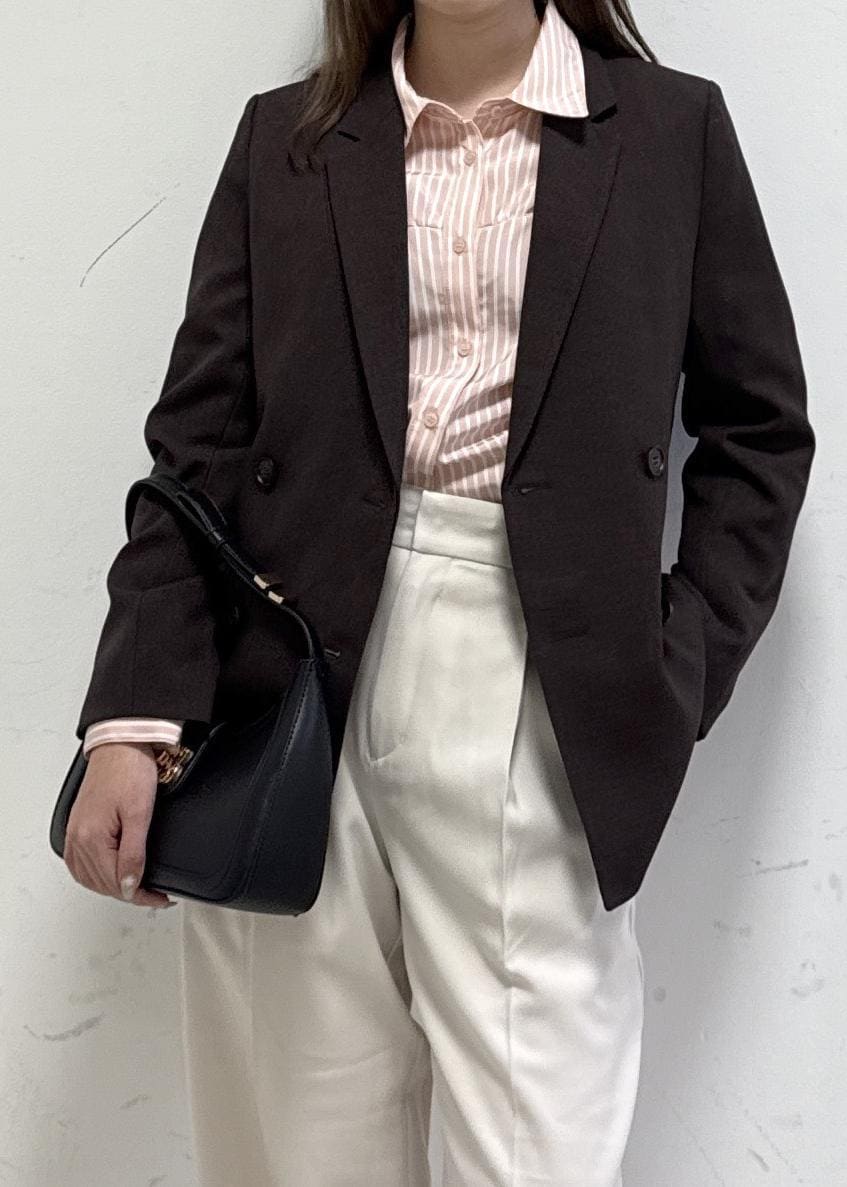 VIS【美easy】ウーリッシュダブルブレストテーラードジャケット【セットアップ対応/洗える】ダークブラウン / S¥8,899レビュー158cmの身長で、お尻が隠れるくらいの身丈でした。