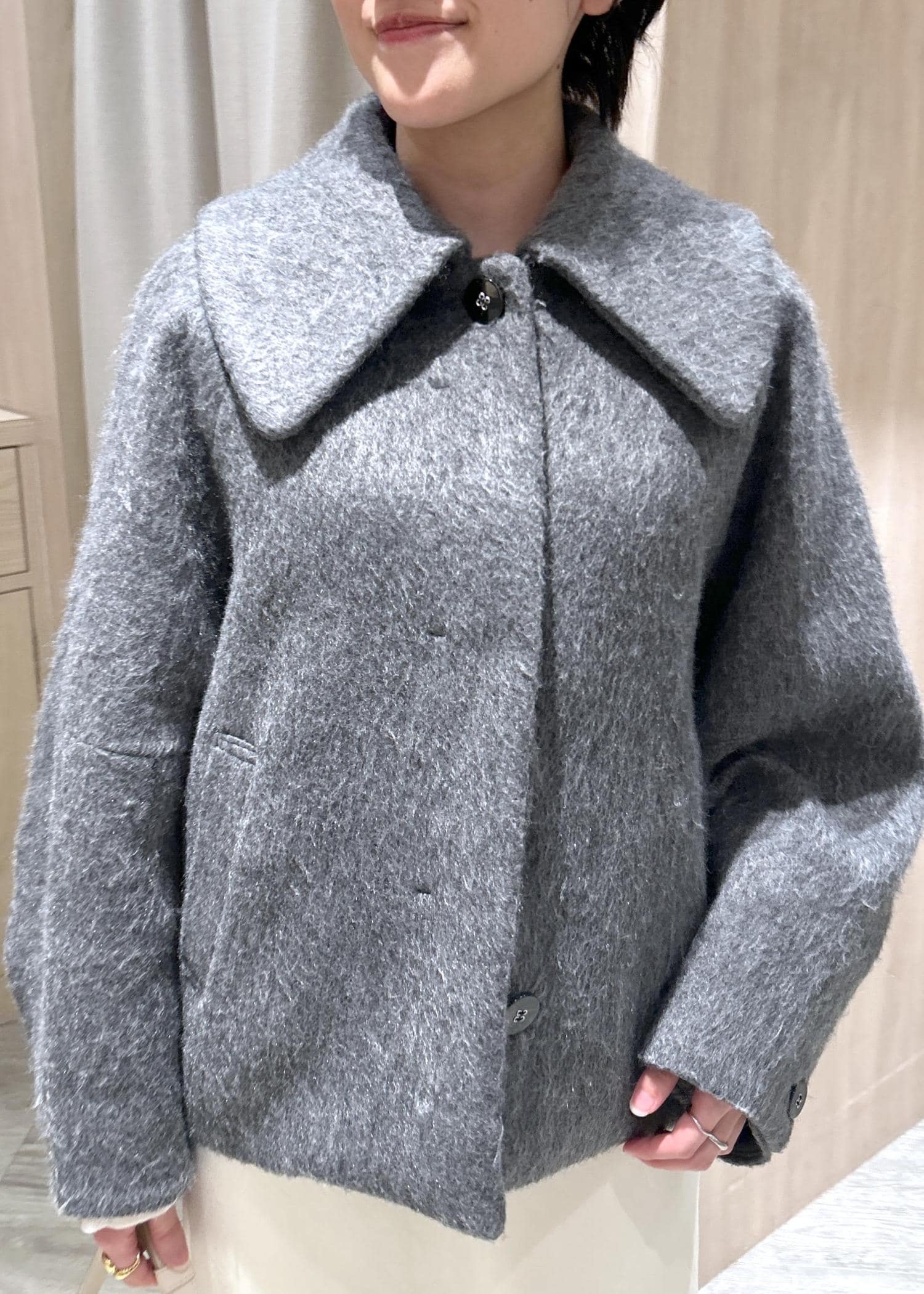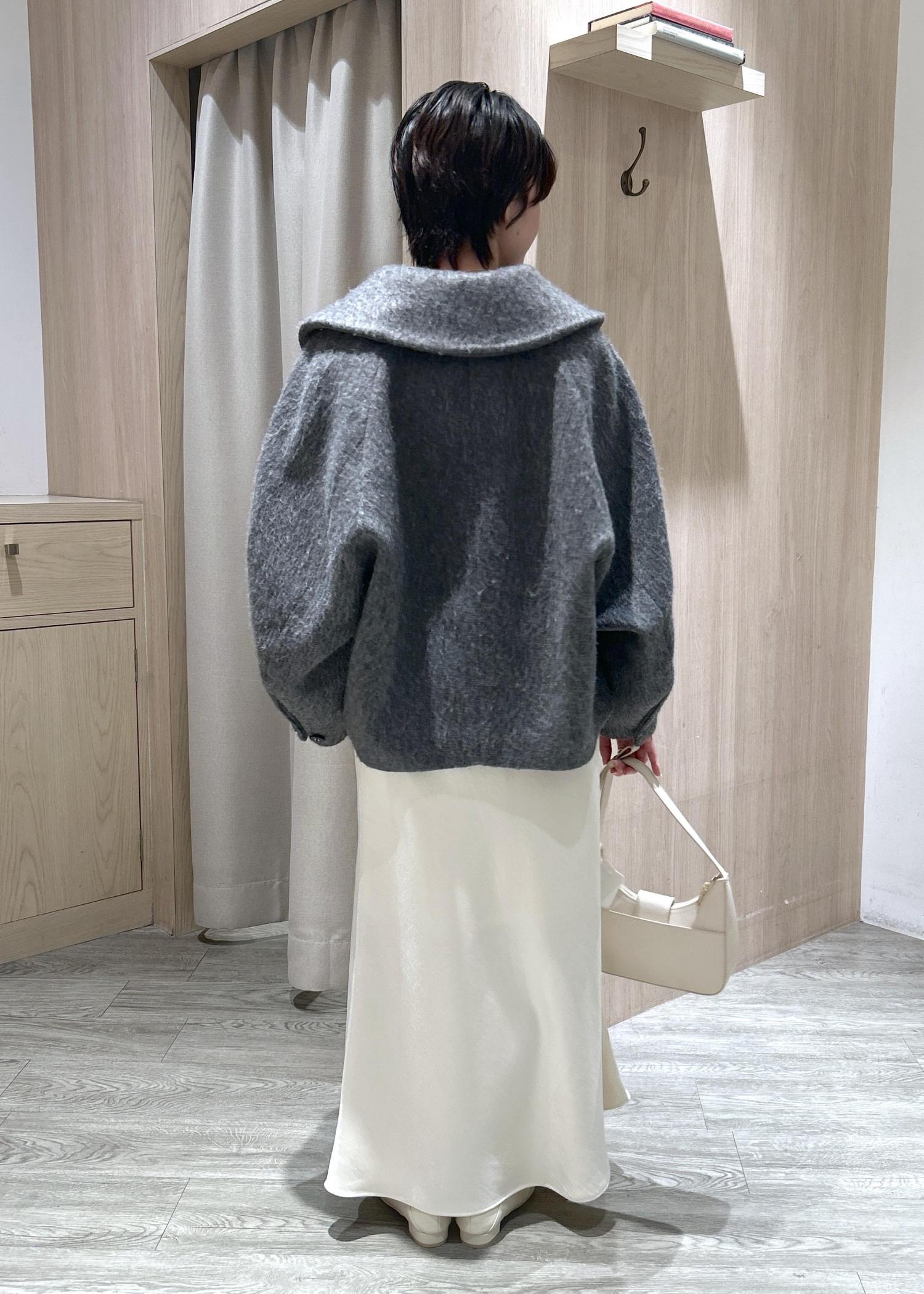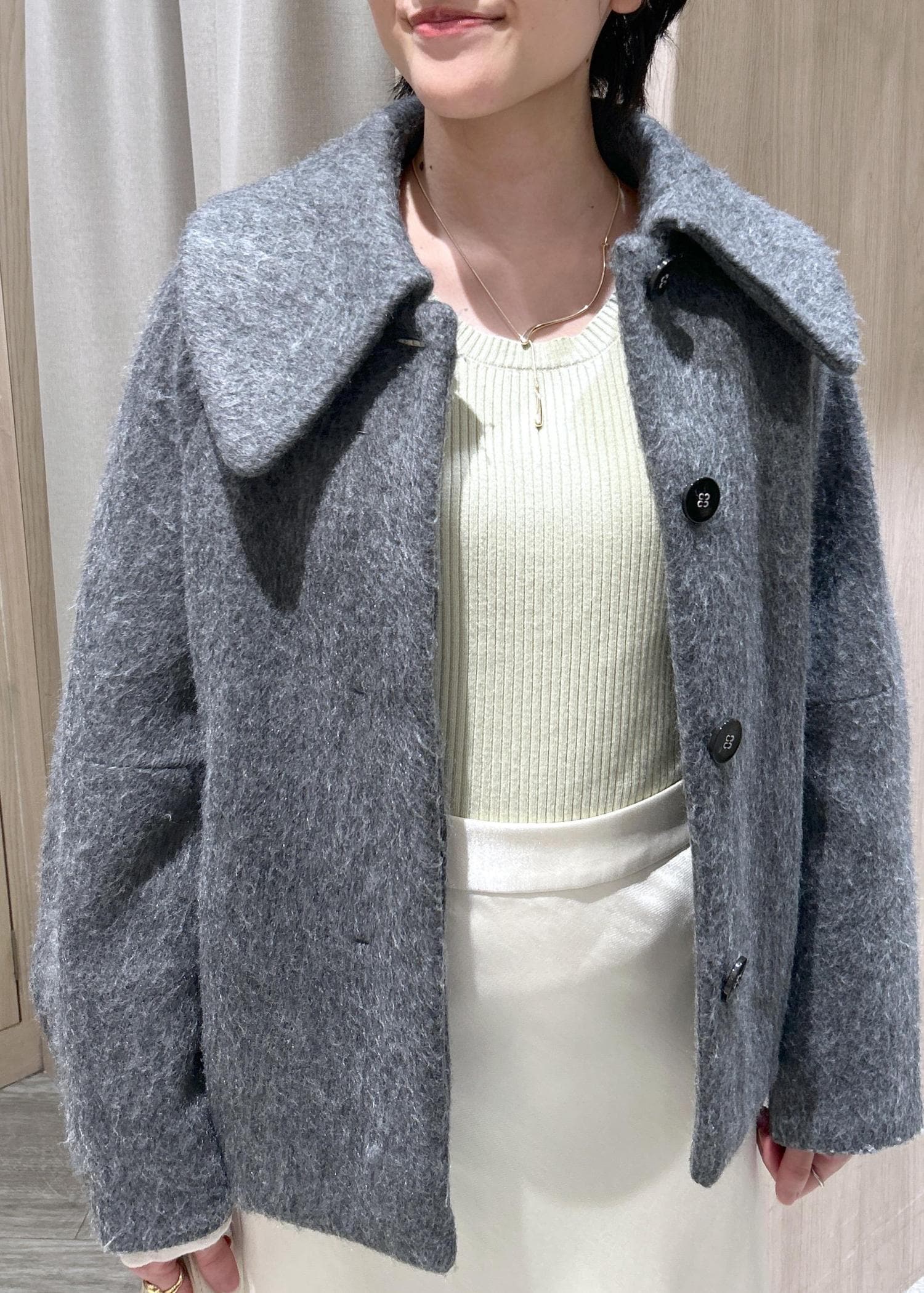 予約VIS【アウター総選挙1位】ビッグカラーモモンガシャギーショートコートグレー / S¥10,989レビュー身長155cm、Sサイズ着用で少し肩を落として着てお尻が隠れる長さです。