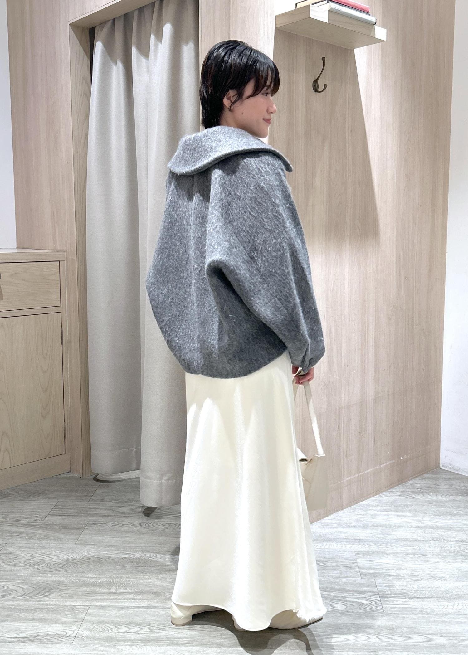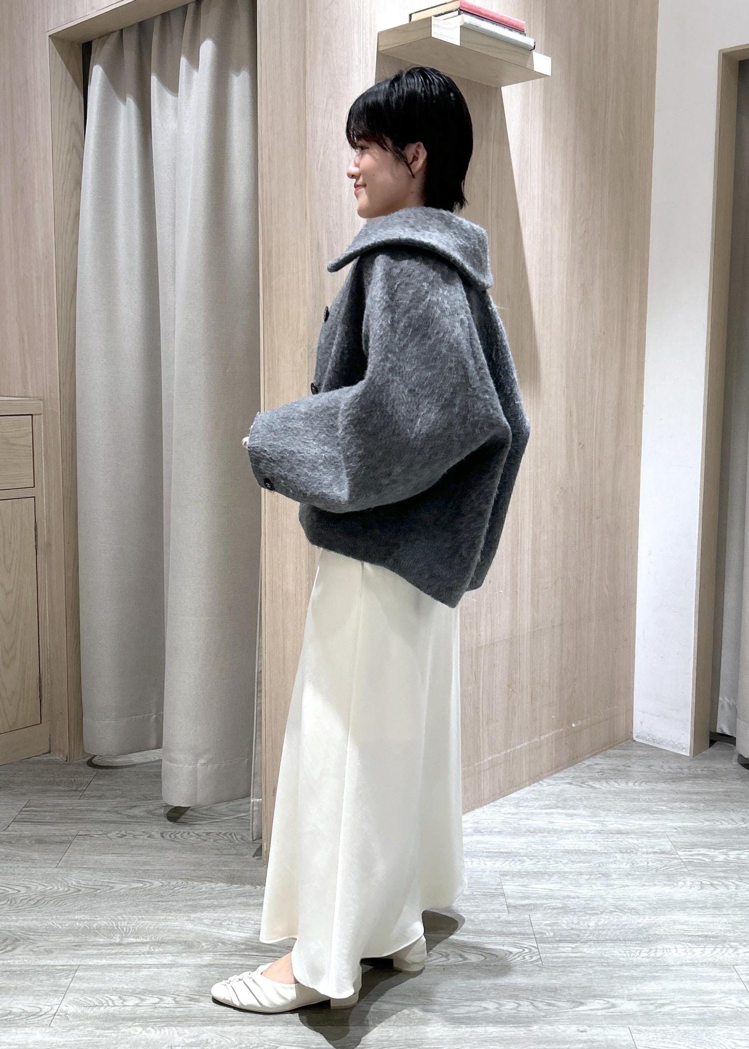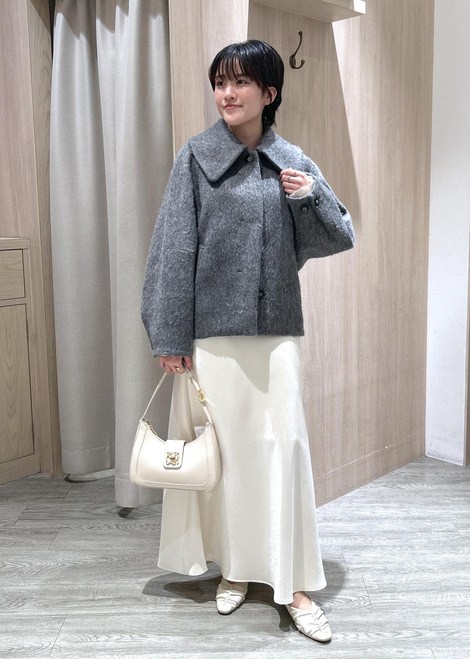 予約VIS【アウター総選挙1位】ビッグカラーモモンガシャギーショートコートグレー / S¥10,989レビュー身長155cm、Sサイズ着用で少し肩を落として着てお尻が隠れる長さです。