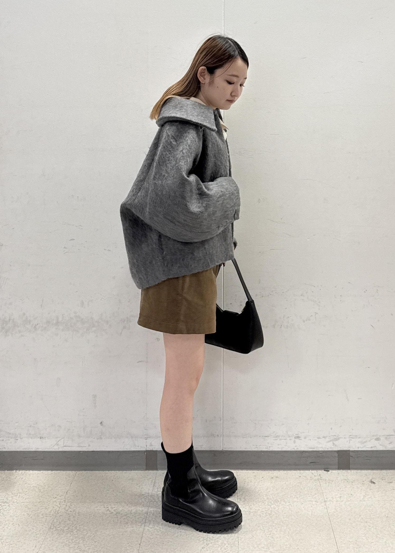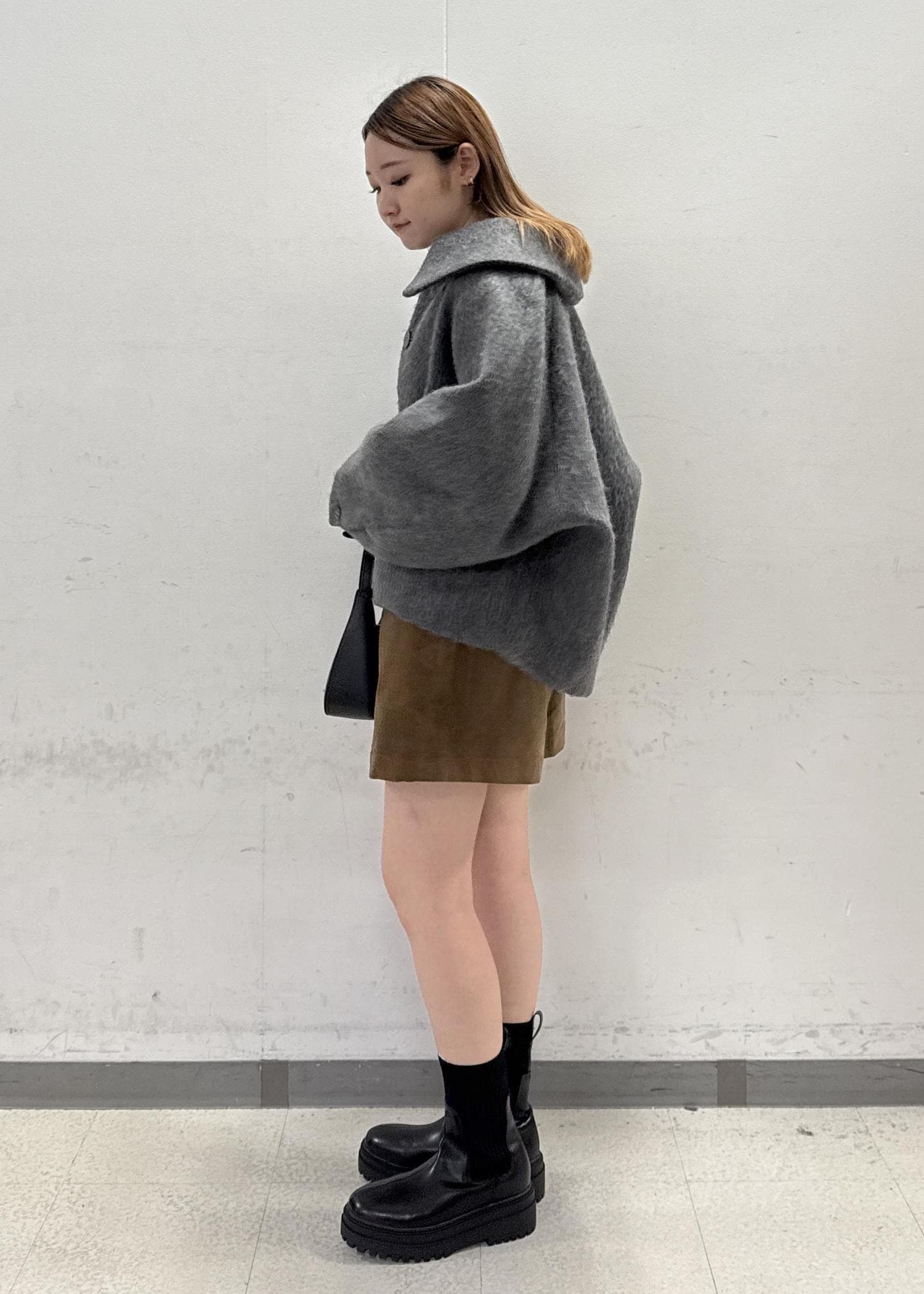 予約VIS【アウター総選挙1位】ビッグカラーモモンガシャギーショートコートグレー / S¥10,989レビュー袖部分もゆとりがあるので、厚手のニットなどを着てもごわつかないです!