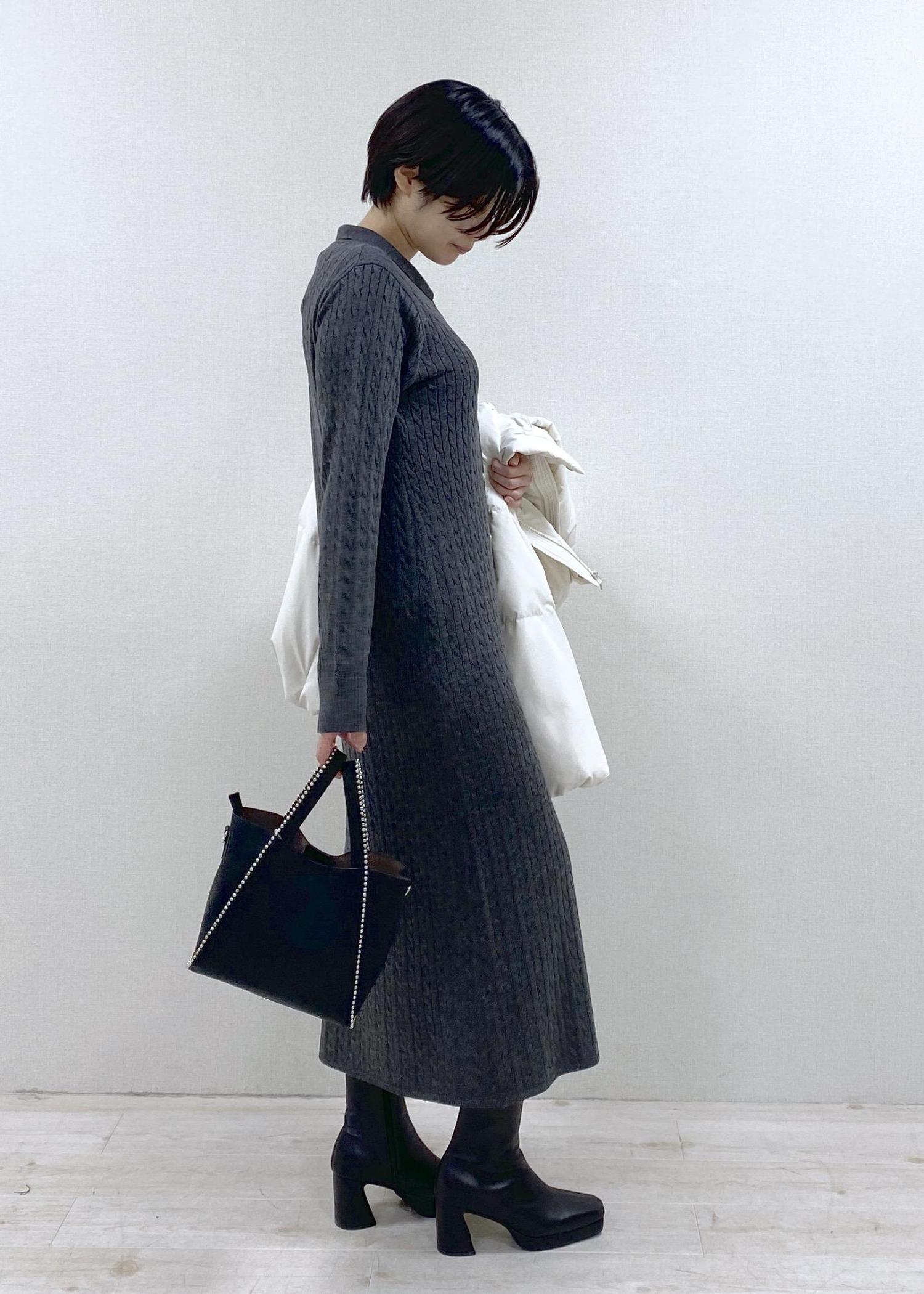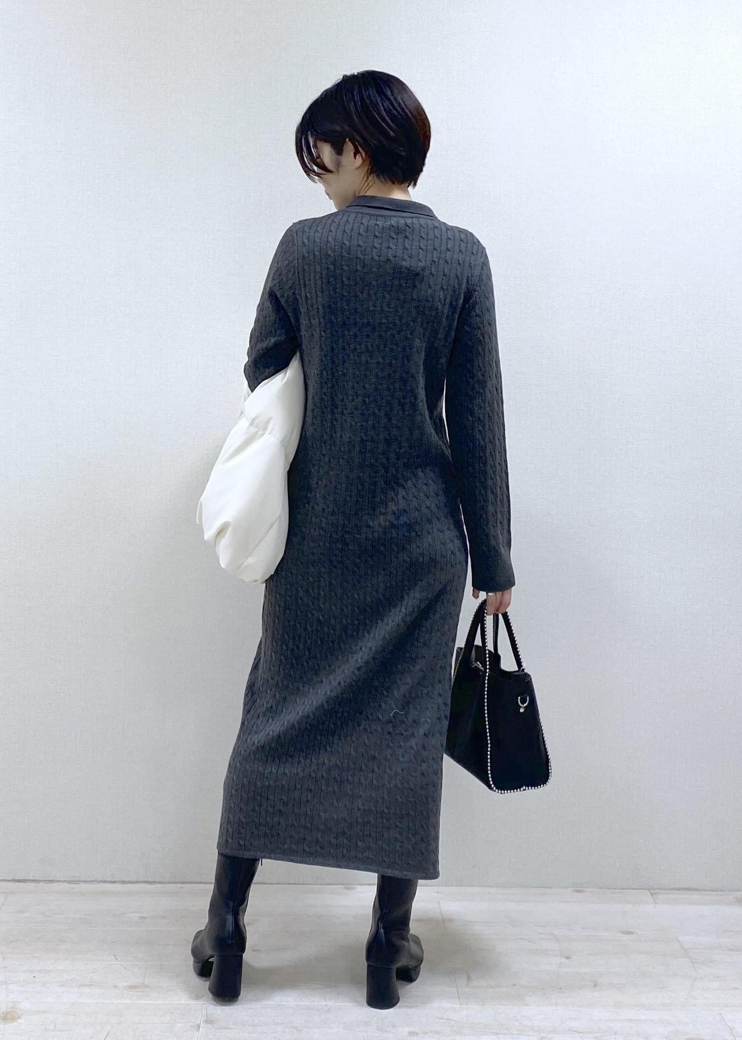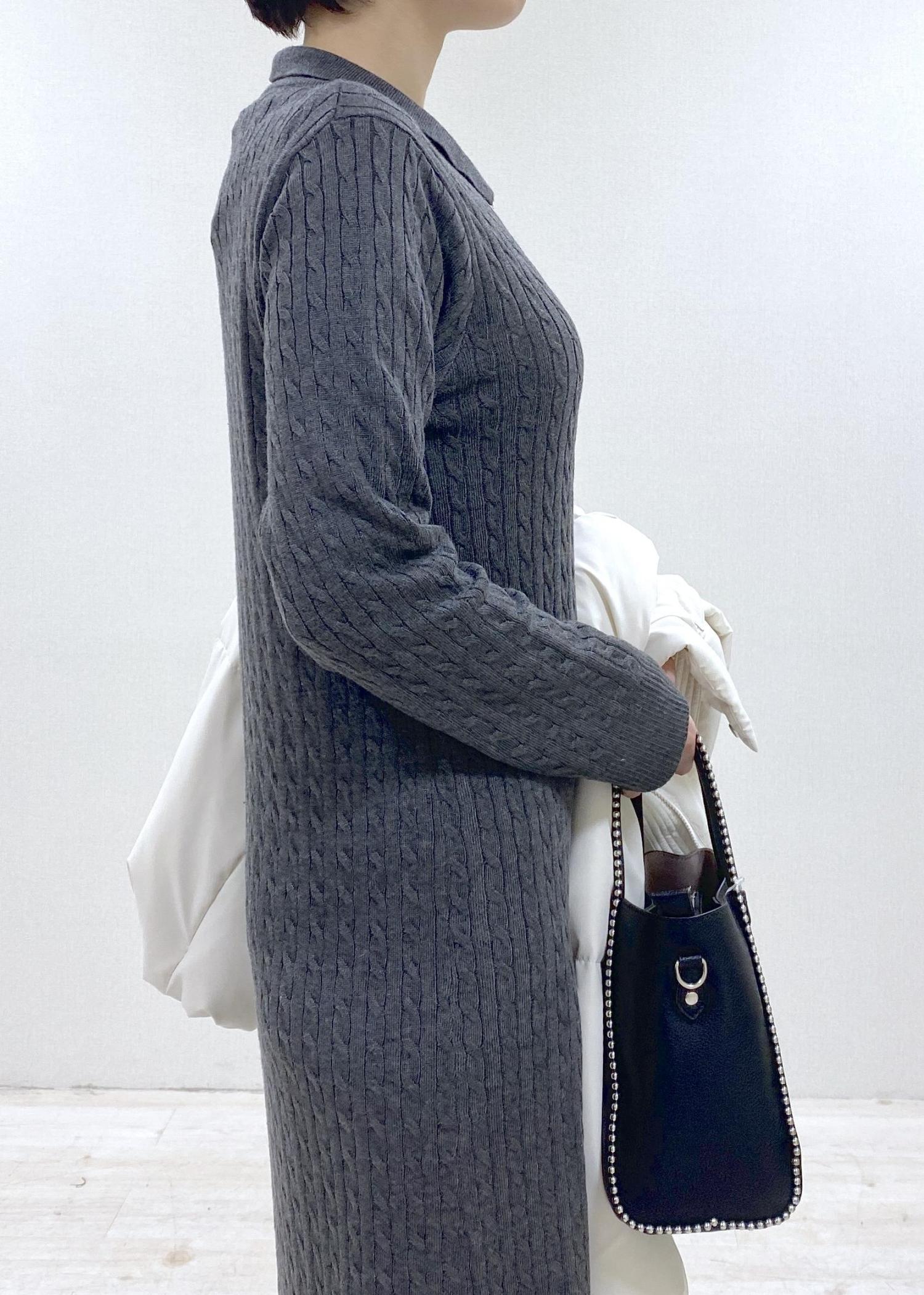 VIS【POLO BCS】VIS別注ニットワンピースチャコール / F¥9,900レビューポロ襟が可愛いです。
