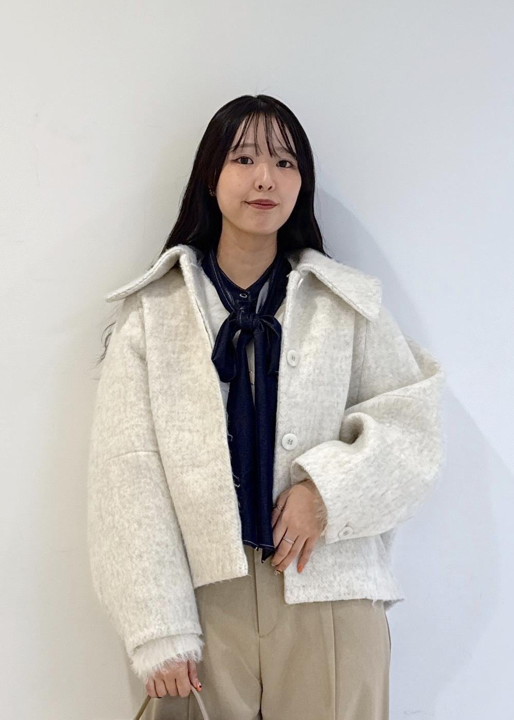 予約VIS【アウター総選挙1位】ビッグカラーモモンガシャギーショートコートオフホワイト / S¥10,989レビューとにかく軽くて暖かく、毛がたっぷり入っている分かなり防寒効果も期待できます。SとMでかなり見た目が変わります。158cm骨格ウェーブで私はSサイズを着用しています。肩幅が気になる方などはスッキリ見せるためにSサイズを選んだ方がいいと思います