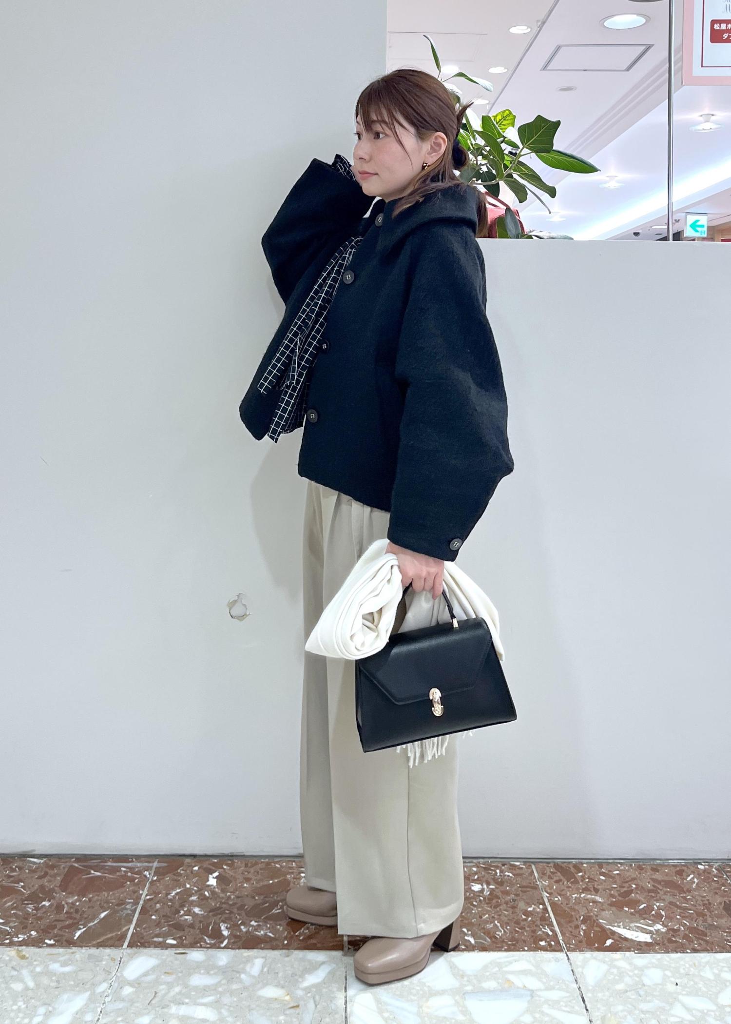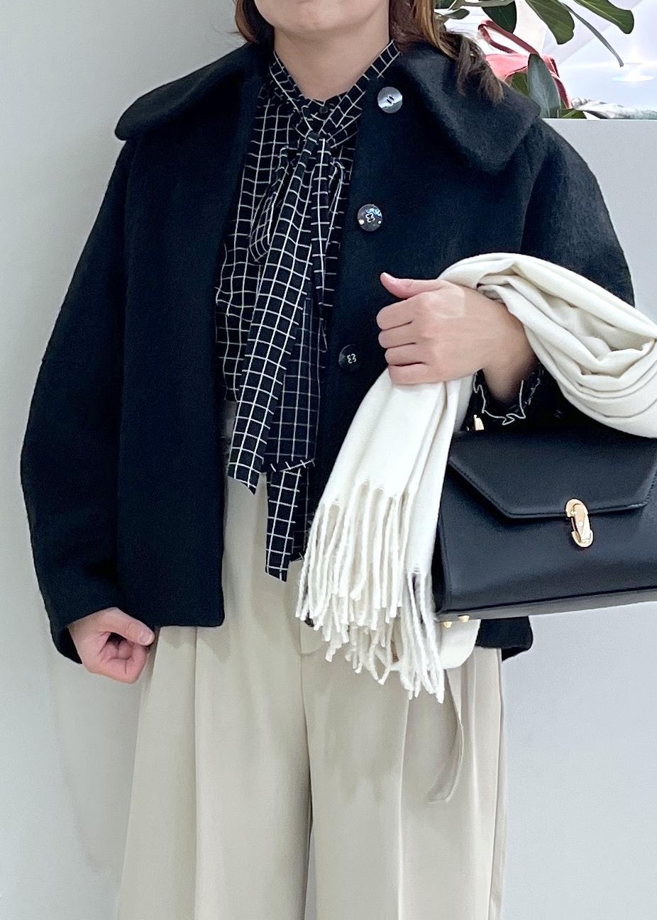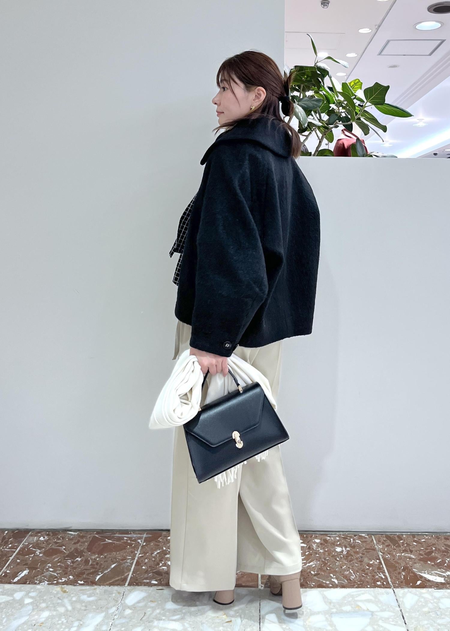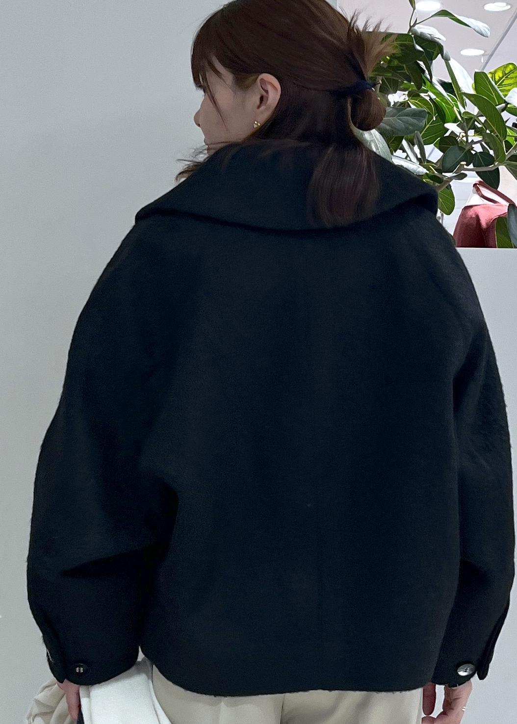 大きめなエリとシャギーの素材がマッチして可愛いらしいコートです。丈はやや長めのショート丈なので甘くなりすぎず、通勤通学などにも便利です◎