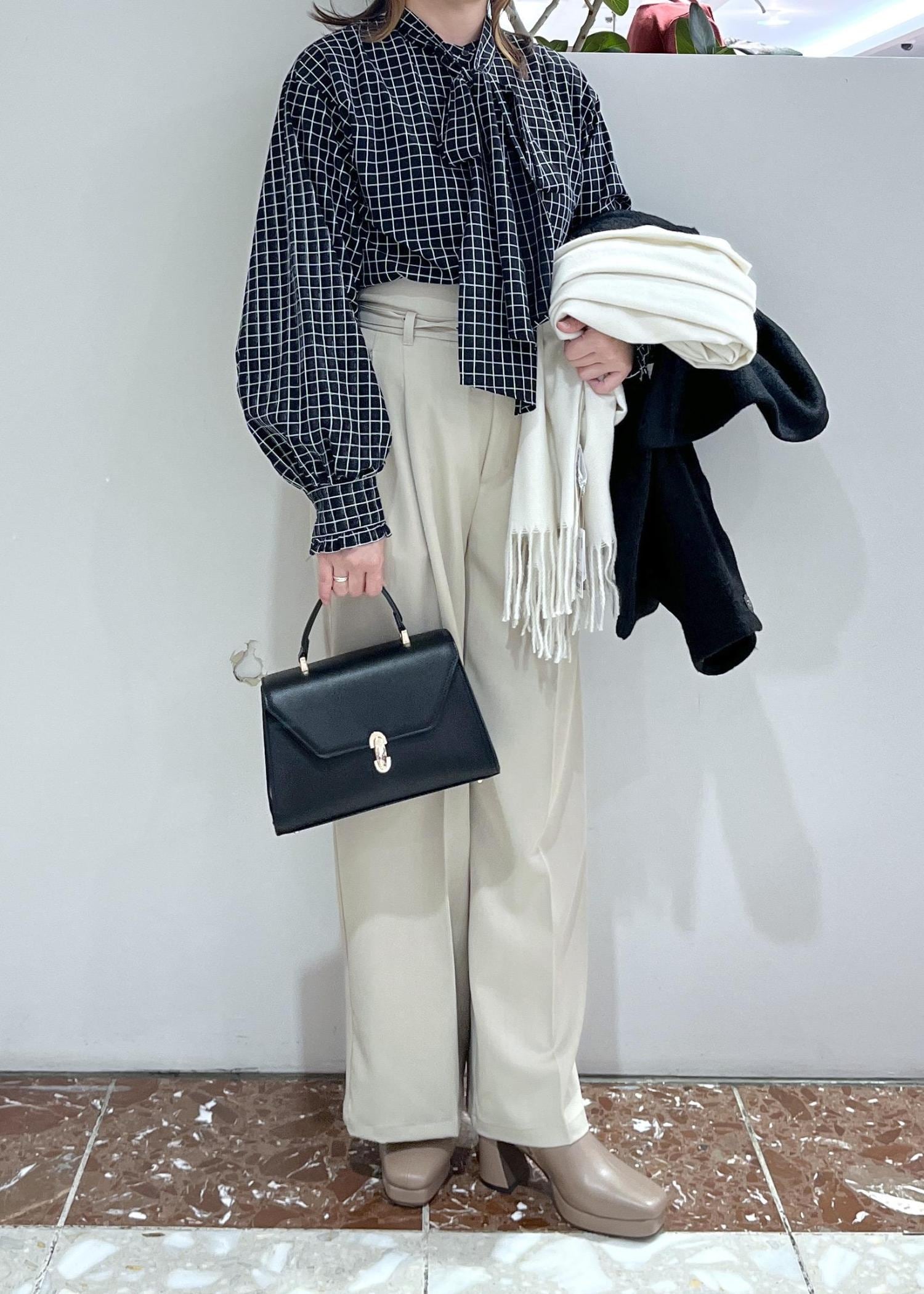 VISチェック&デニムアソートボウタイリボン付きスタンドカラーシャツブラック系 / F¥6,589レビューボウタイブラウスはリボンも取り外したりアレンジ出来て便利です。