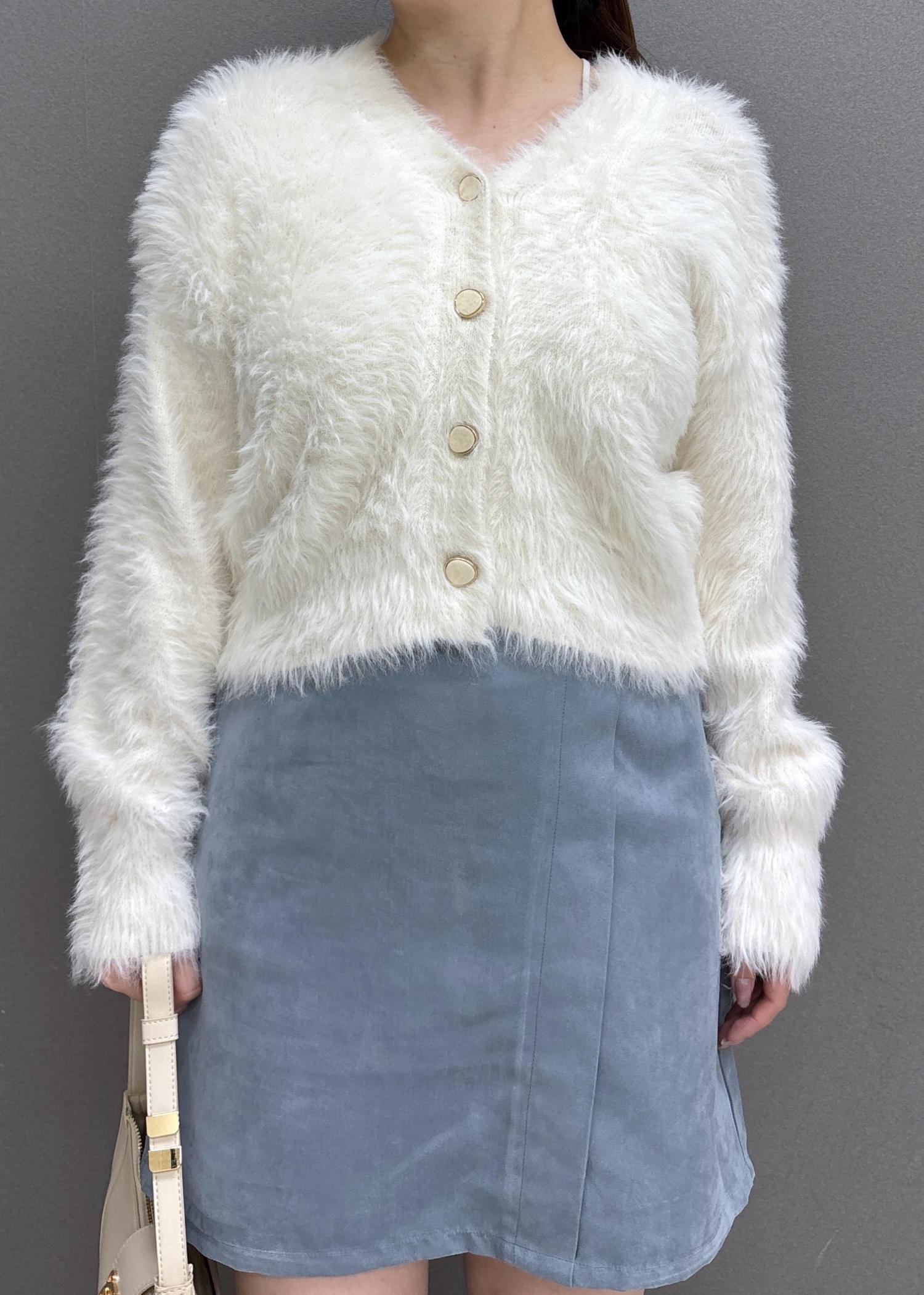 VISラビットファーVネックカーディガン/イージーケア・WEB限定カラーオフホワイト / F¥5,929レビュー毎年大人気のカーディガンにVネック仕様が登場♩顔まわりがスッキリ見えて、骨格ストレートさんにもおすすめ!ふわふわした柔らかい素材でチクチク感はありません!160㎝だと腰まわりは隠れる着丈で、インしなくても着用できました♩