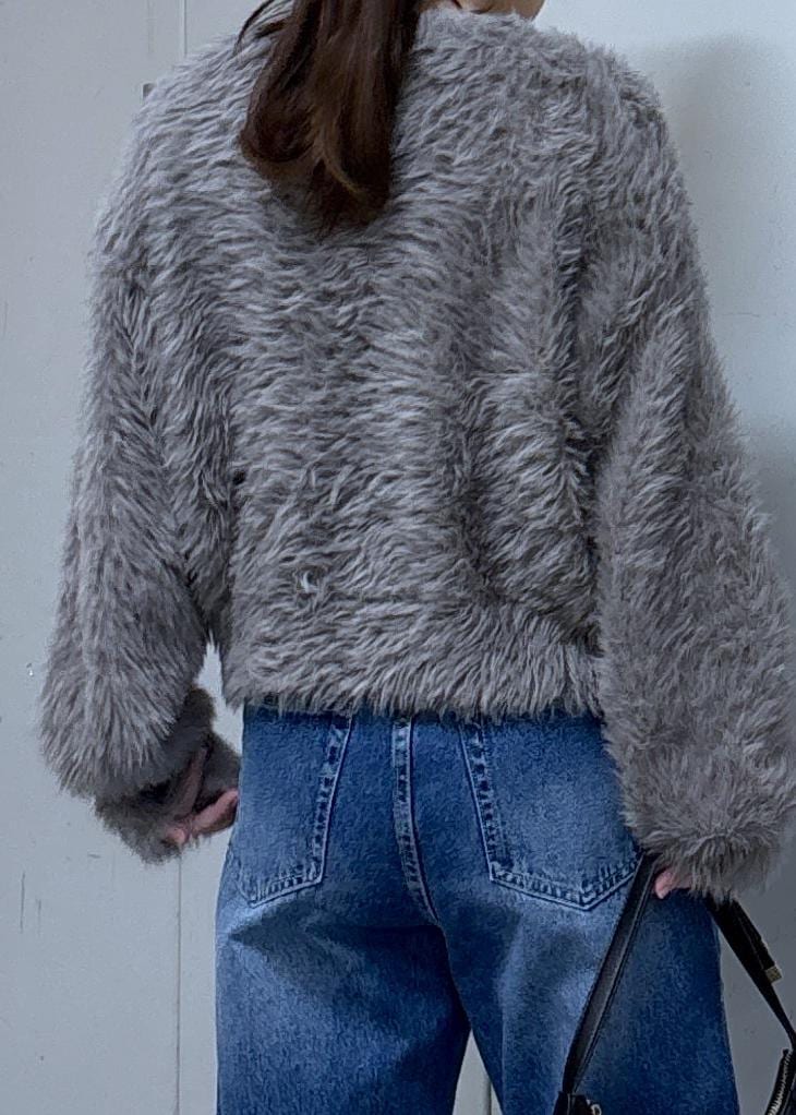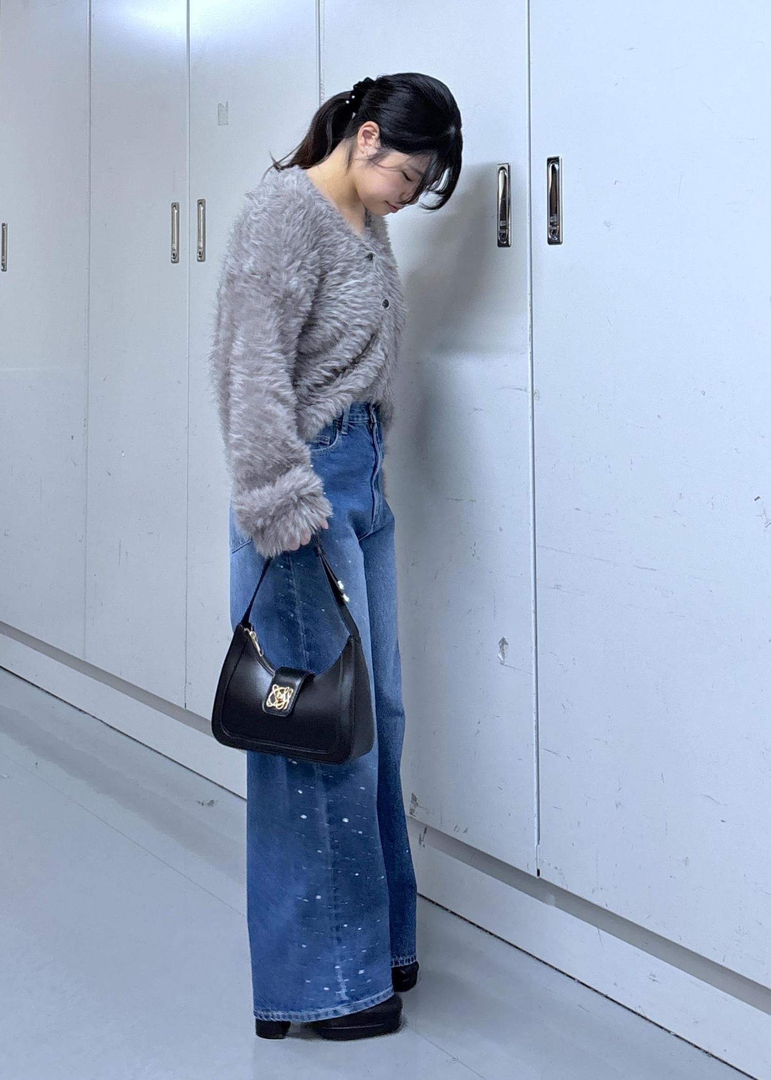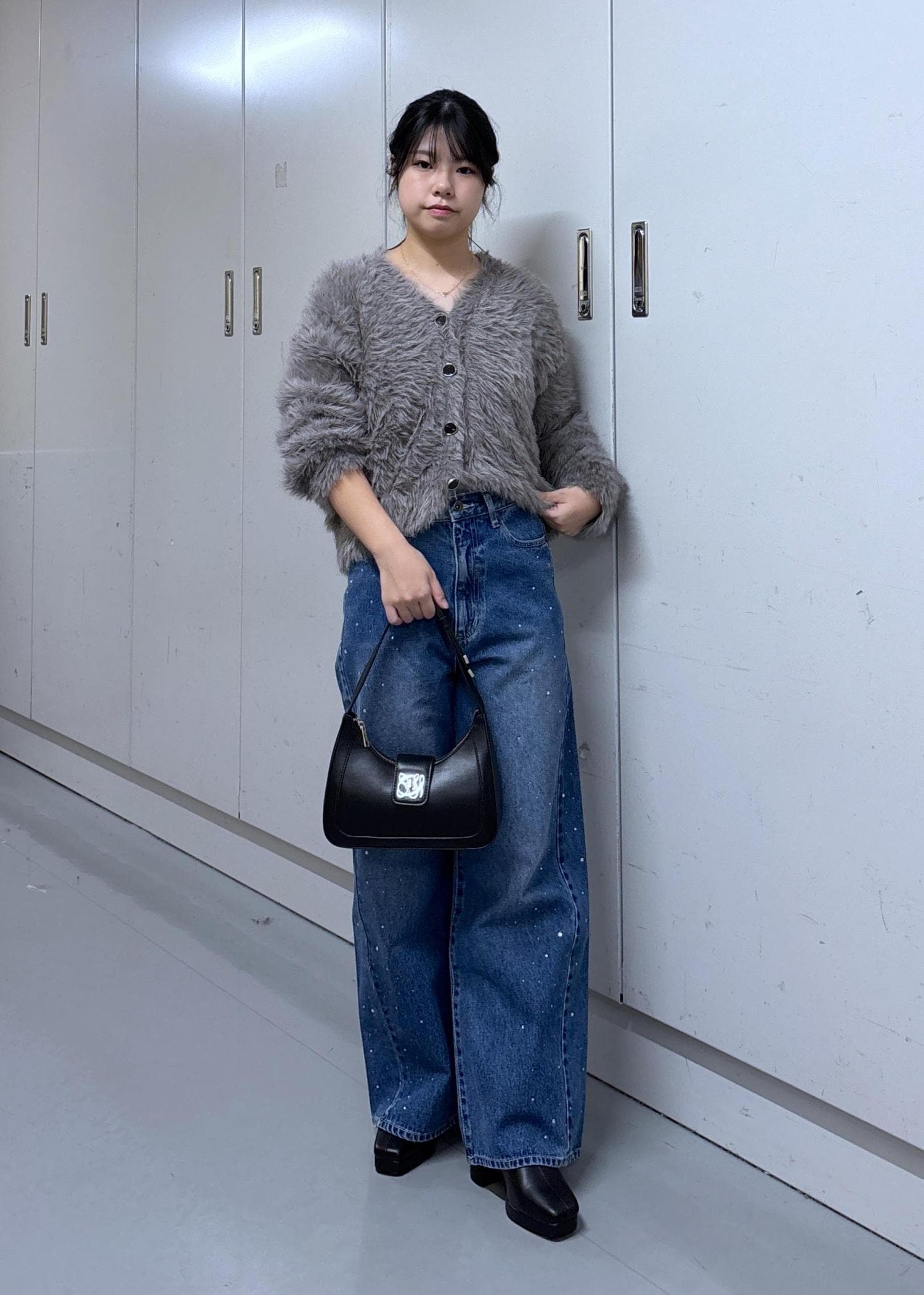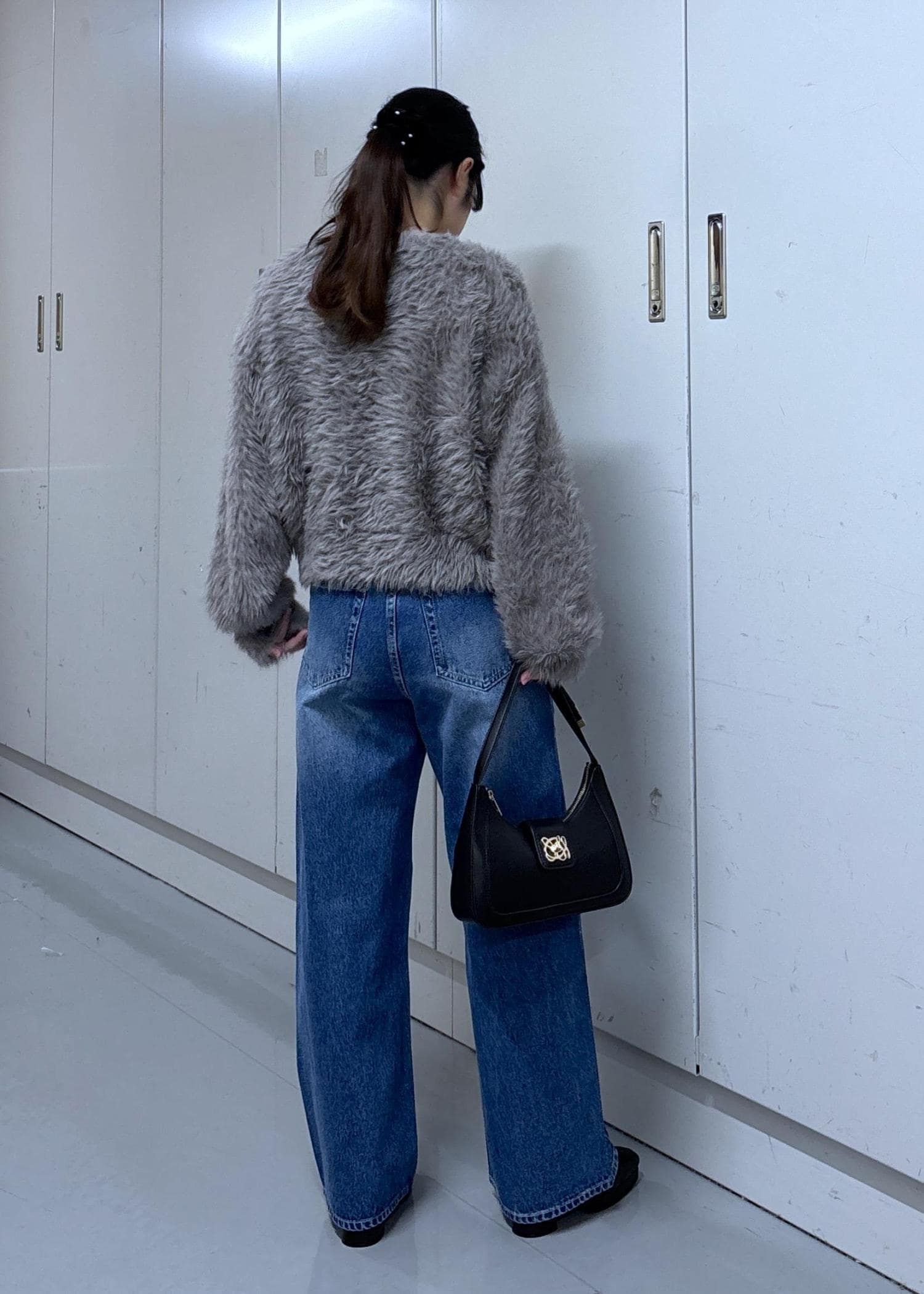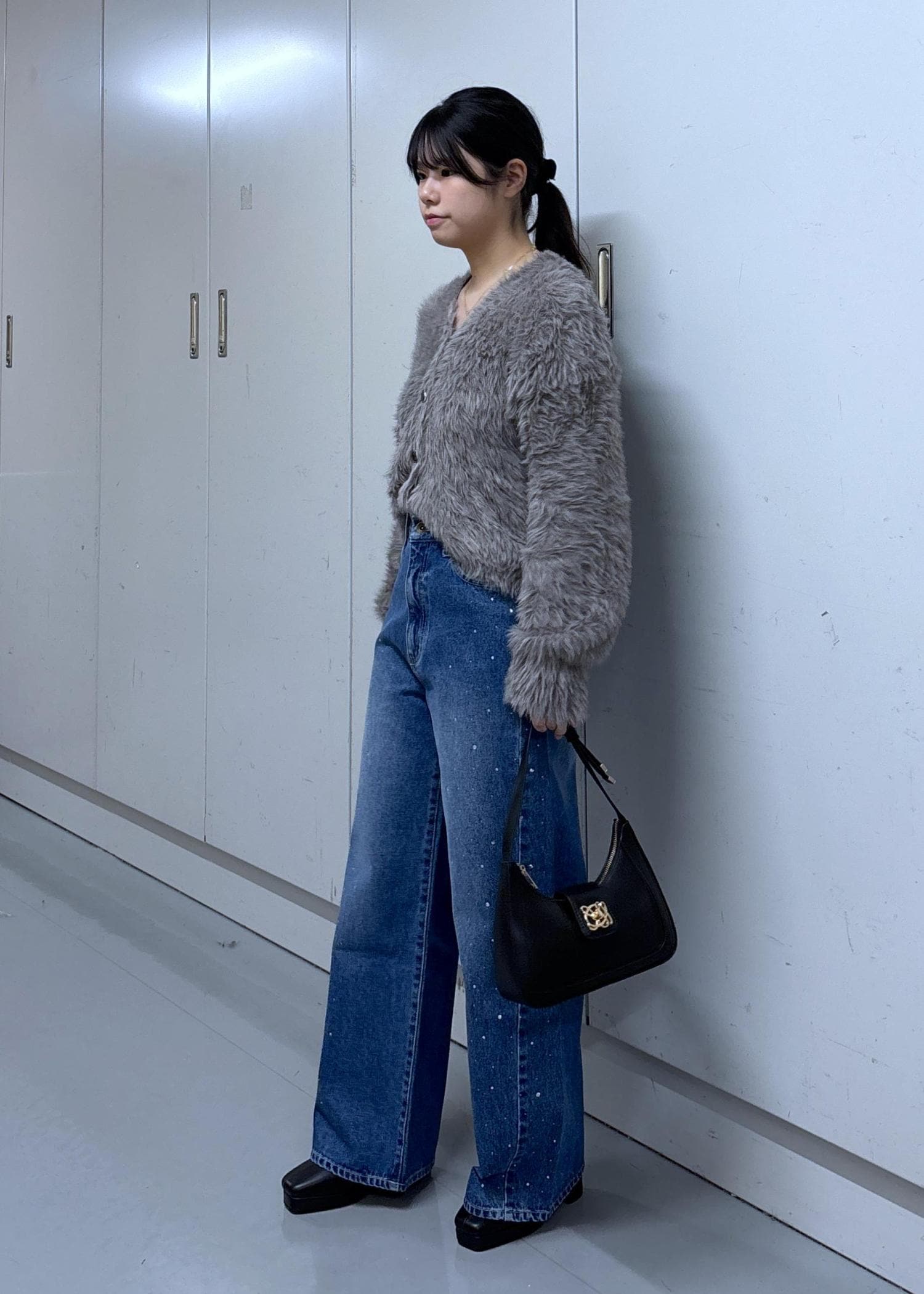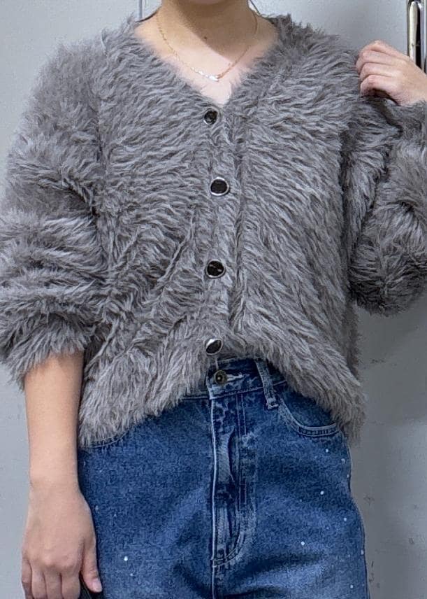 VISラビットファーVネックカーディガン/イージーケア・WEB限定カラーグレー系 / F¥5,929レビュー153cmでお腹が隠れるくらい、袖は少し長めです。