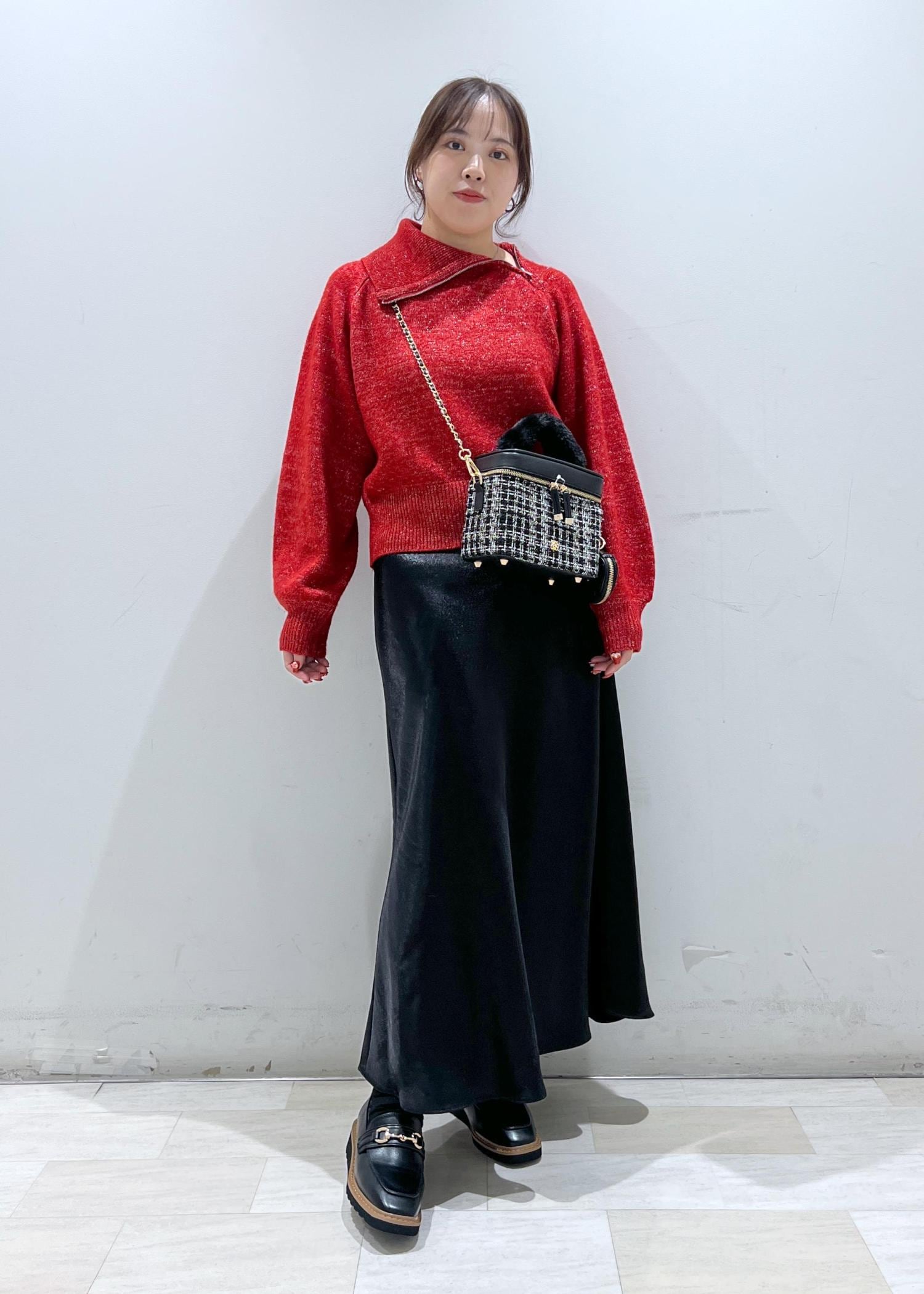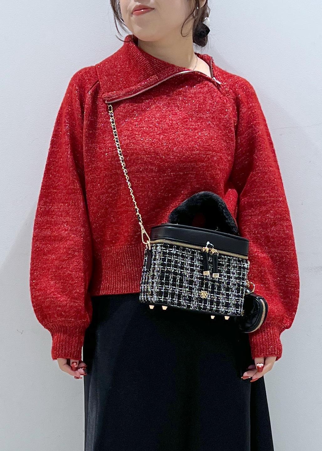 VISフロントジップニットプルオーバー/イージーケアレッド系 / F¥6,589レビュー首元のアシメジップとニットに織り込まれているラメが目を引くデザインニットです!