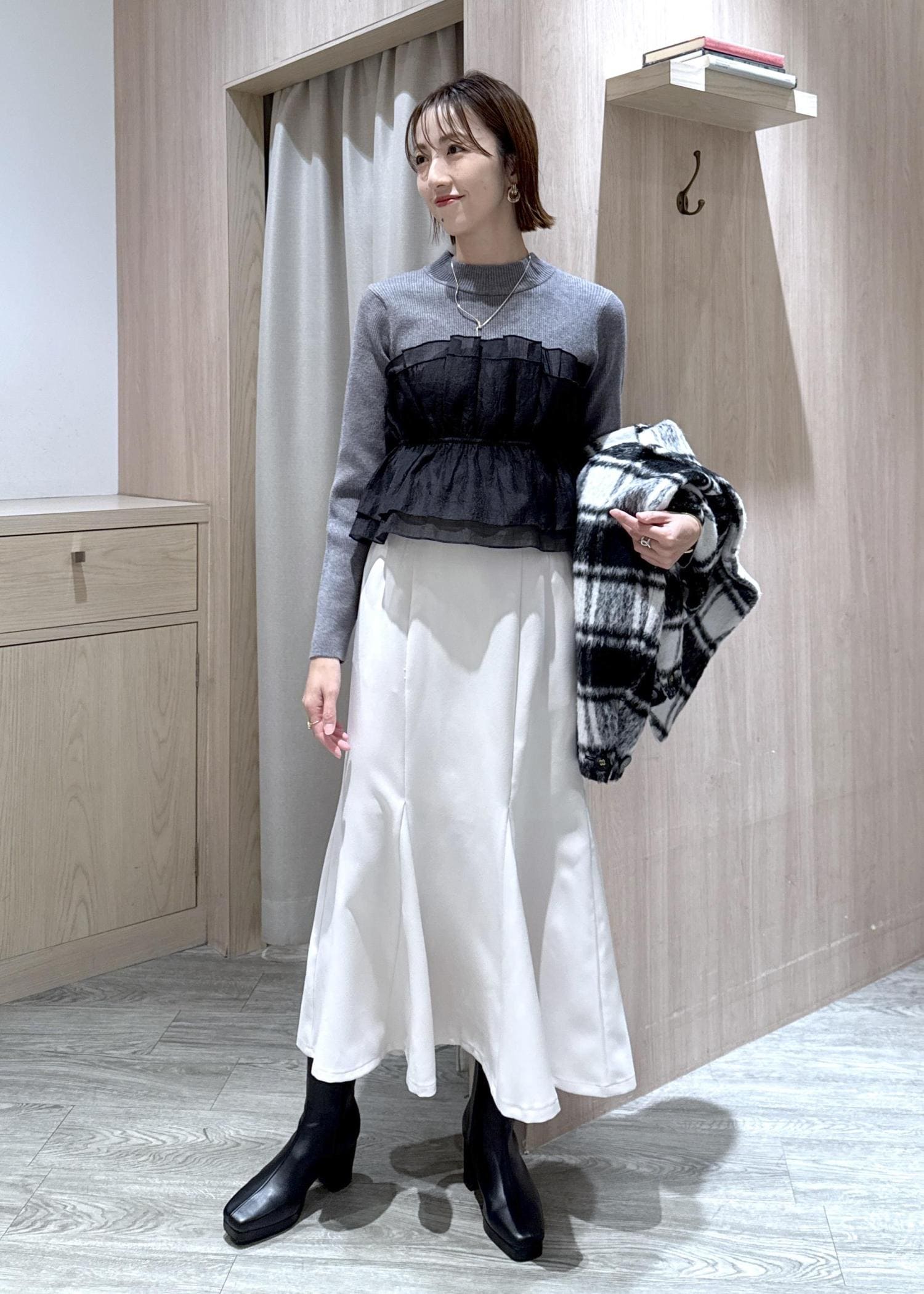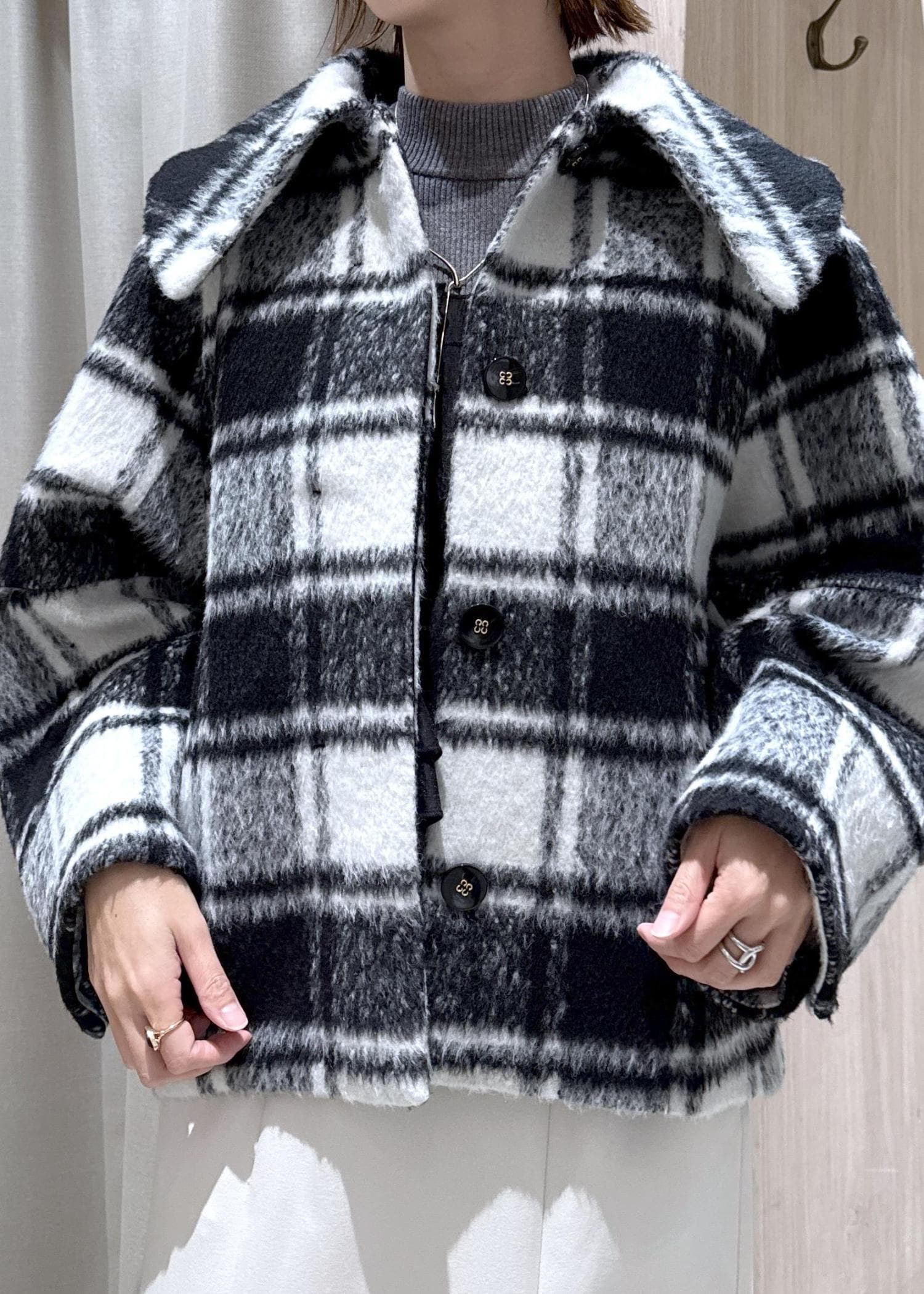 大人気のモモンガショートコートにKariさんコラボのチェック柄が登場しました!