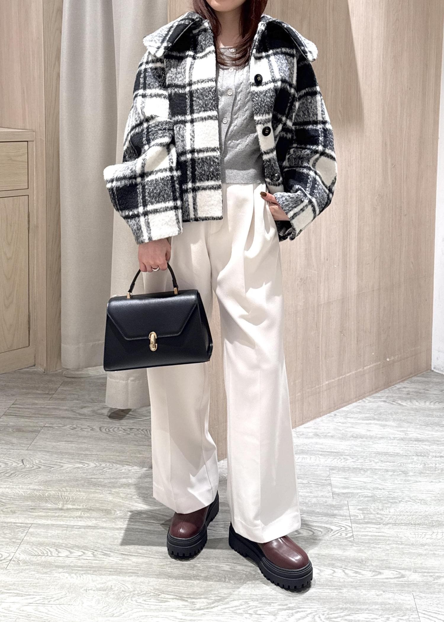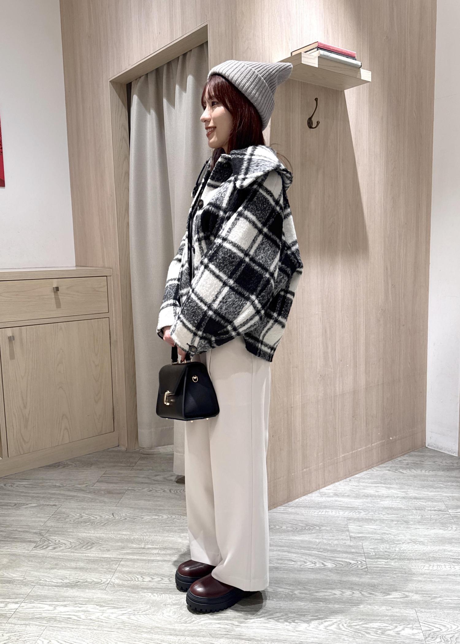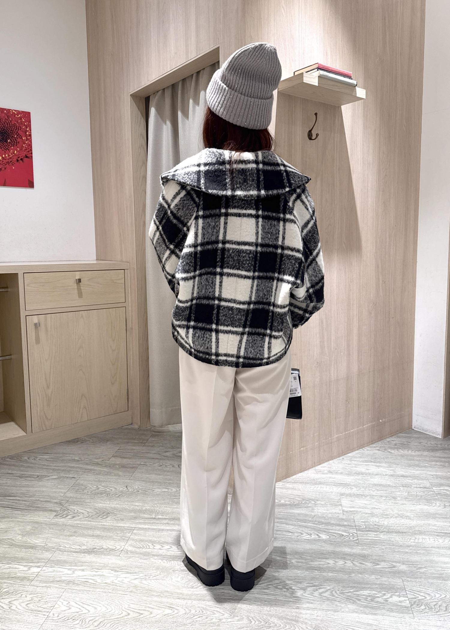 ヒップにかかる丈感でした。襟が大きいため小顔効果ももたらしてくれます✨横幅はゆったりしているため、中に分厚めのトップスを着ても着膨れしないです! -