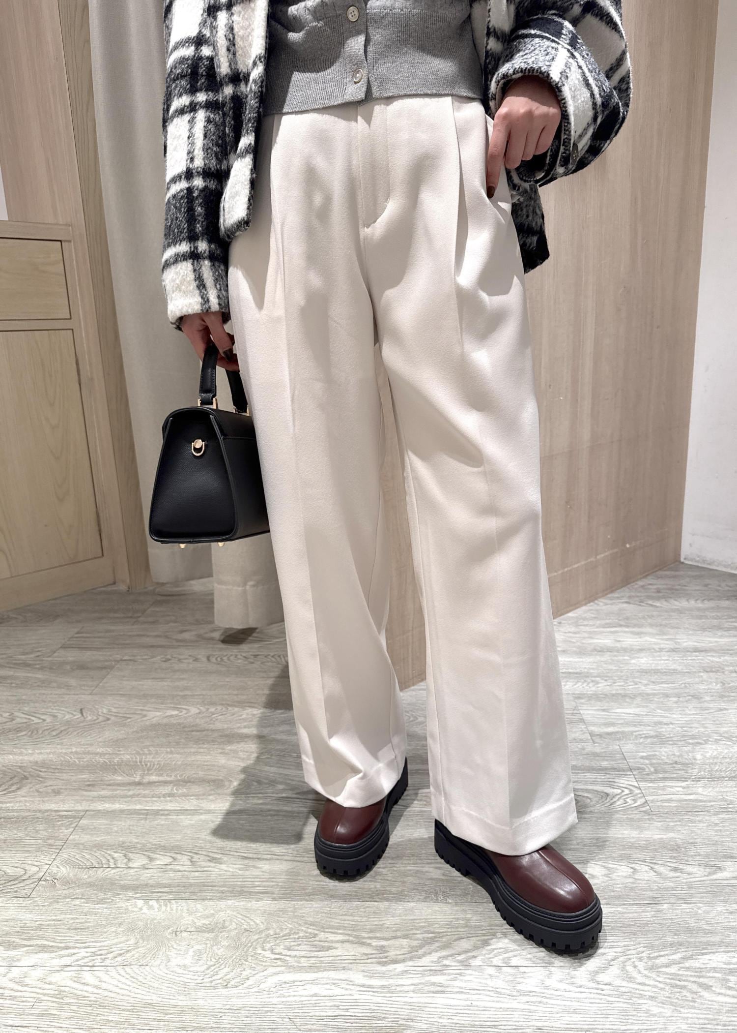 VIS【美easy】ウーリッシュワンタックワイドパンツ【セットアップ対応/洗える】オフホワイト / S¥6,589レビュー身長157cm / Sサイズ着用 / 両サイドのボタンでウエストを縮めています。