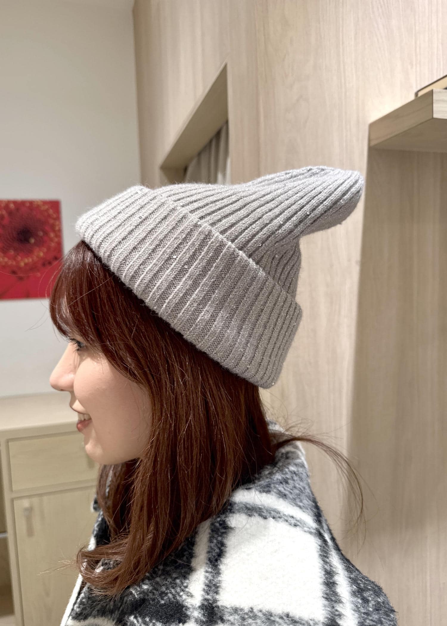 VISスパンコールラメニット帽ライトグレー / F¥3,289レビューさりげなくスパンコールがキラッと光り華やかさをプラスしてくれます✨折り返しデザインでとても暖かいですよ!