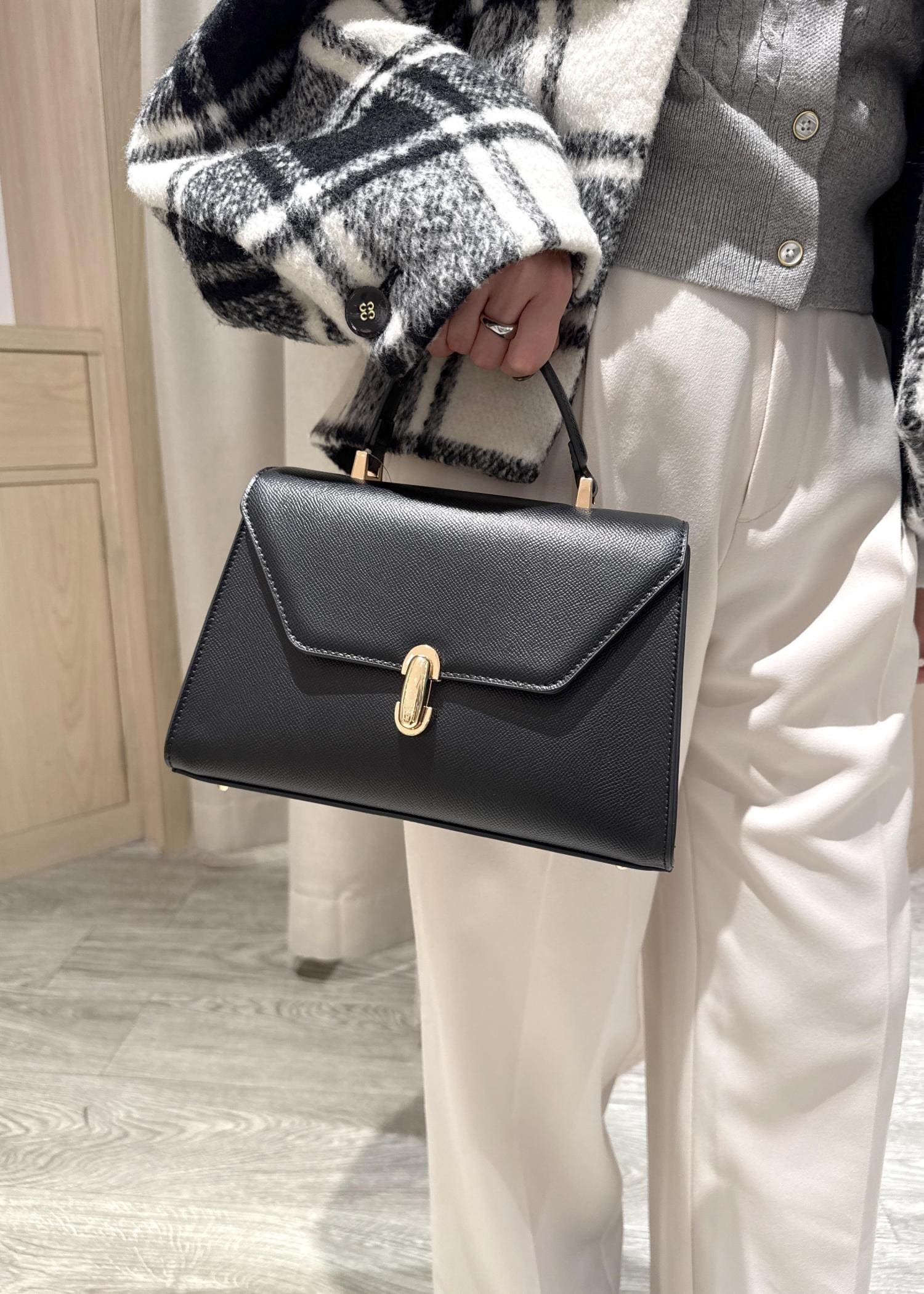 VIS楕円金具ワンハンドルバッグ/2WAYブラック / F¥7,909レビュー500mlペットボトルや長財布も収納可能です。傷が目立たない素材なのも嬉しいポイント◎程よいツヤ感の素材とフロントの金具が上品な印象を与えてくれます✨