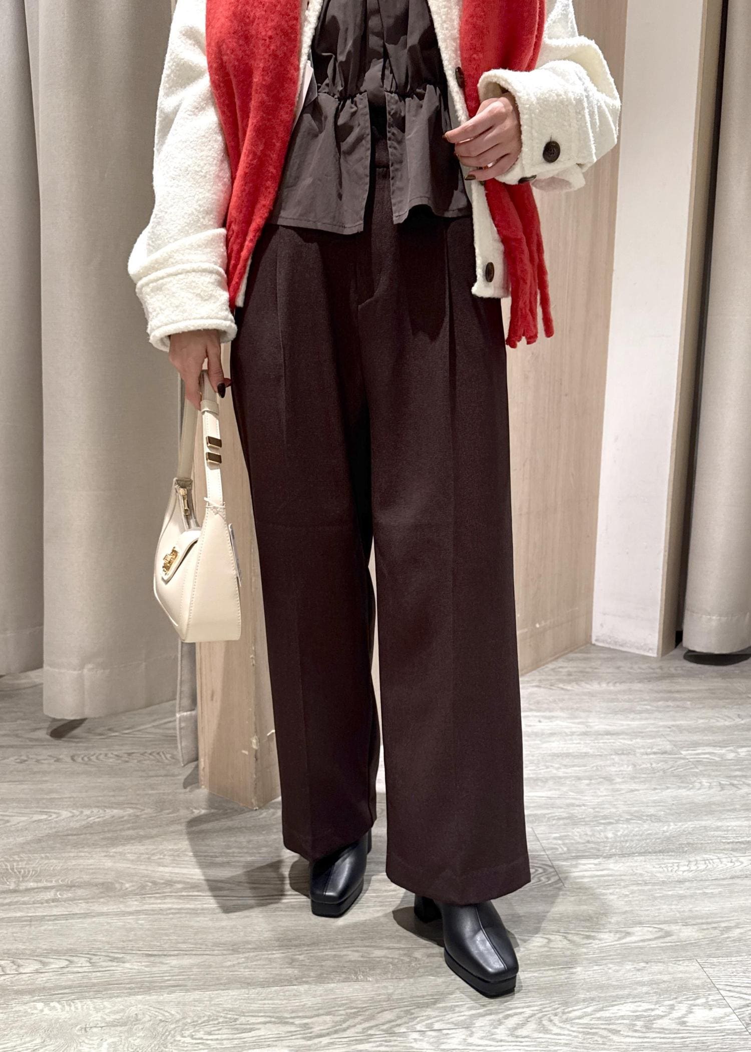 VIS【美easy】ウーリッシュワンタックワイドパンツ【セットアップ対応/洗える】ダークブラウン / S¥6,589レビュー身長157cm / Sサイズ着用 / 両サイドのボタンでウエストを縮めています。