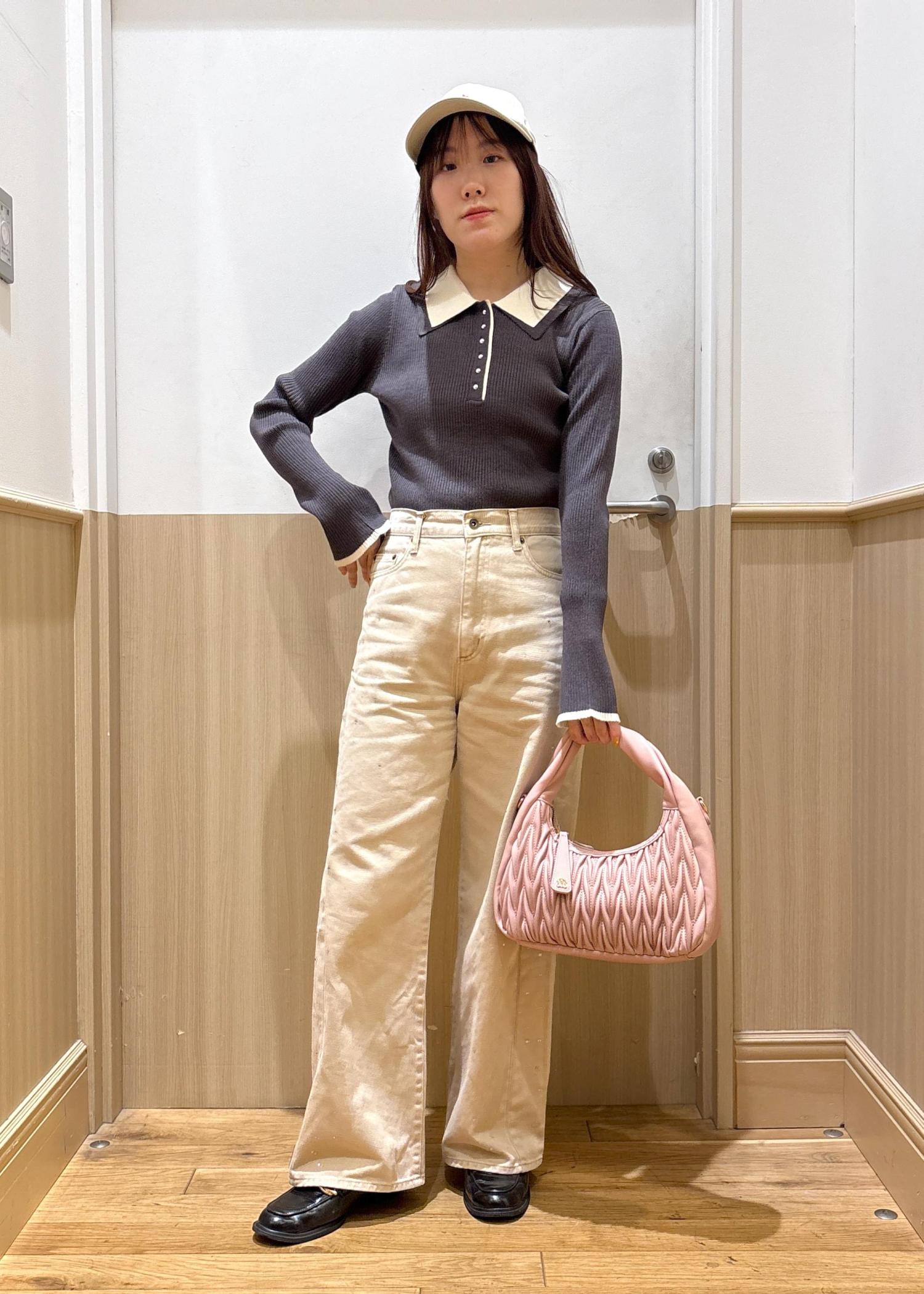 もたつきが無いシルエットなので、どんなボトムでも相性ですし、ある程度コンパクトめなアウターを羽織ってもかさばる感じはありません。 -