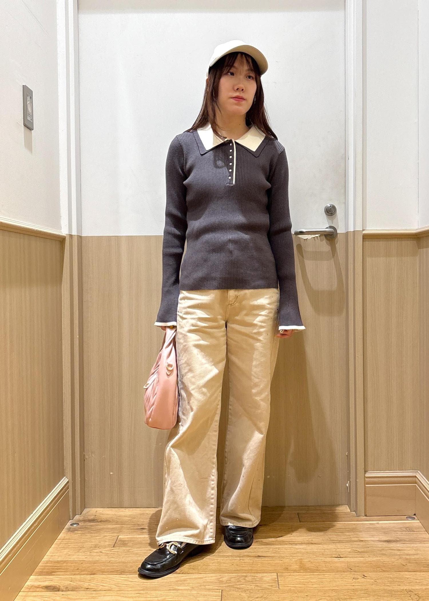 予約VISダブルカラーポロニットトップスチャコール / F¥5,929レビュー体のラインをスッキリ見せてくれる、美シルエットなリブ素材です。