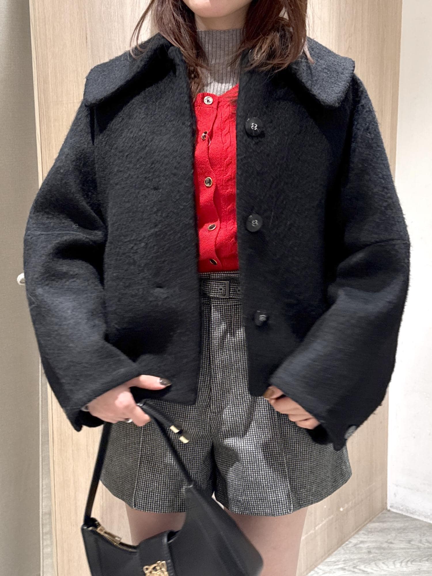 予約VIS【アウター総選挙1位】ビッグカラーモモンガシャギーショートコートブラック / S¥10,989レビュー身長157cm / Sサイズ着用