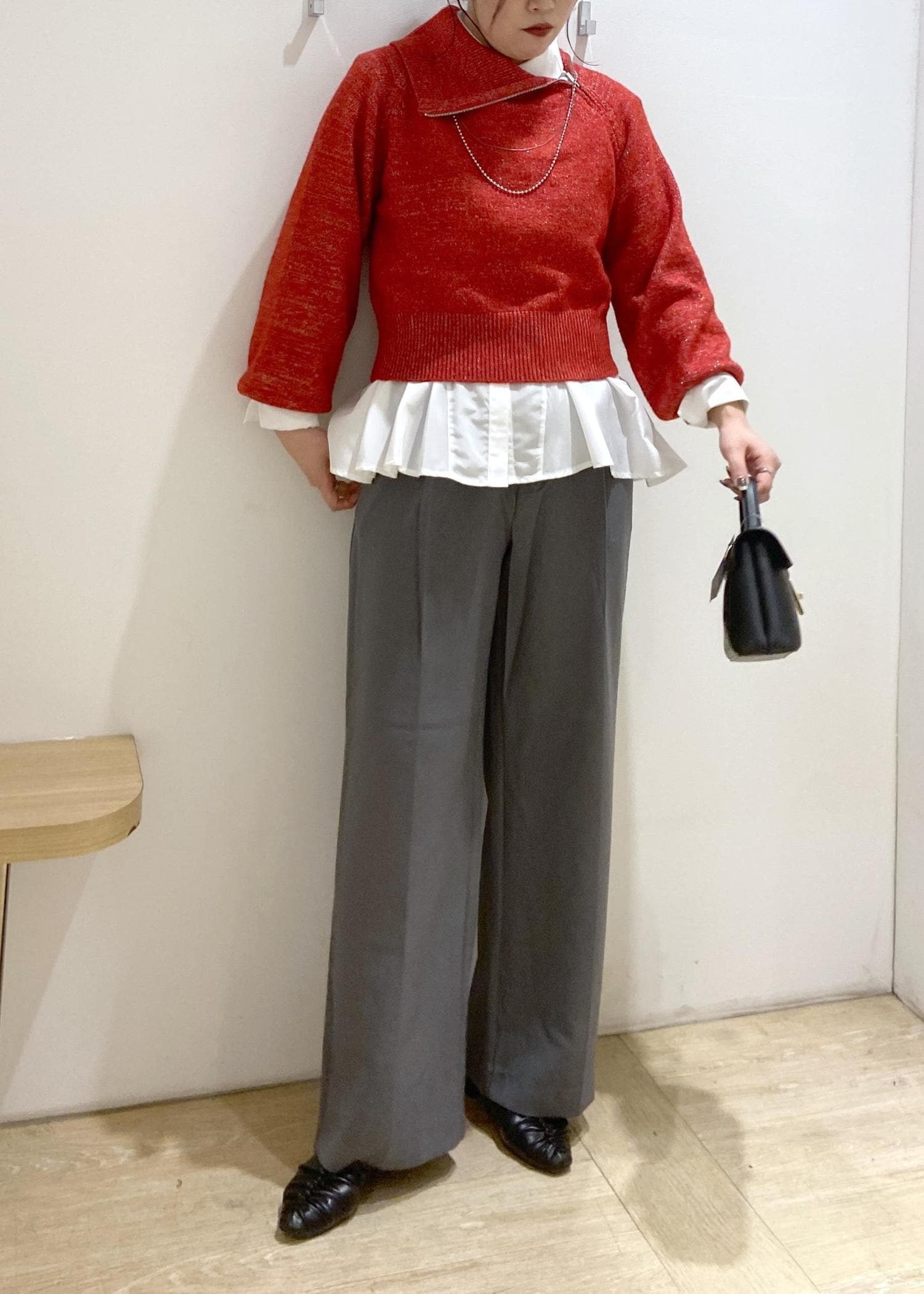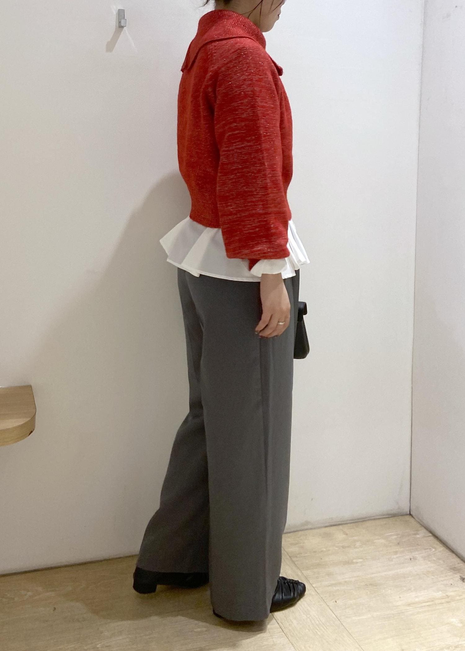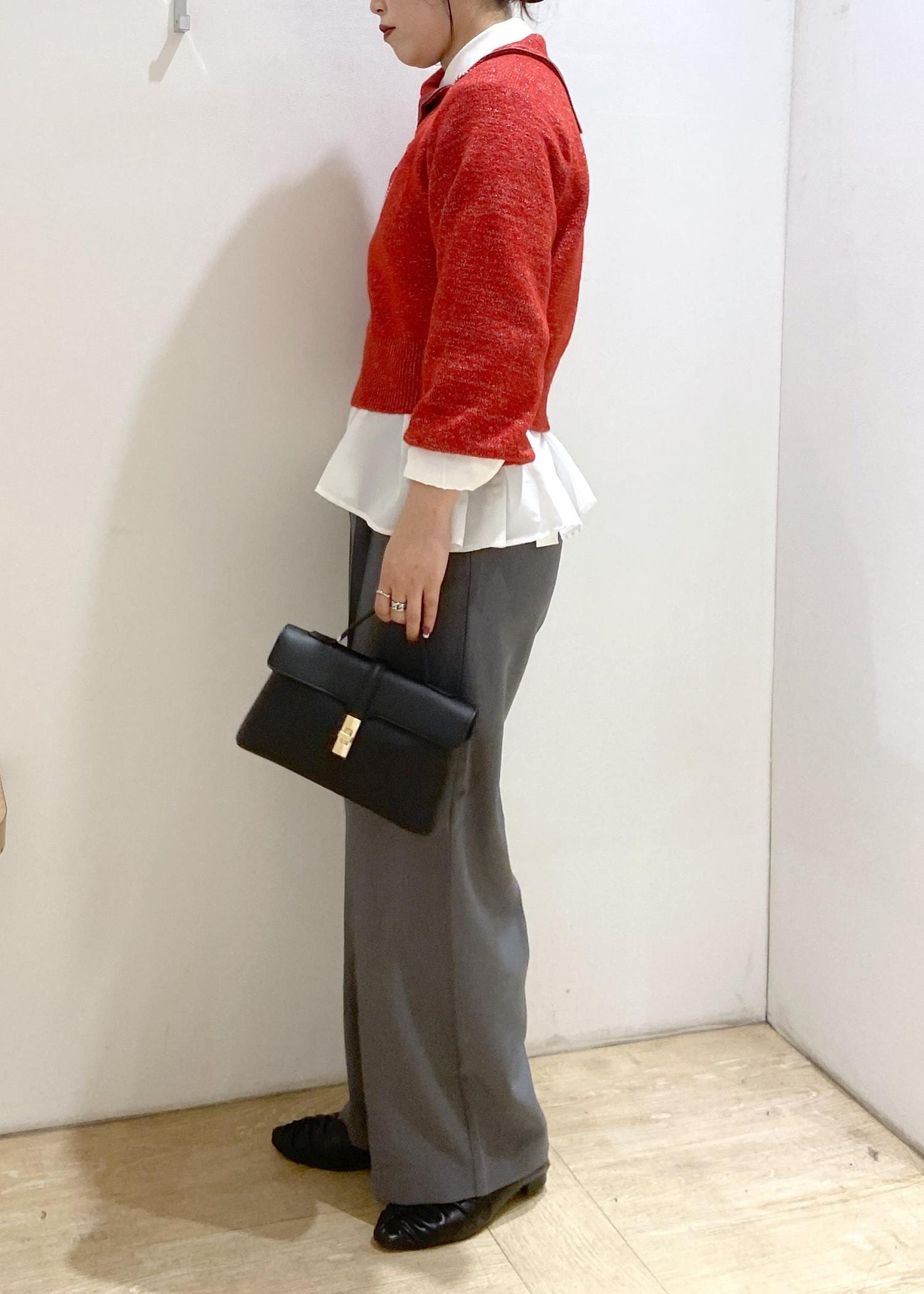 168cmだとヒップにかかる丈感で、高身長さんはワイドパンツと合わせてもバランスがとりやすいです。