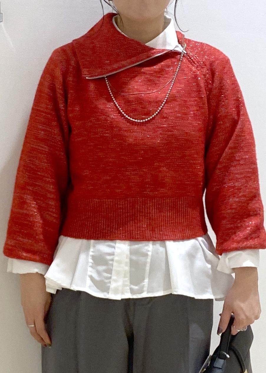 VISフロントジップニットプルオーバー/イージーケアレッド系 / F¥6,589レビューラメ入りですが、チクチク感なく着られました。