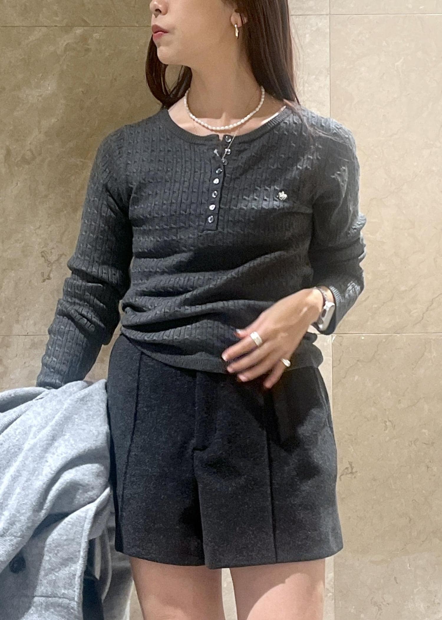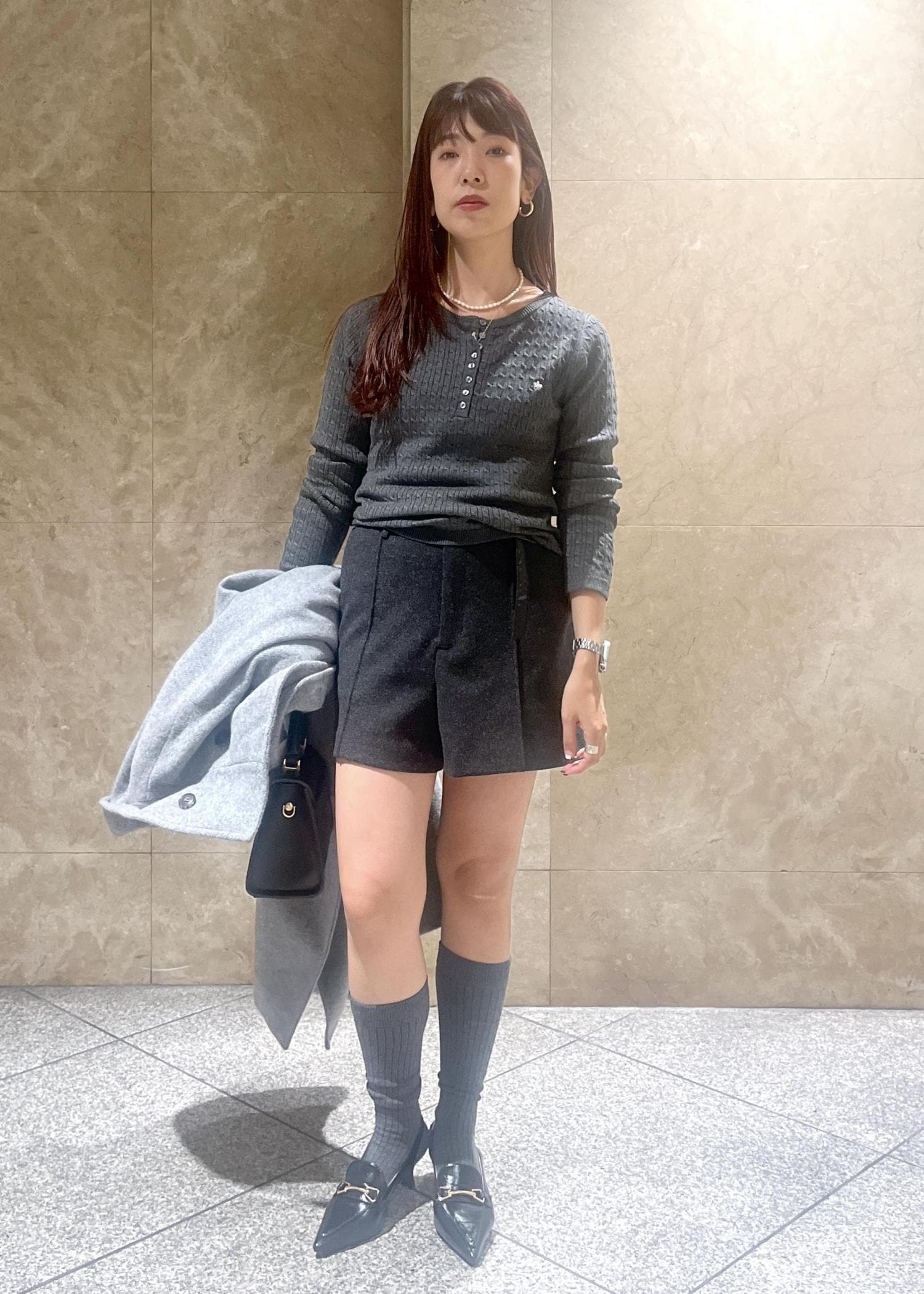 VIS【POLO BCS】VIS別注ヘンリーネックミニケーブルニットトップスチャコール / F¥6,600レビュー身長158cm、着丈は腰あたりまでのすっきりとコンパクトな丈感。