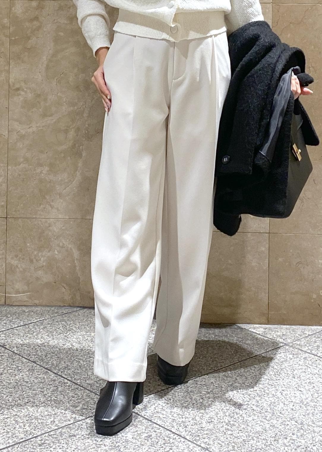 ウエストのサイドの所にボタンが付いており、サイズ調節ができるアイテムです!タックが入っており脚長効果抜群です◎ -