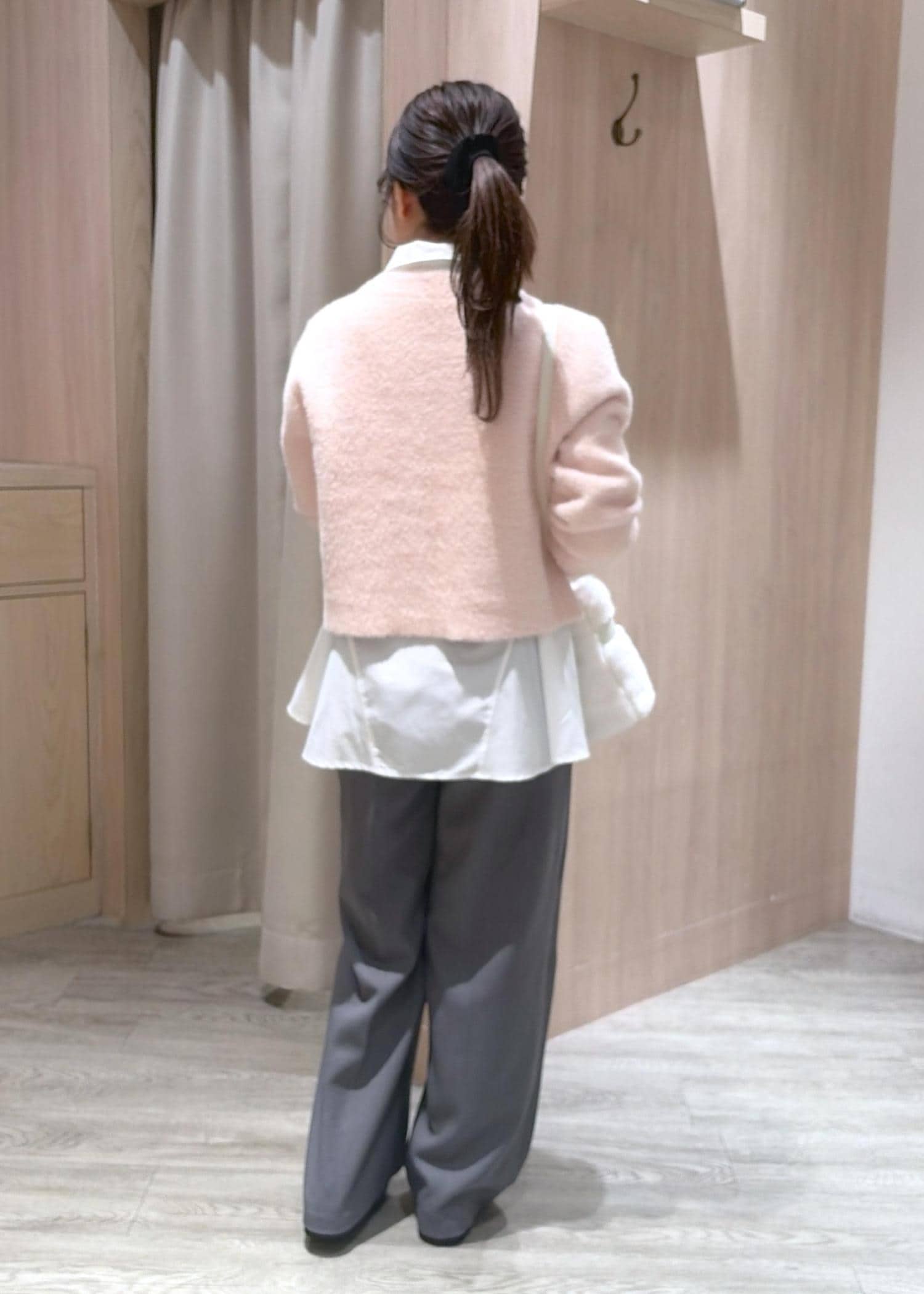 VIS接結ミニフェザーニットジャケットカーディガン/一部WEB限定カラーピンク系 / F¥6,919レビュー腰にかかるくらいのコンパクトな丈感のカーディガン♪