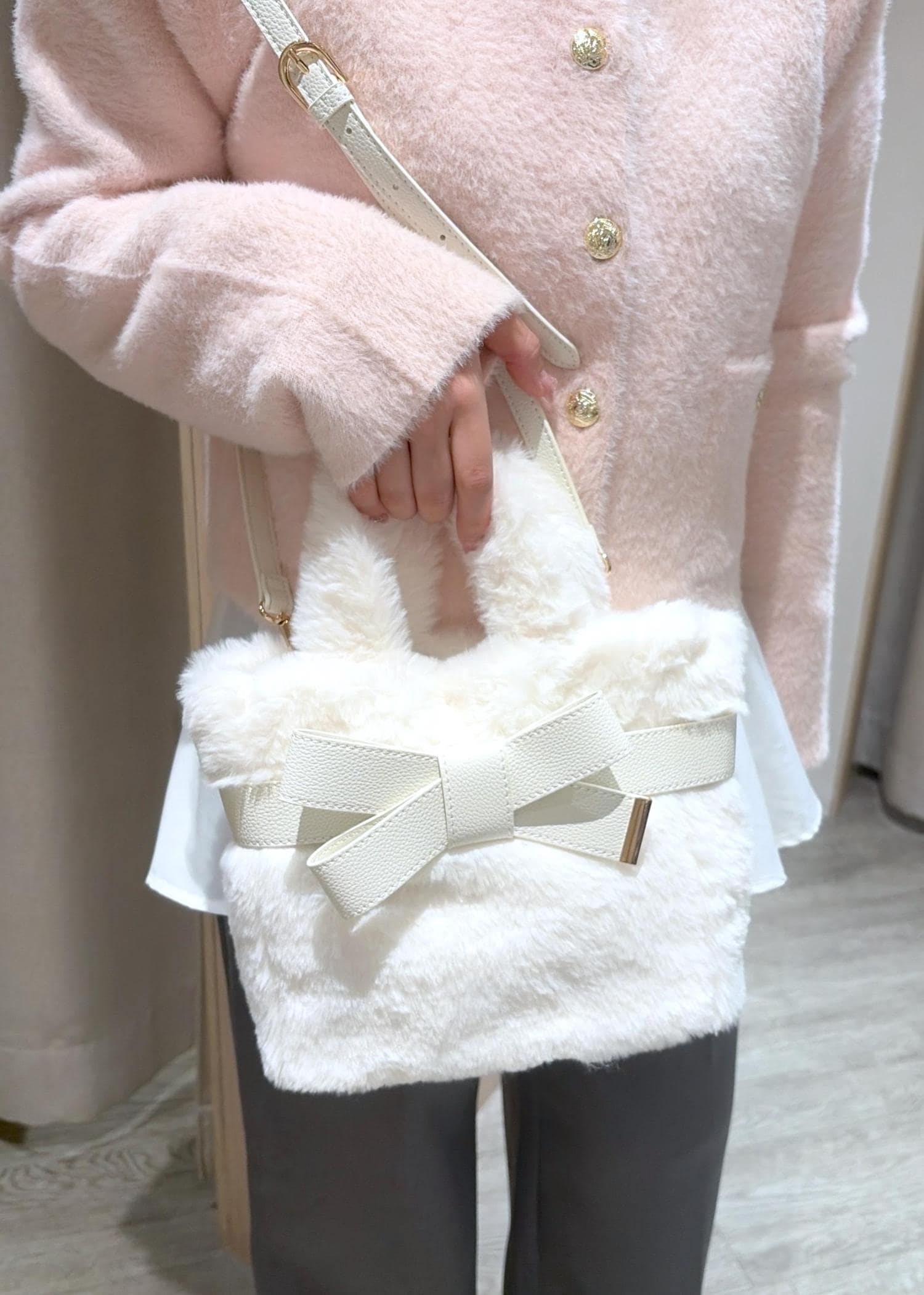 VIS【2WAY】ファーリボントートバッグキナリ / F¥6,919レビューファー×リボンの可愛らしいバック♪