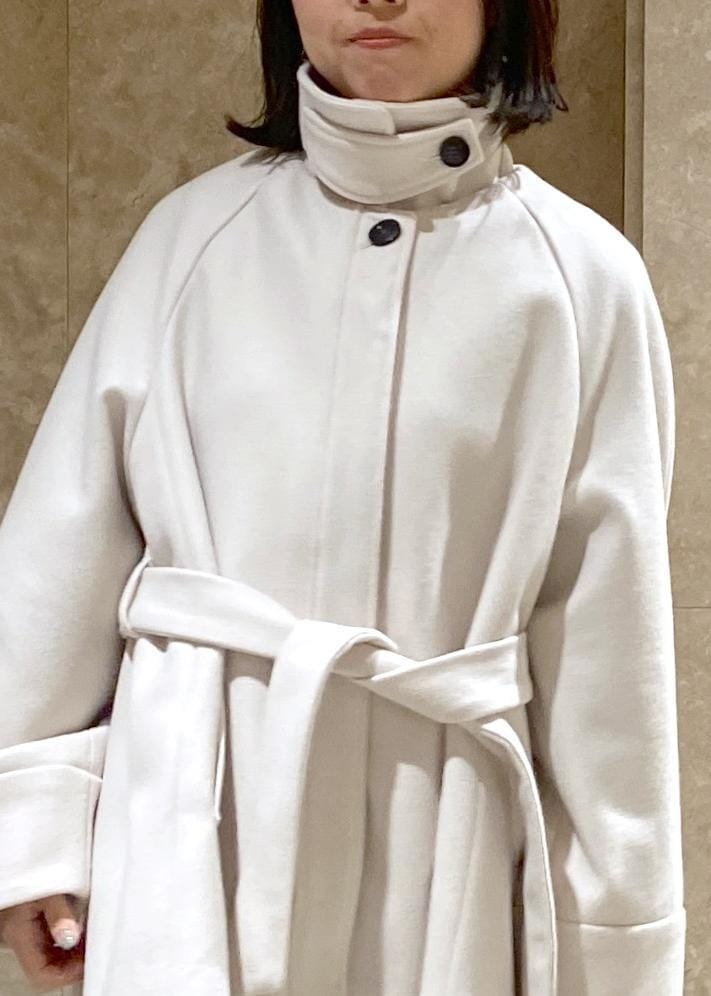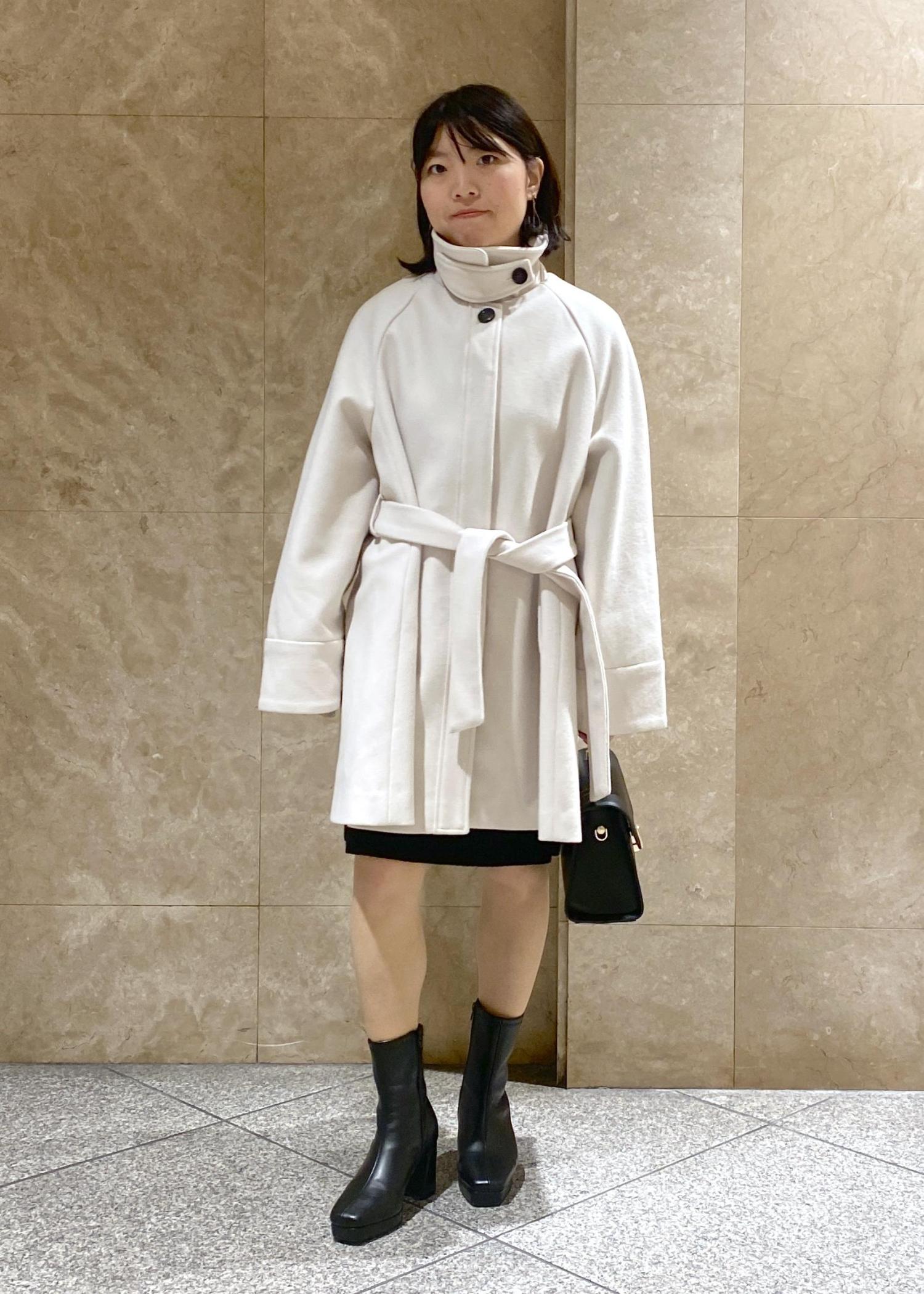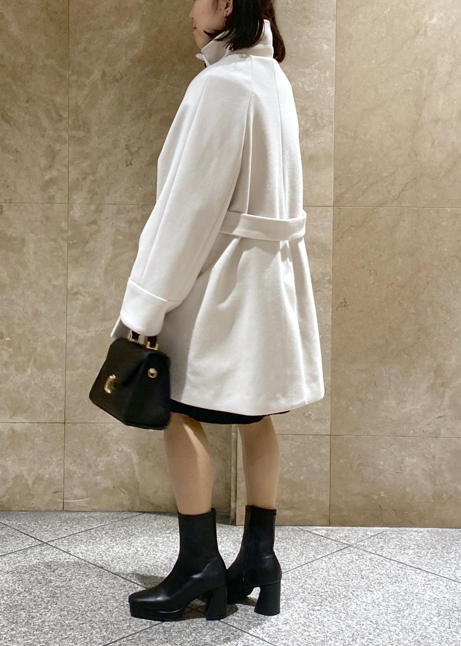 カッチリ感があるように見えるチェスターコートですが、フレアデザインなので女性らしい印象に◎ -