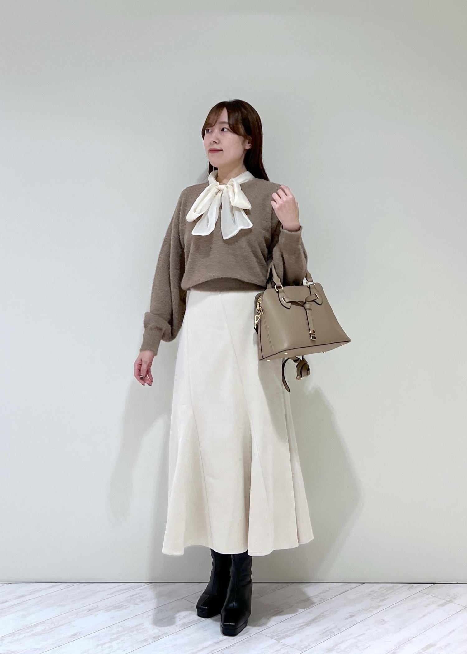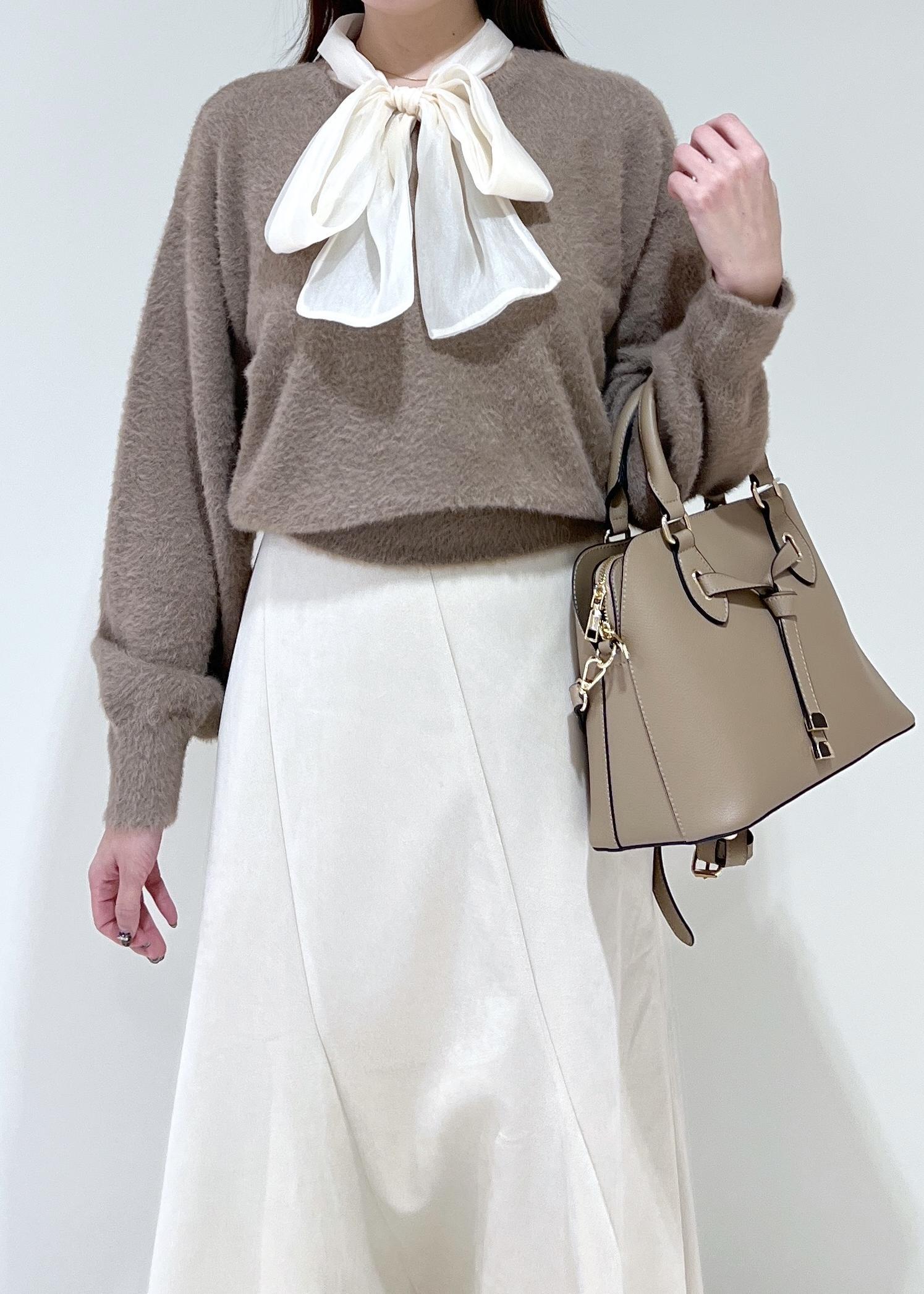 VISシアーボウタイリボン付きフェザーニットプルオーバー/2WAY・イージーケアキャメル / F¥6,589レビュー大きくも結べるボウタイが可愛い1枚です!取外し可能なので、ハイネックやシャツ等を合わせても着回せます◎着丈は腰にかかるくらいでどんなボトムにも合わせやすい丈感でした♡