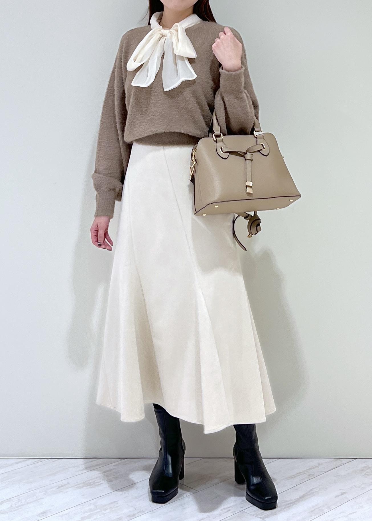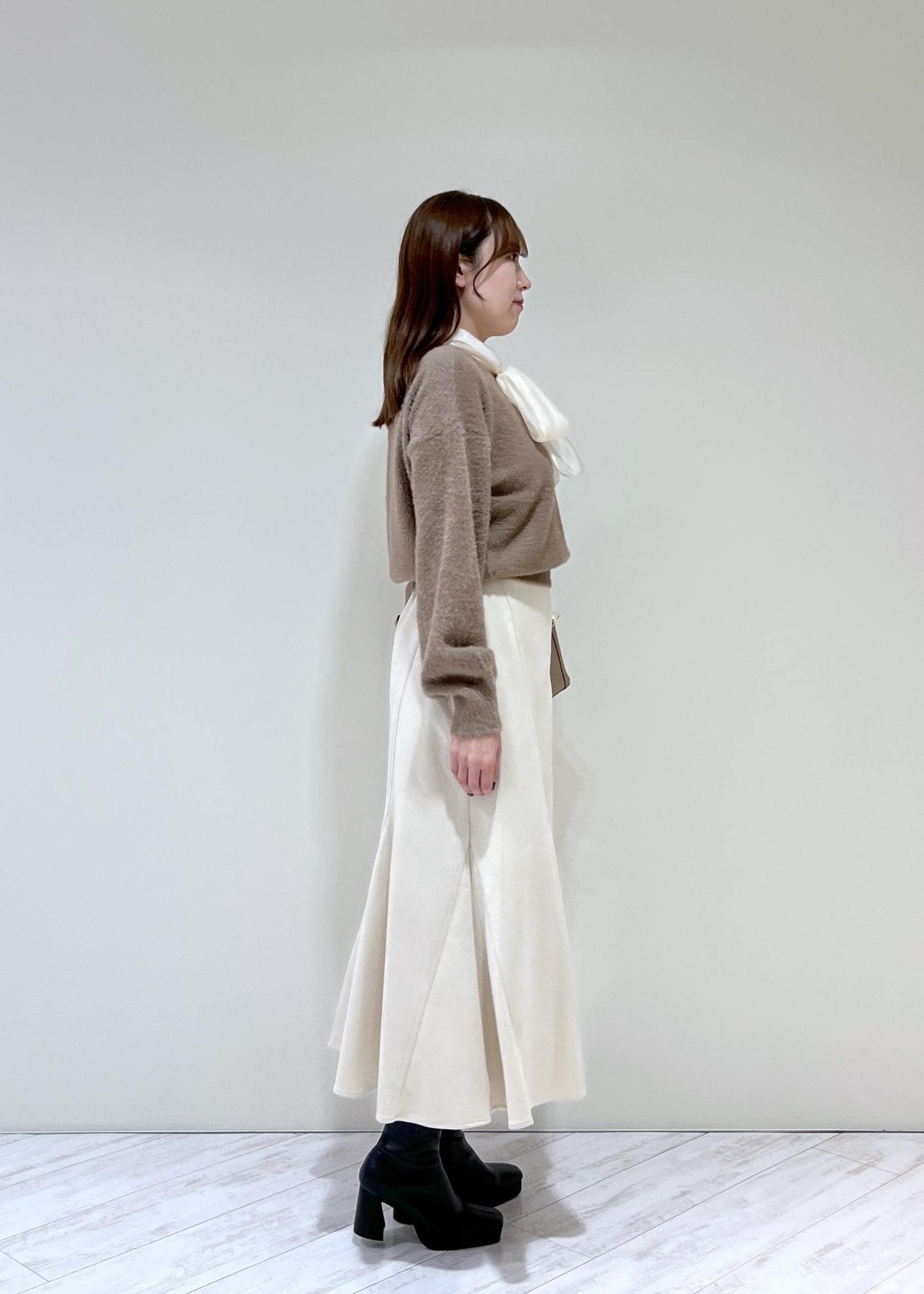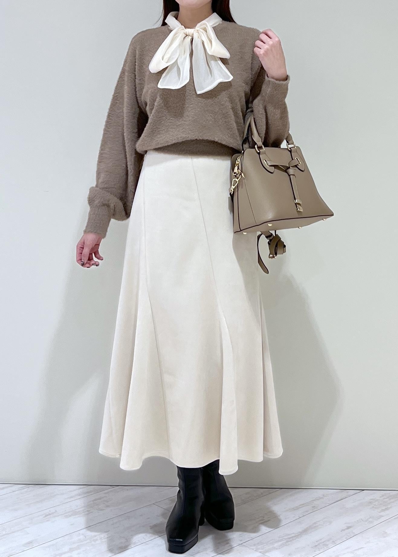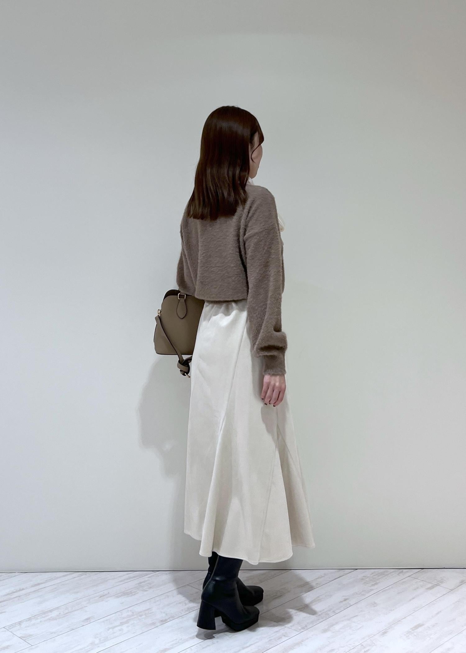VISエスカルゴ切替スエードライクスカートオフホワイト / M¥7,689レビュー柔らかいスエード素材なのでスタイリングにあたたかみが増します!ウエスト後ろ部分はゴムなので着やすくなっています。くるぶし上にくる着丈でした◎